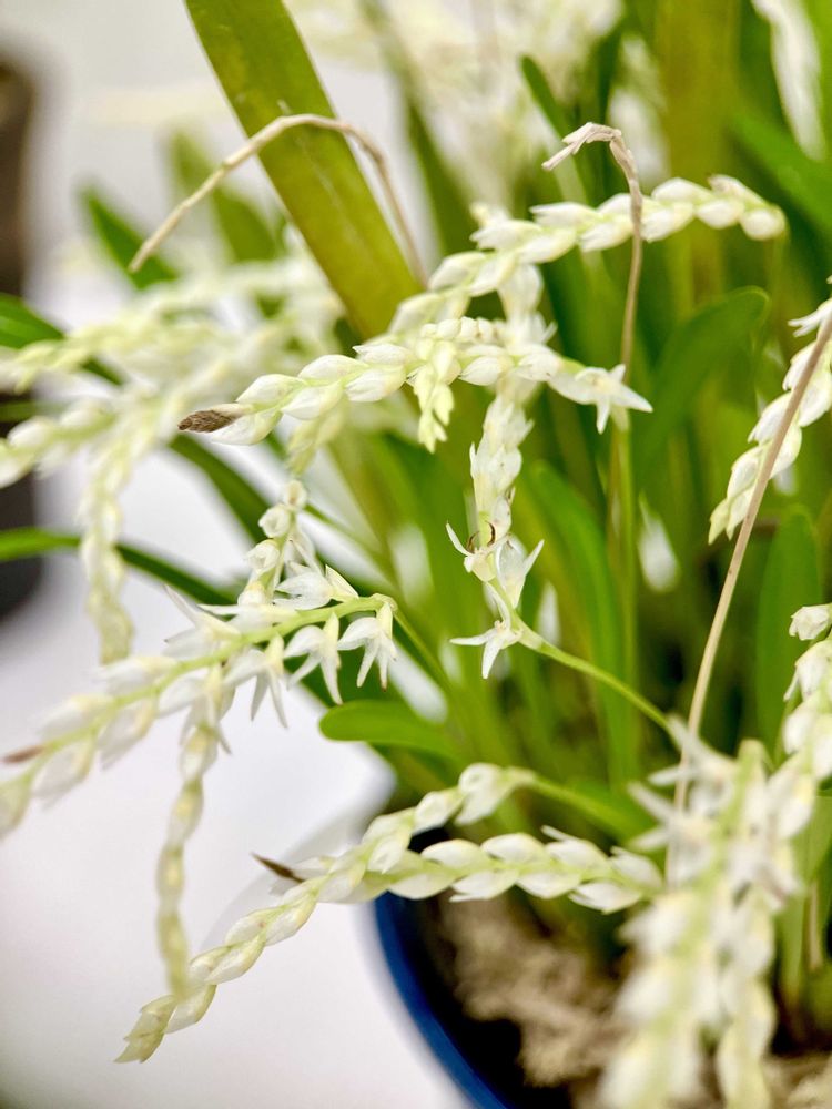 『熱意』『勝利』。「熱意」は、寒い時期に花を咲かせ、とてもよい香りを漂わせることにちなむといわれています。日本の本州以南の暖かい地域に自生する東洋蘭の一種で、以前は自生している姿を見ることができましたが、現在はほとんど目にすることができず、環境省のレッドリストでも絶滅危惧種に指定されています。