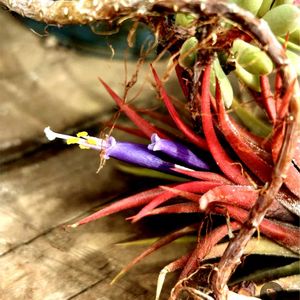 『不屈』。土がなくても育つ特性に由来するといわれています。空気中の水分を吸収して育つため、水やりが不要と思われることも多いですが、品種も多く、その特徴によって育て方も異なります。株が成熟するとエキゾチックで独創的な花を咲かせます。