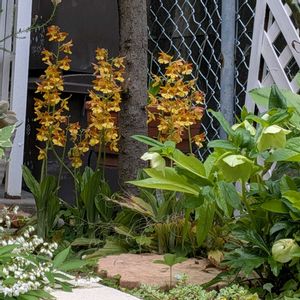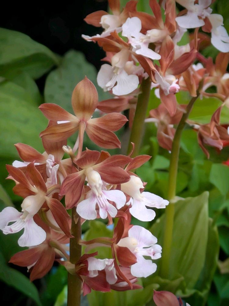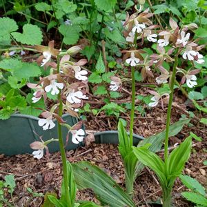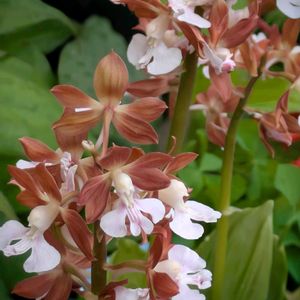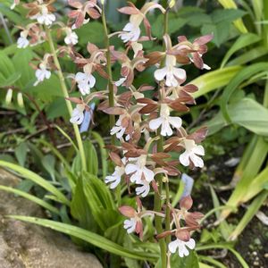 『謙虚』『誠実』『謙虚な恋』。他のランに比べて落ち着いた花色で、控えめな印象を与えることにちなむといわれています。野生種は、環境省のレッドリストで準絶滅危惧(NT)に指定されていますが、交雑しやすい性質を生かして、現在ではたくさんの園芸品種が作られています。