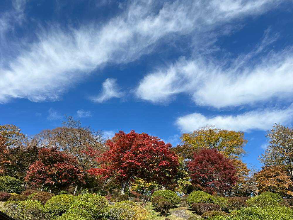 お見事な紅葉が青空に映えて美しいです