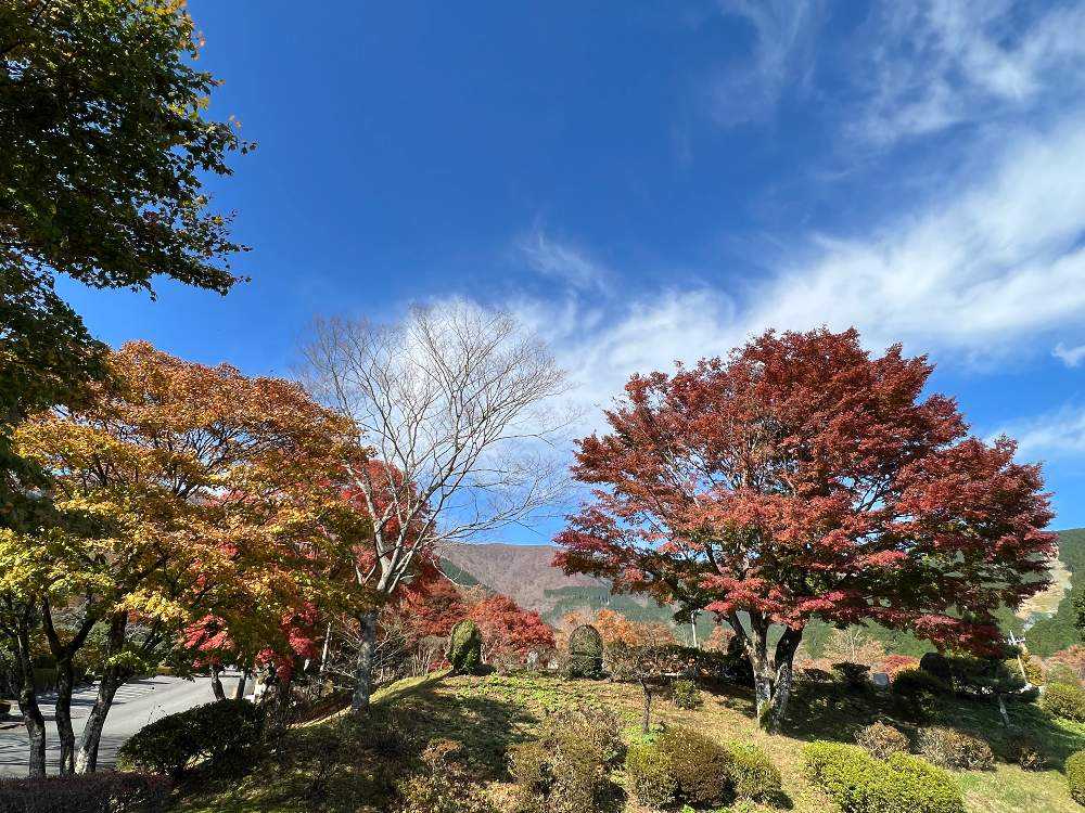 エントランスの紅葉も青空に映えて綺麗でした