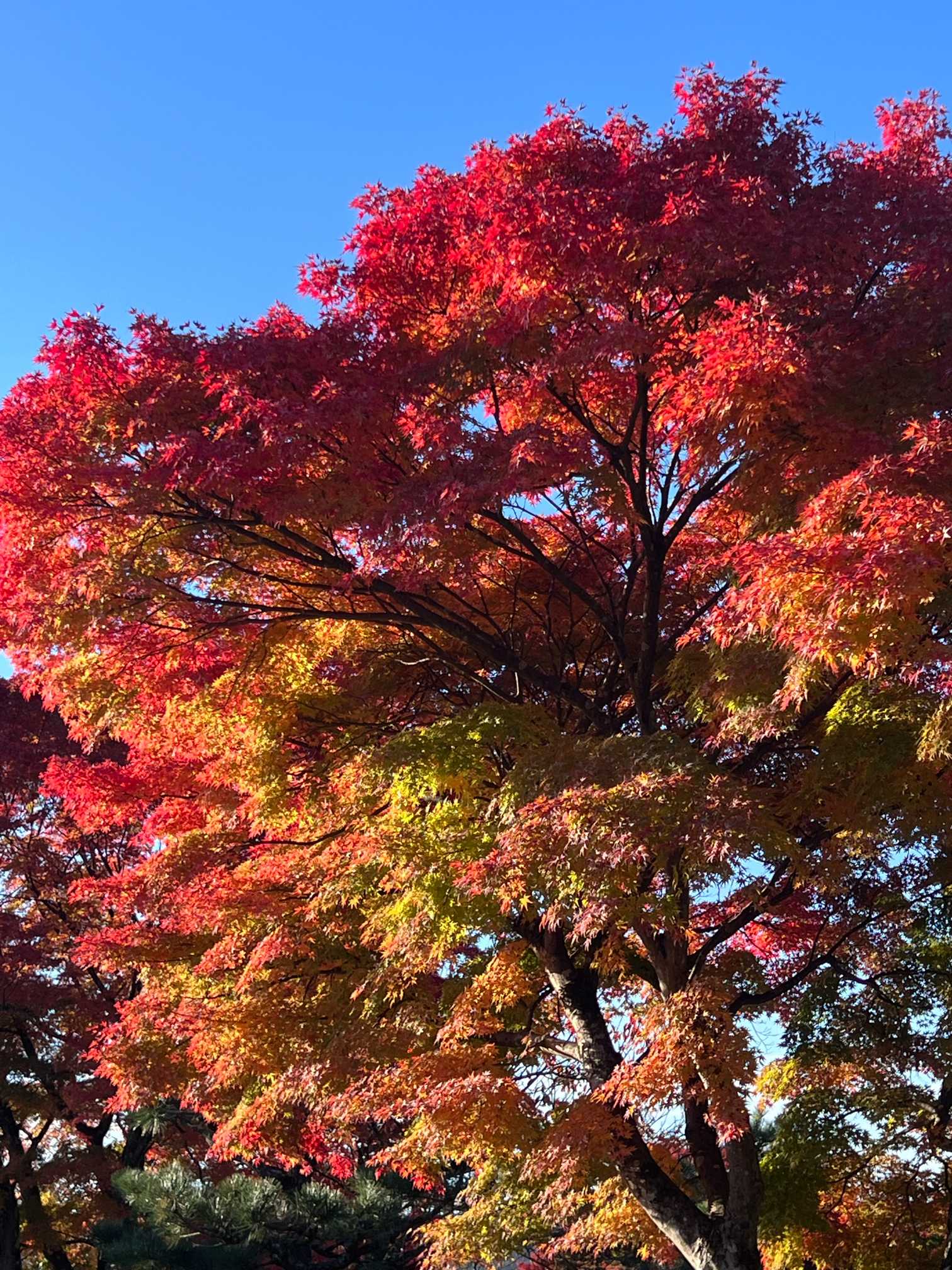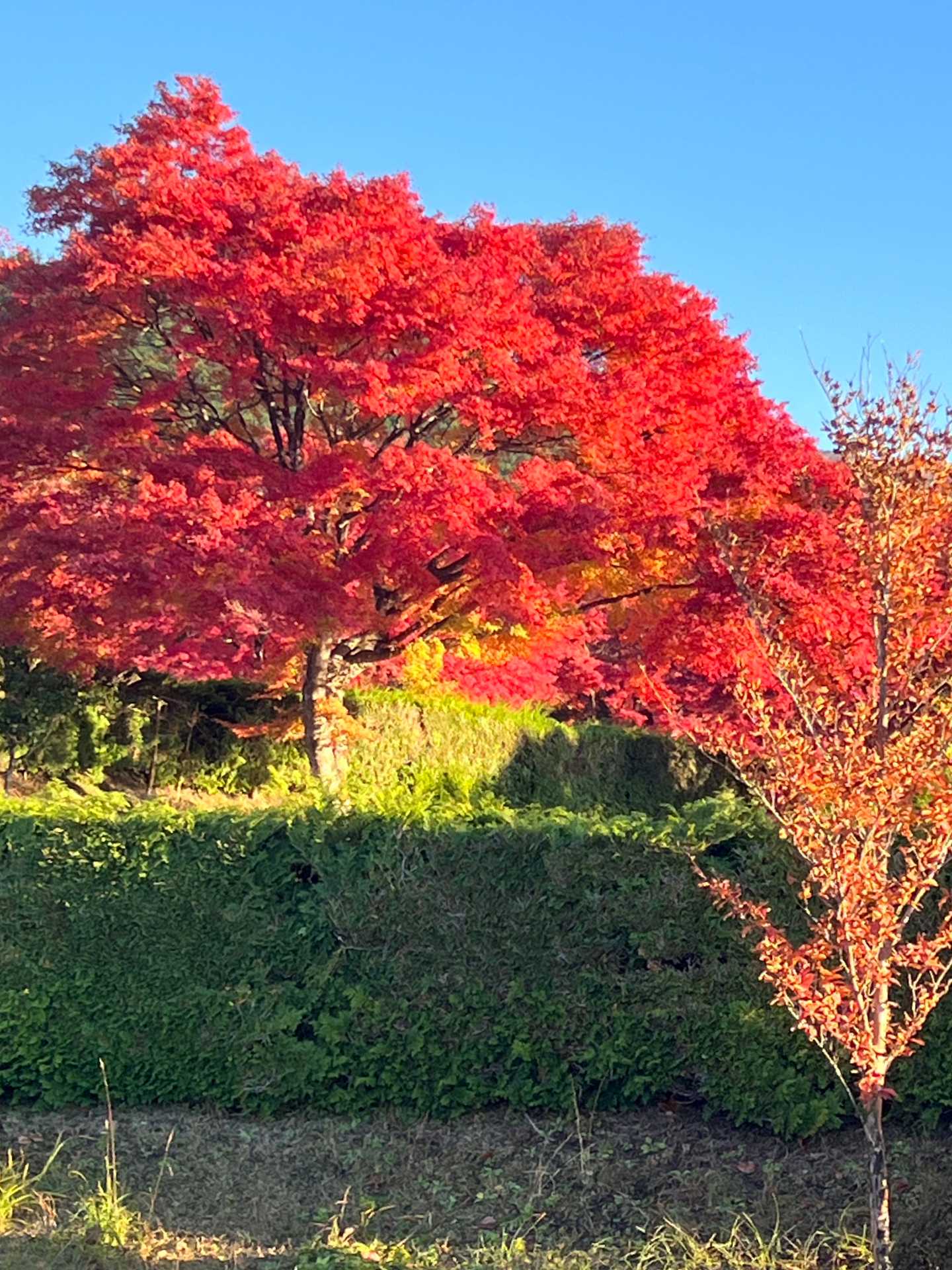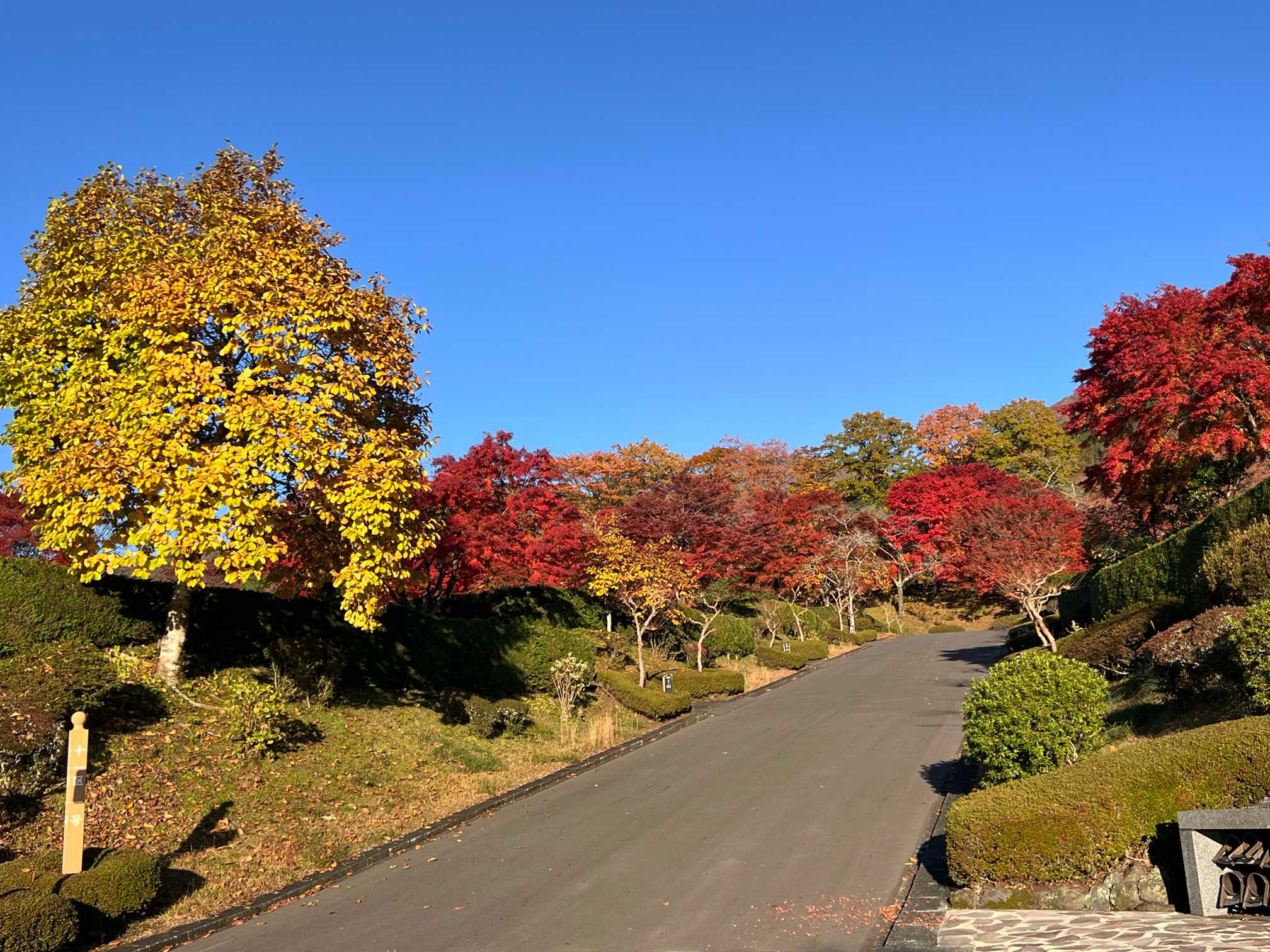 こんな紅葉が百本くらい植えられていて、どの紅葉も、鮮やか🍁