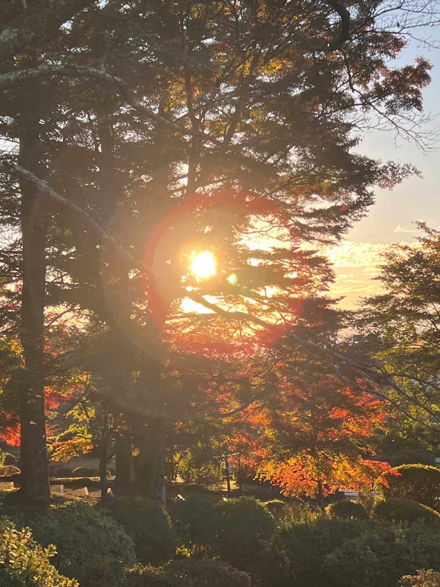 朝早く6時半には開門して、陽が刺して来ると、木々の間から眩しく輝く