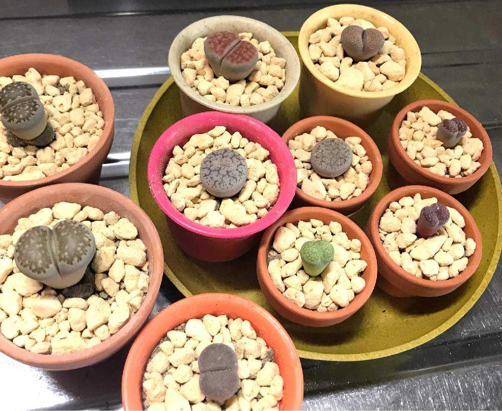 シワシワリトープス達と一緒に植え替えして、うちのリトープスは一気に10鉢になりました