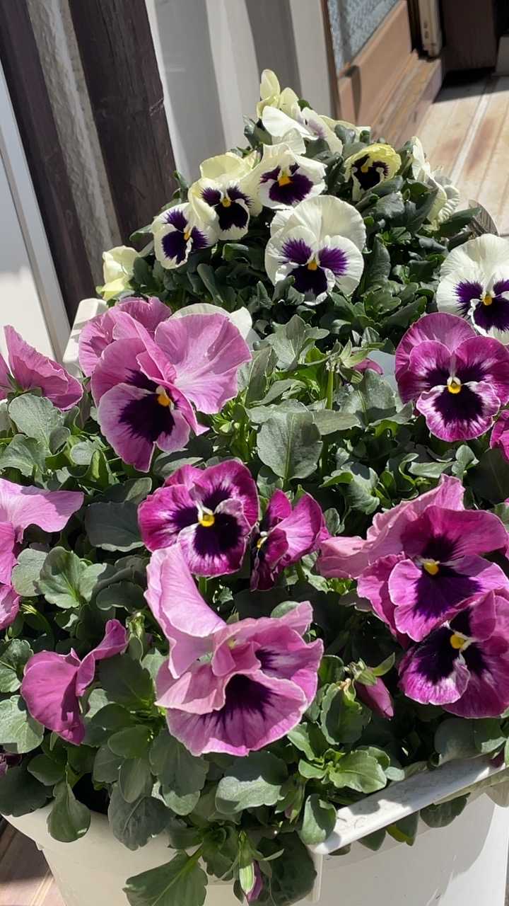 気温も下がり晩秋の風情。パンジーは寒さが好きなんですね。葉がモサモサ♪