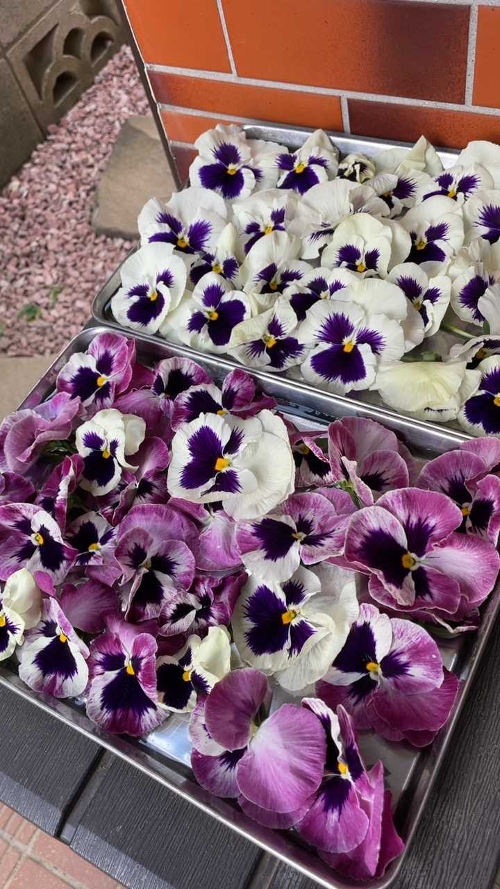 花弁の大きさが10センチほどになるパンジー「ボニータ」をRC100(厳選放線菌入り堆肥)配合で土壌フローラを整え改良された土壌で育てます。