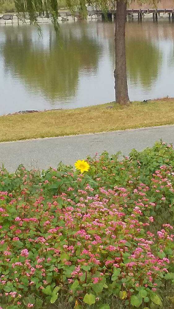 水辺の花畑にはいつも癒されます。