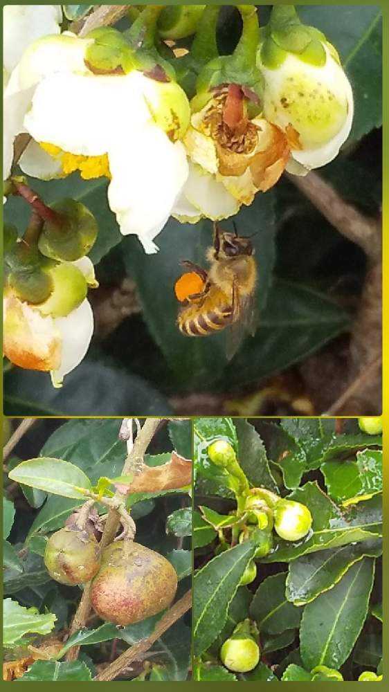🐝働き蜂が沢山、花粉を丸く🟡して脚に器用に挟んでいました。