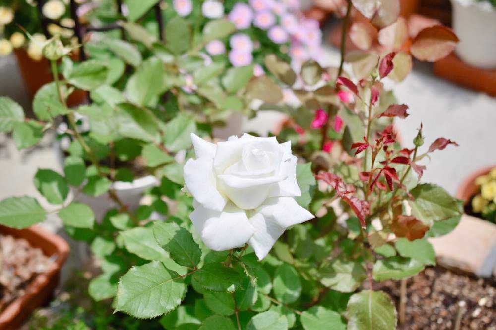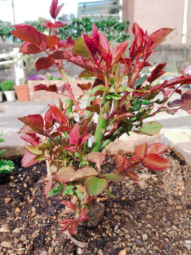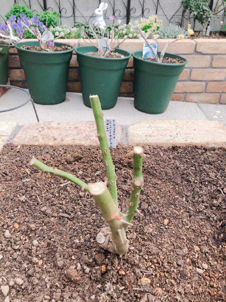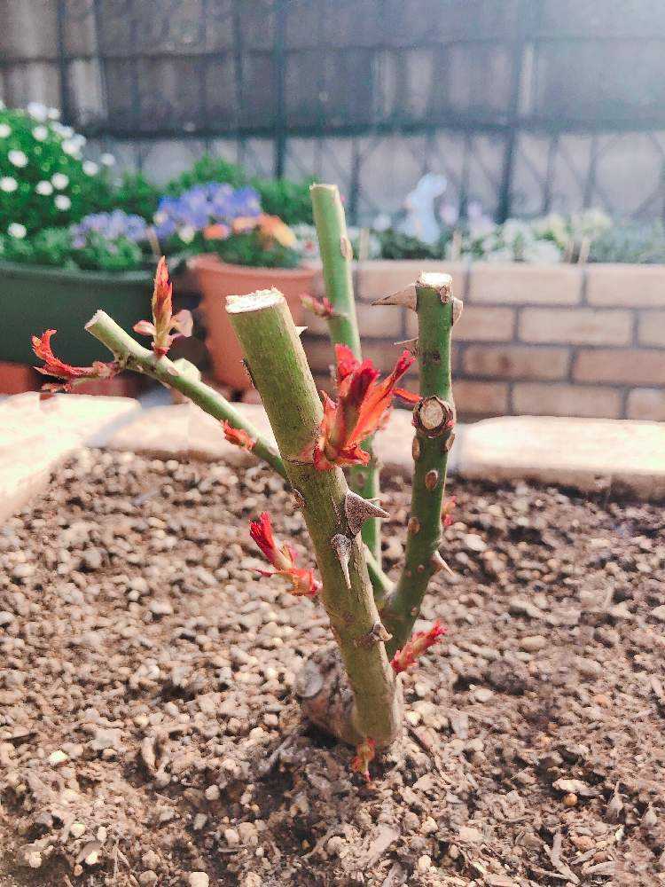 同時期に植えたバラ達より一番元気良さそうな芽です🌸