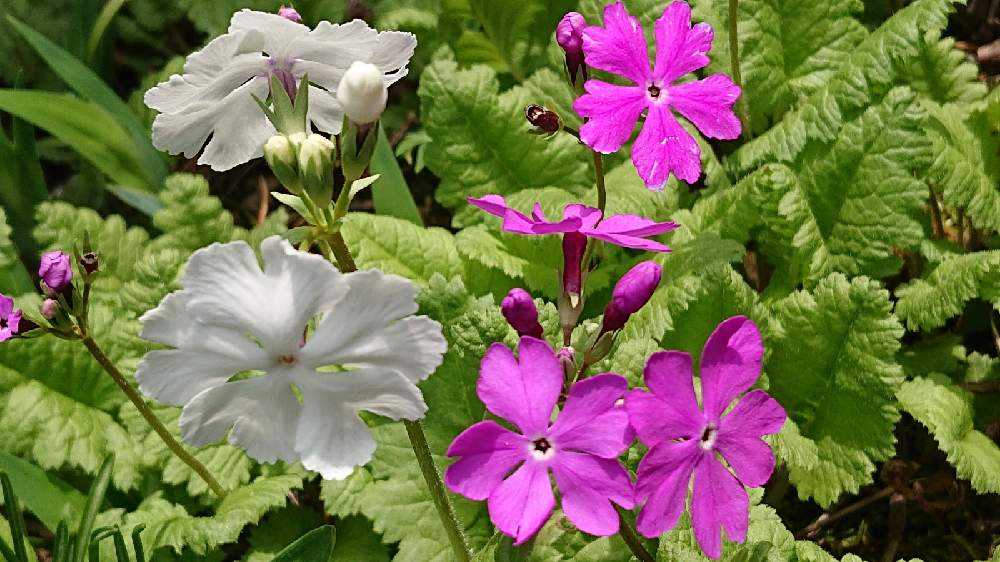 桜草は芝桜より花弁が細いらしいです😊何よりも芝桜は地面に這って咲くのに対し、桜草はしっかり茎を伸ばして咲くんですって🌸