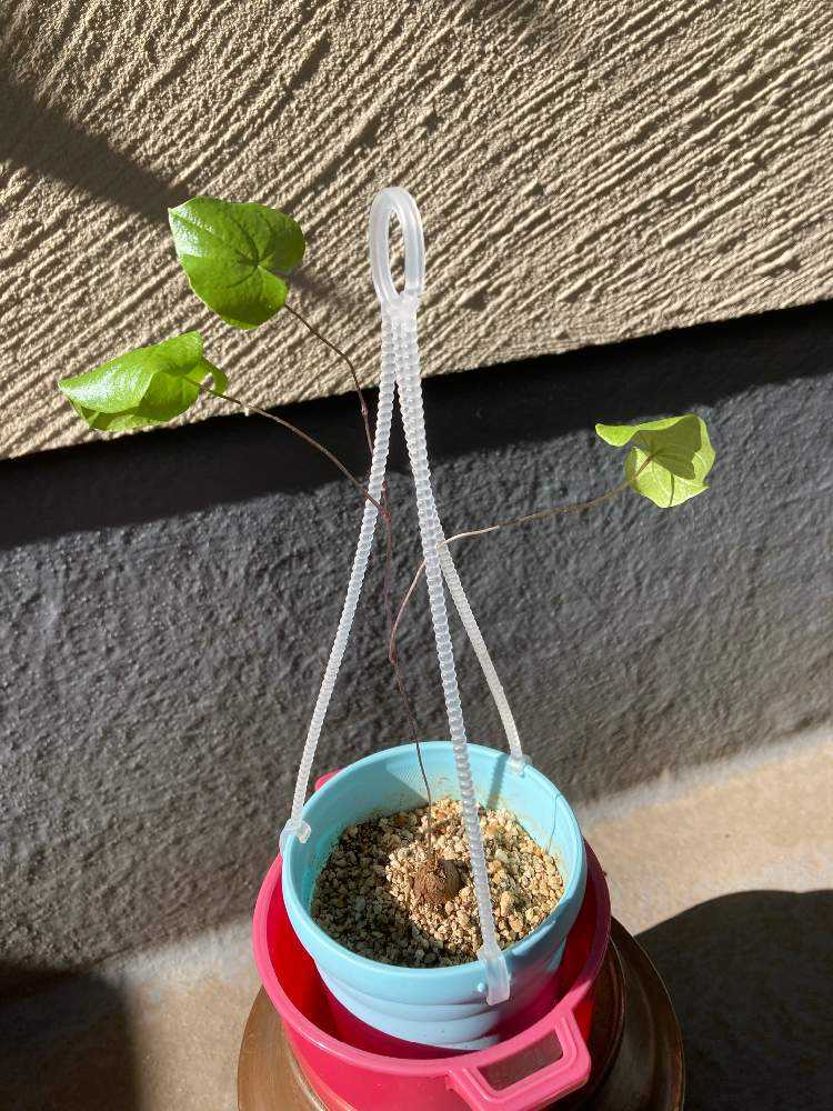 夏からツルがのびのび〜🪴止まったと思ったら葉っぱ🌿が開いてきました