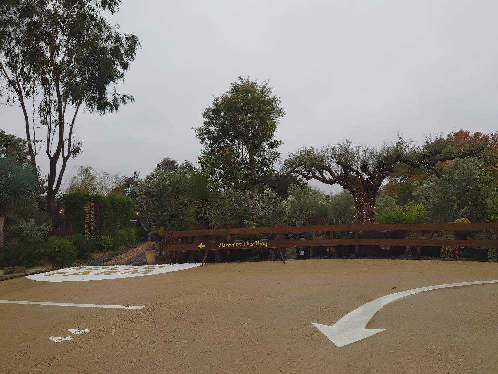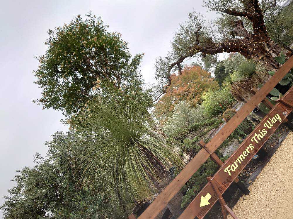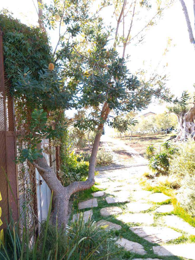 手前バンクシア 奥はオリーブ畑