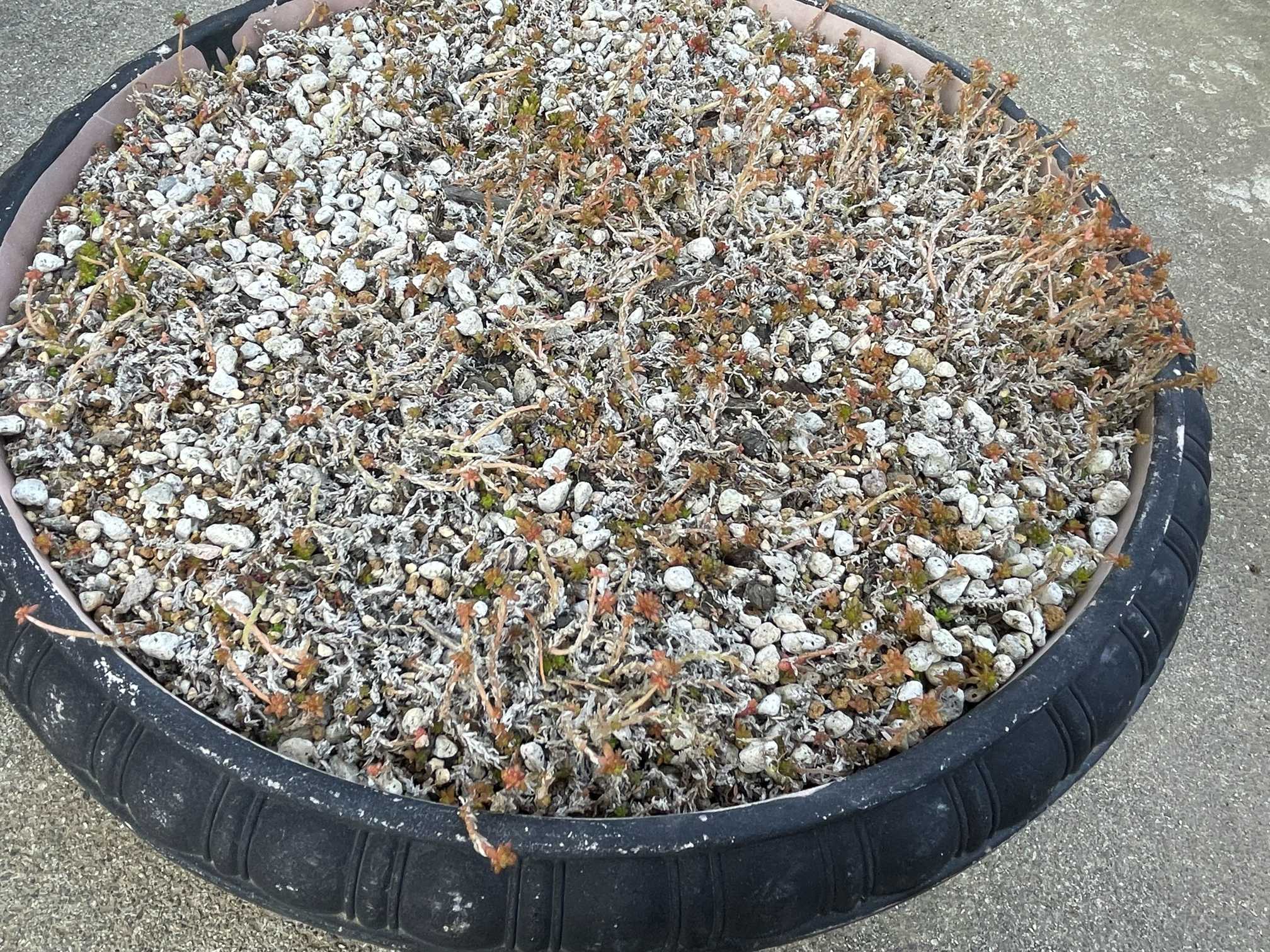 鉢に写した森村万年草ちゃんは、もうダメっぽい😅 かろうじて大丈夫そうなところだけカット✂️して挿すかねぇ。