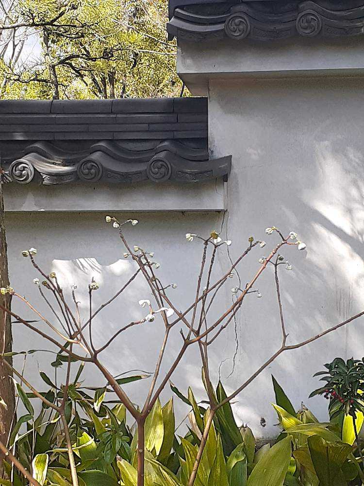白い小さいお花はミツマタのつぼみかと思います