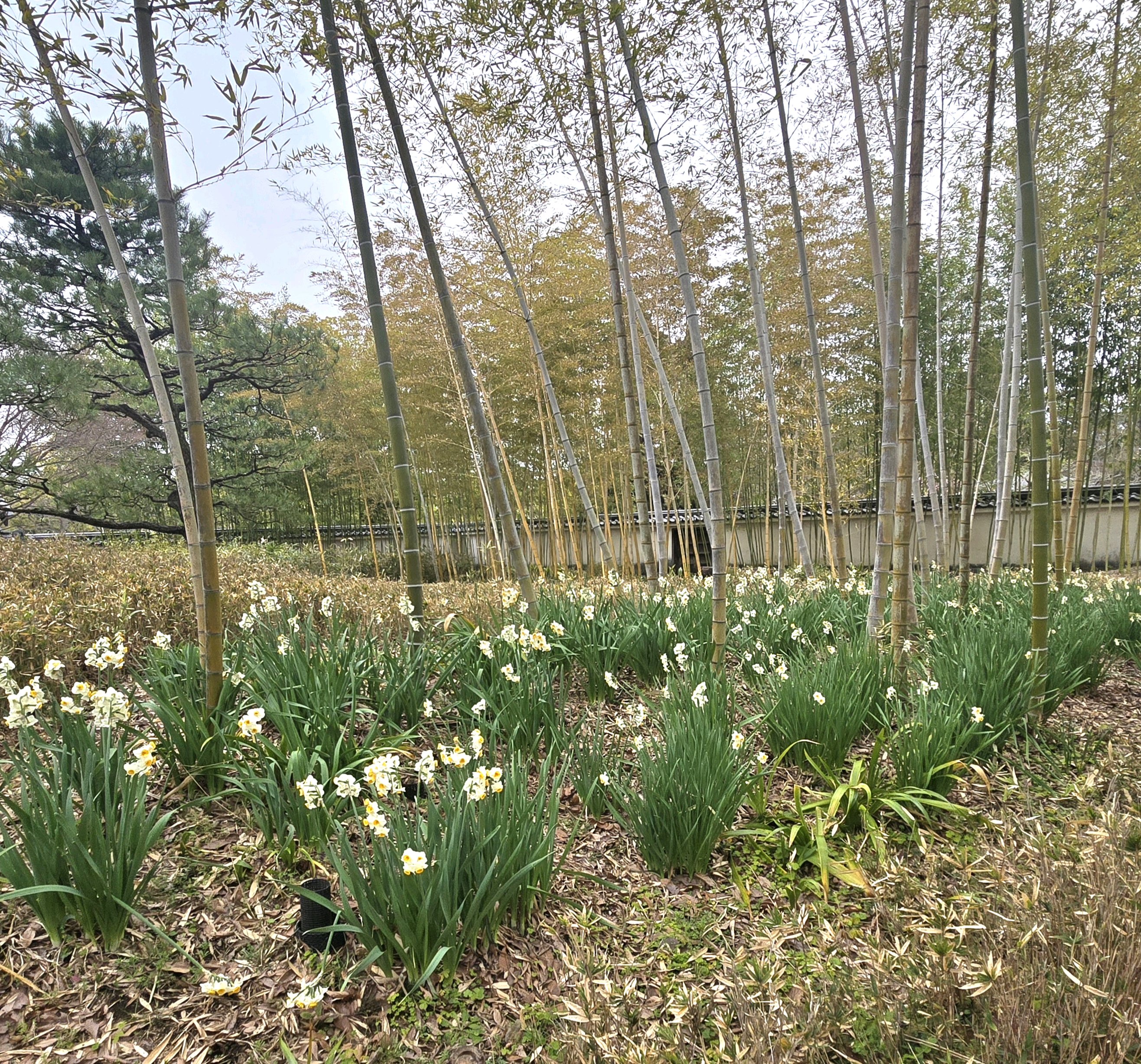 竹林の足元の水仙