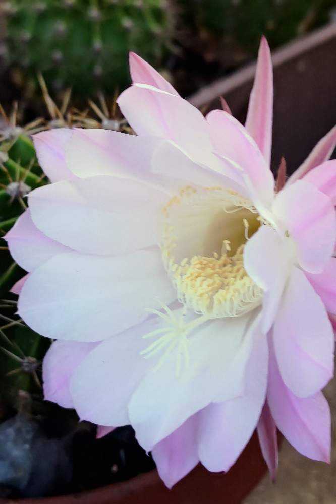 サボテン短毛丸のピンクの花が、華麗に咲いた。残念ながら、1日花。