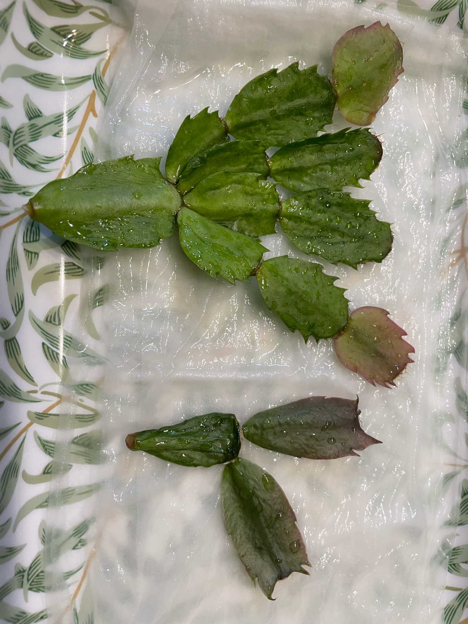 シャコバサボテンを某フリマアプリで購入してみました。二種類の挿し穂ですが、ペラッペラ、シナッシナの状態で瀕死状態・・・これからどう復活できるでしょうか?