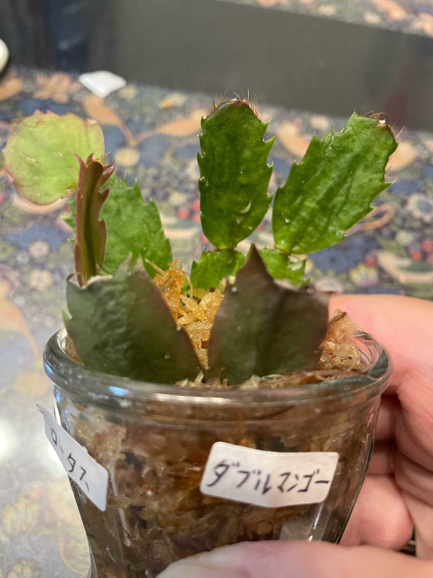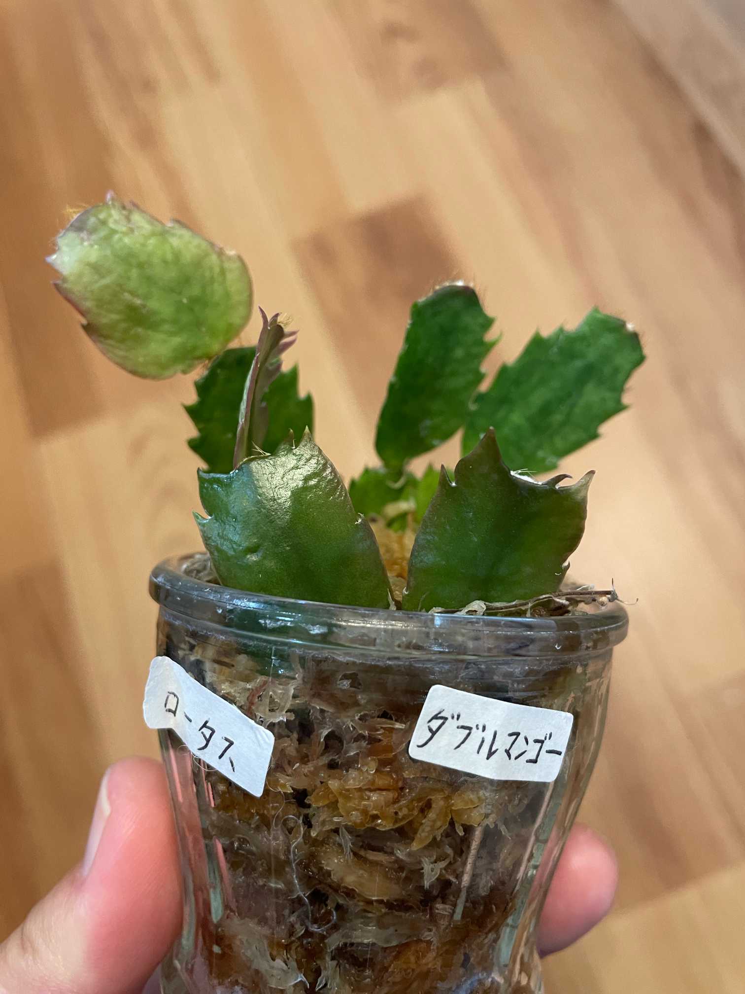 とりあえず、水苔に刺すことにしました。メネデールを入れた水に水苔をふやかして、ロータスは発根がある2節目まで挿し、ダブルマンゴーは一箇所発根があったので切取り挿し、それ以外はそのまま深めにさして発根がどこからあるか見極めたいと思います。