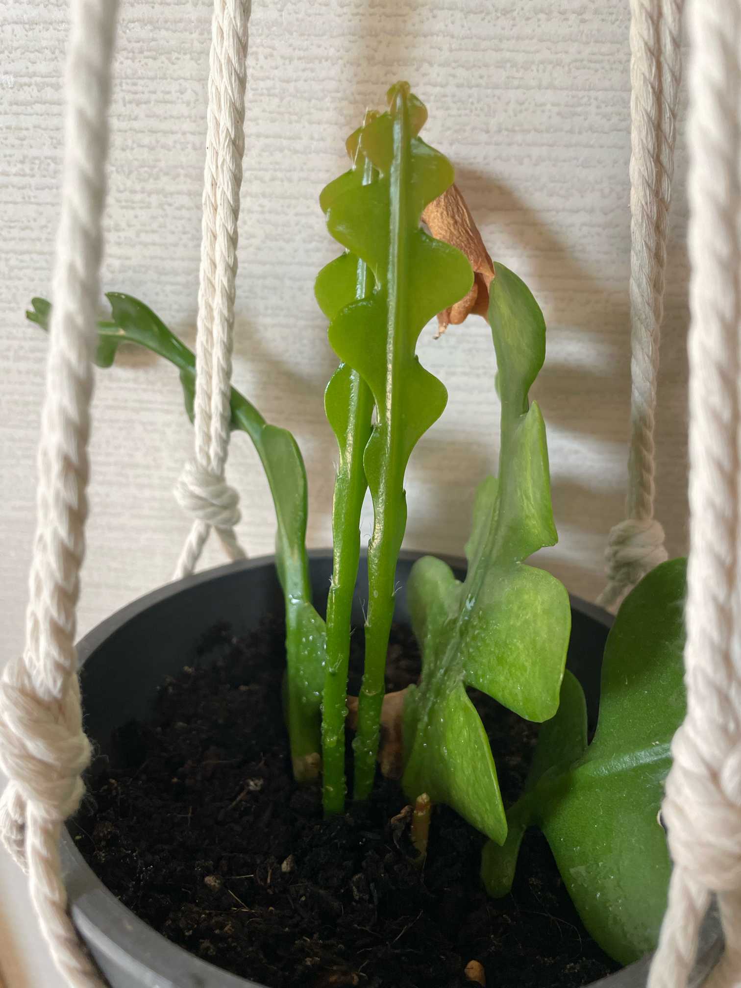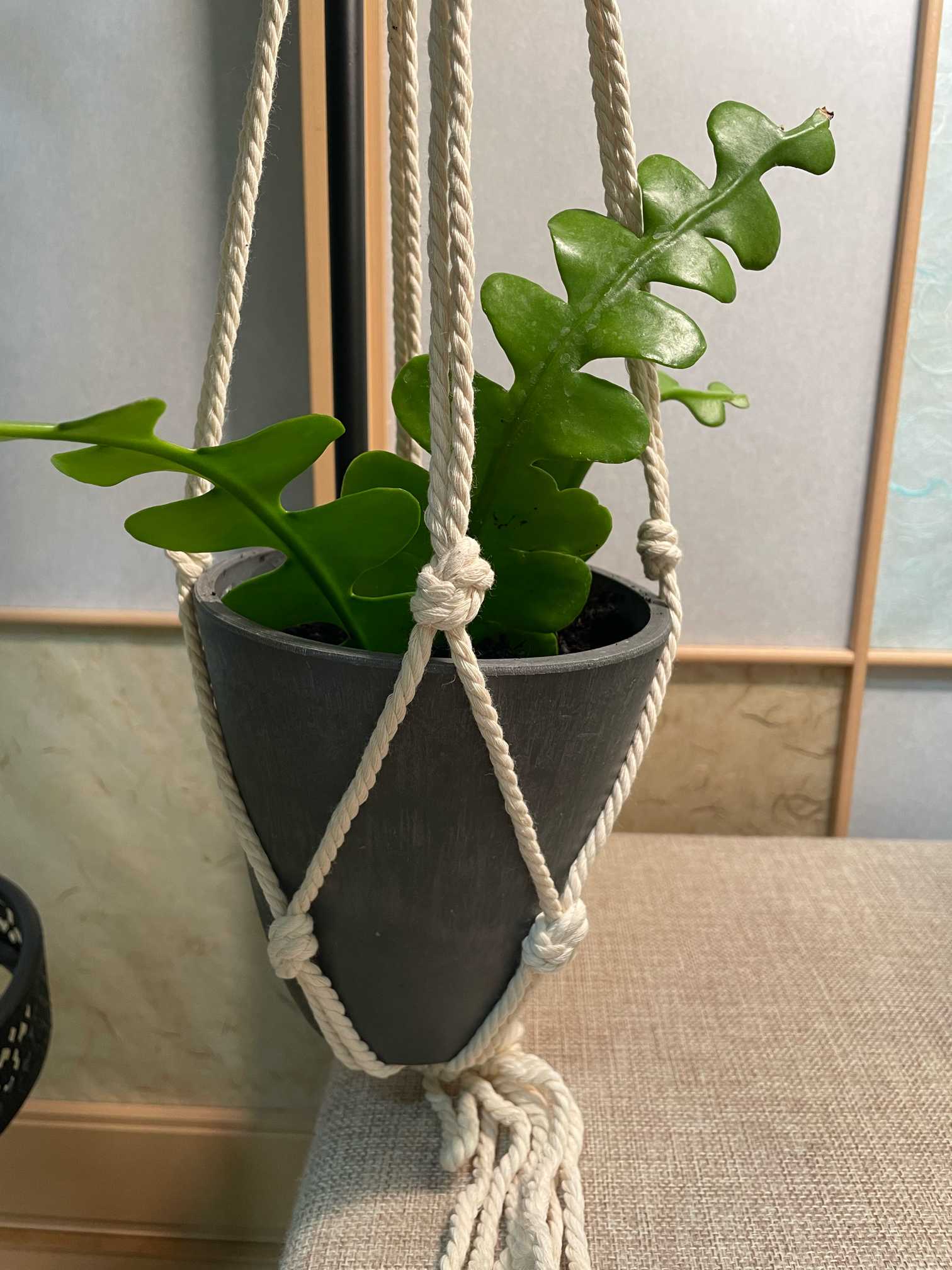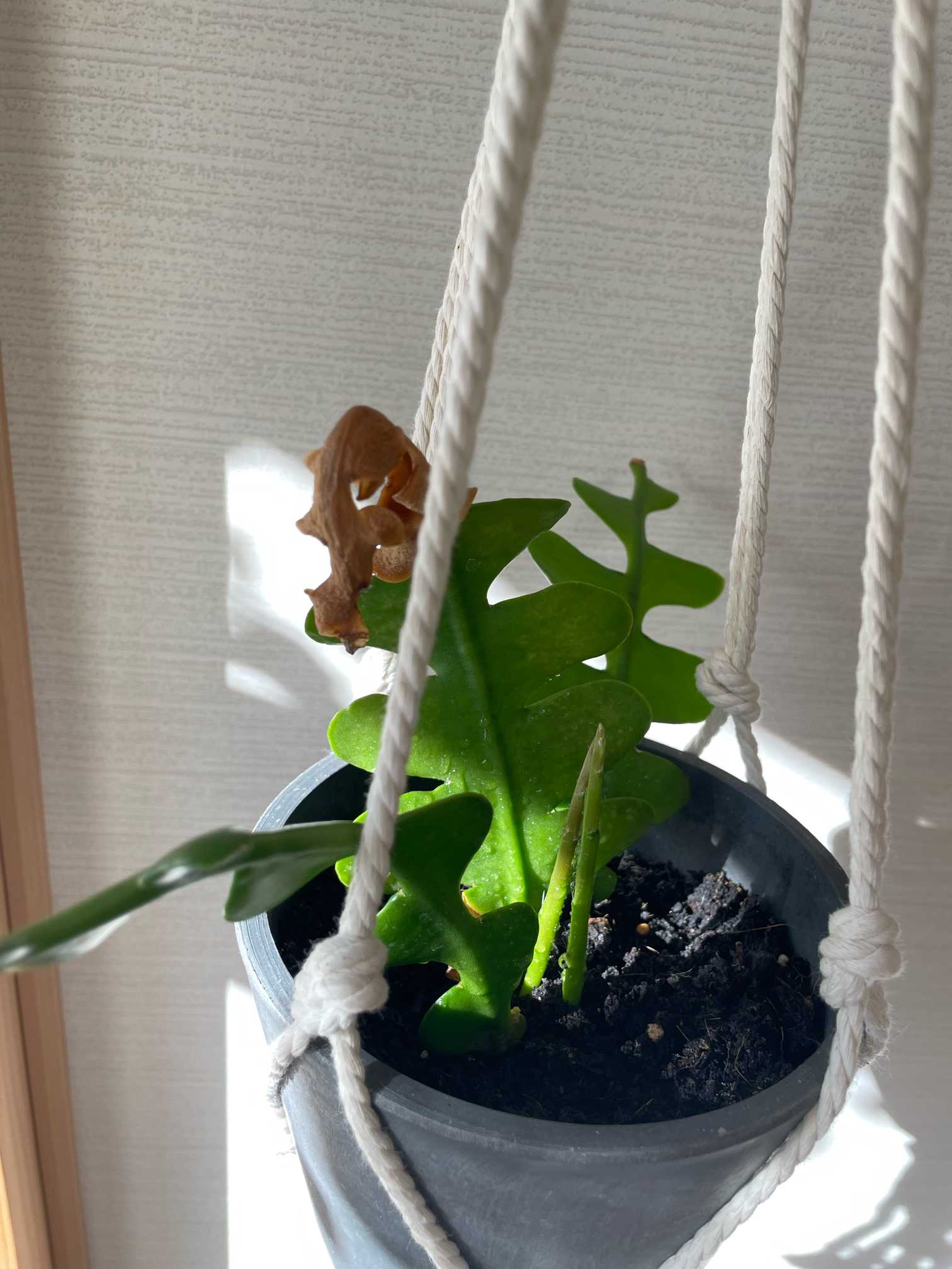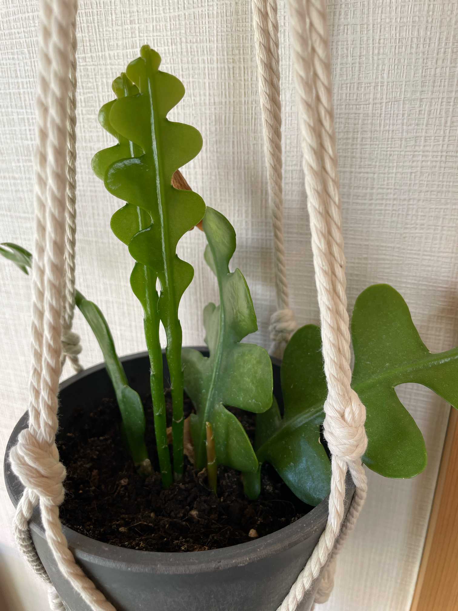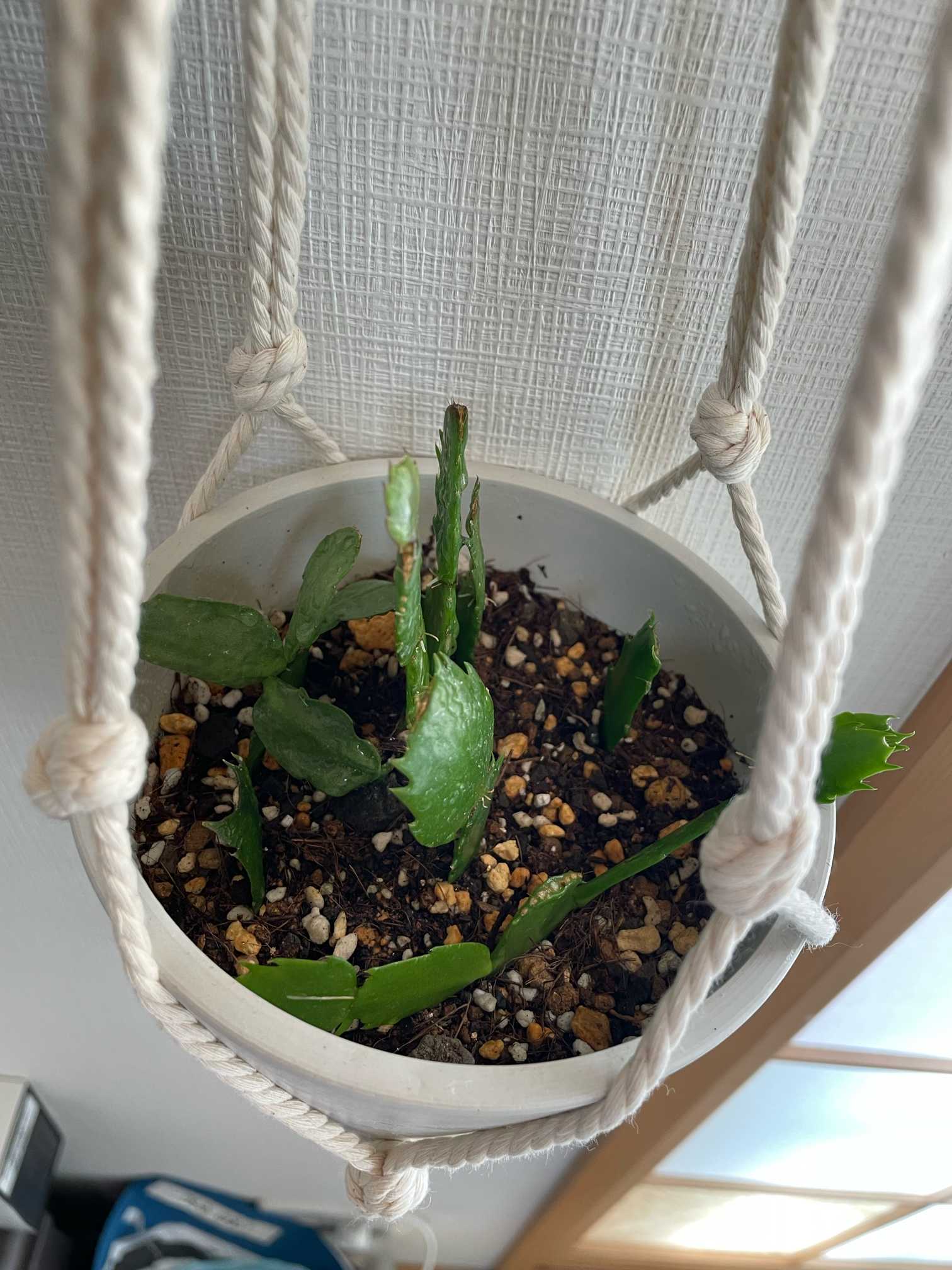 フィッシュボーンカクタスを某フリマサイトより購入して届きました。厚みもあって元気そう。一旦水にさして様子見しましたが、本日鉢に移しました。ハンギングにする予定。