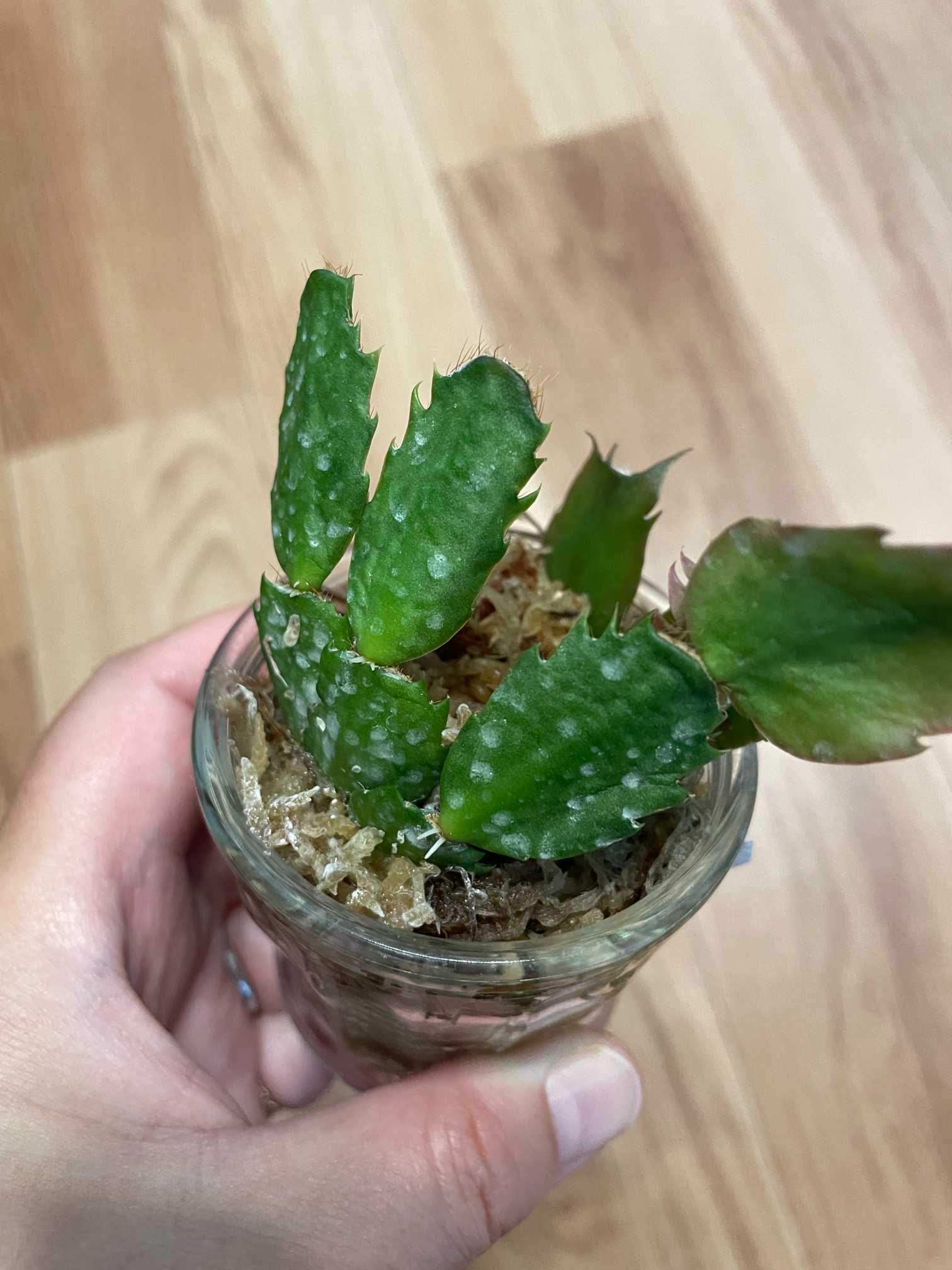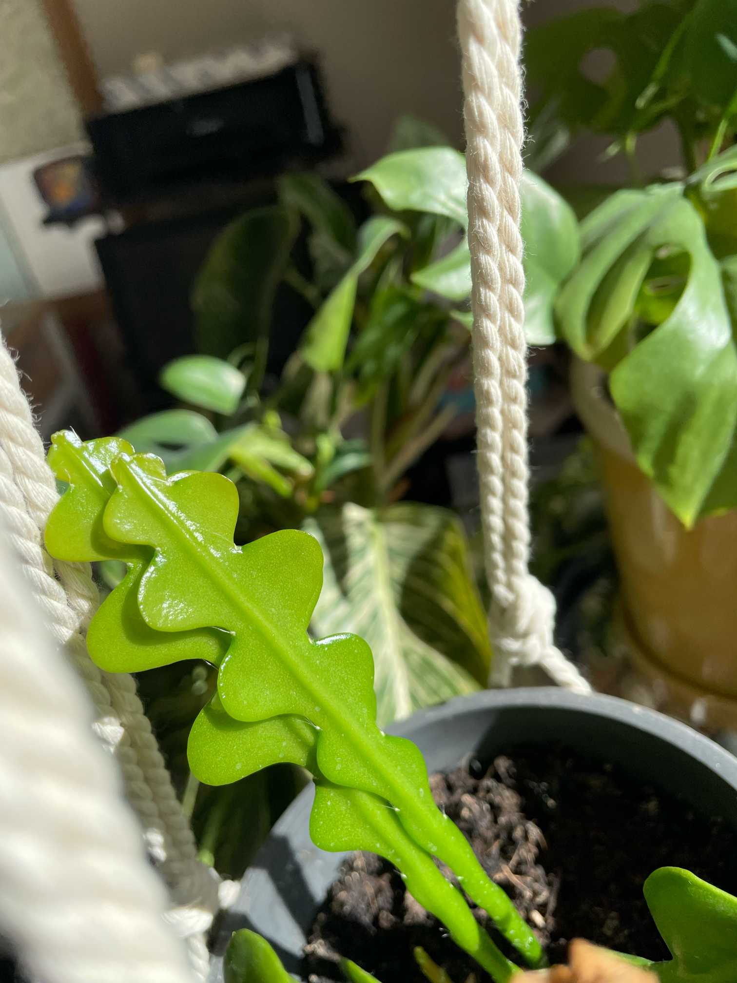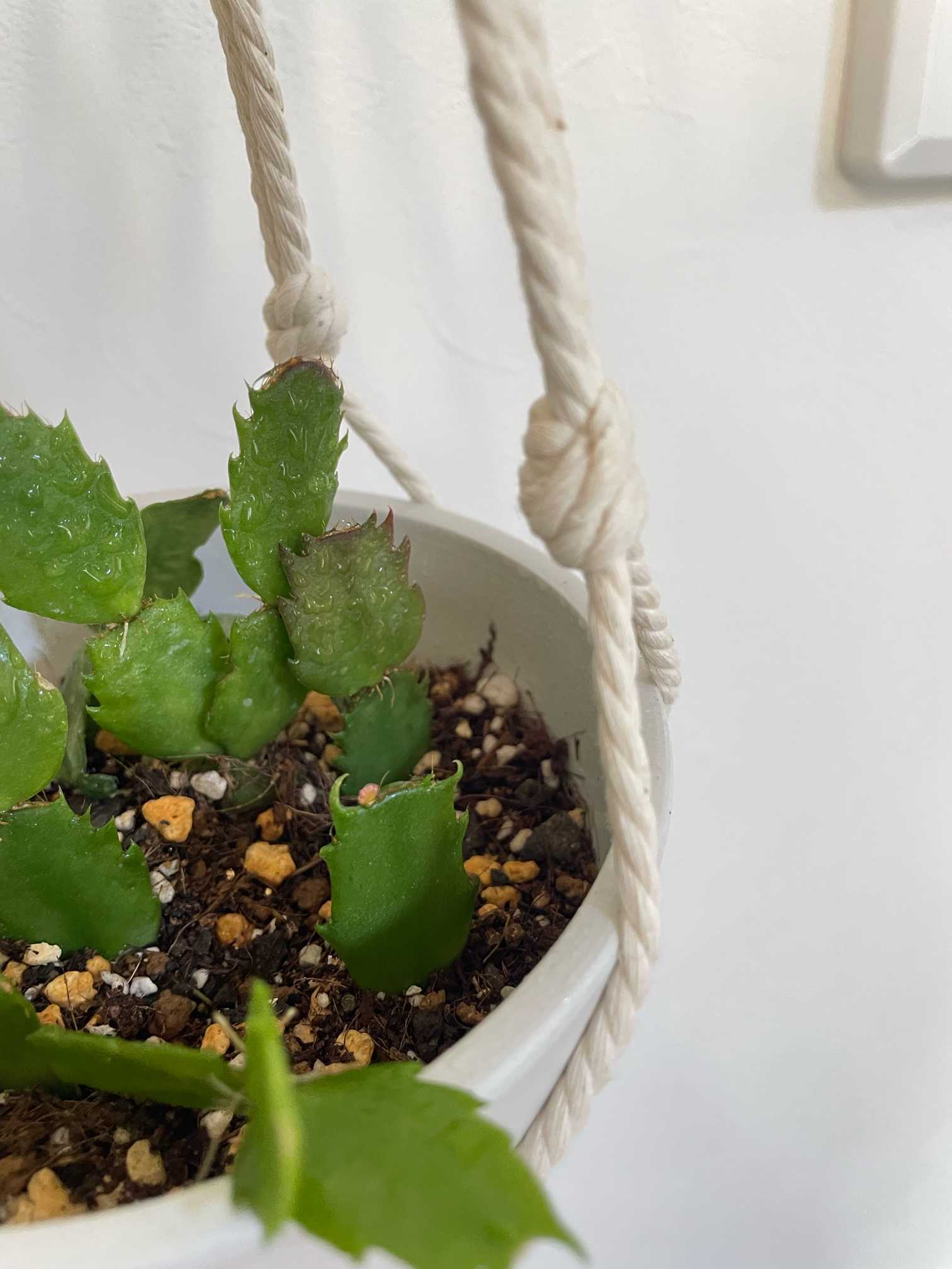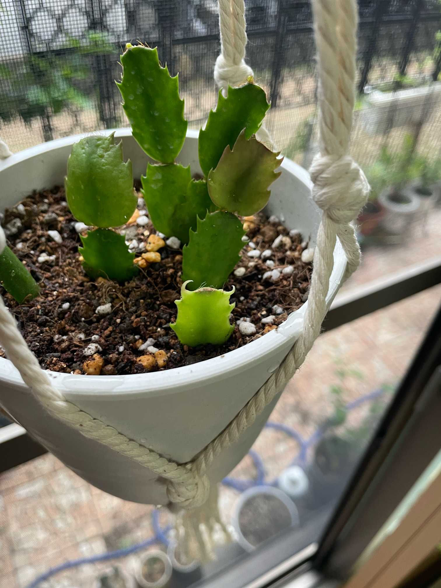 フィッシュボーンカクタスを某フリマサイトより購入して届きました。厚みもあって元気そう。一旦水にさして様子見しましたが、本日鉢に移しました。ハンギングにする予定。