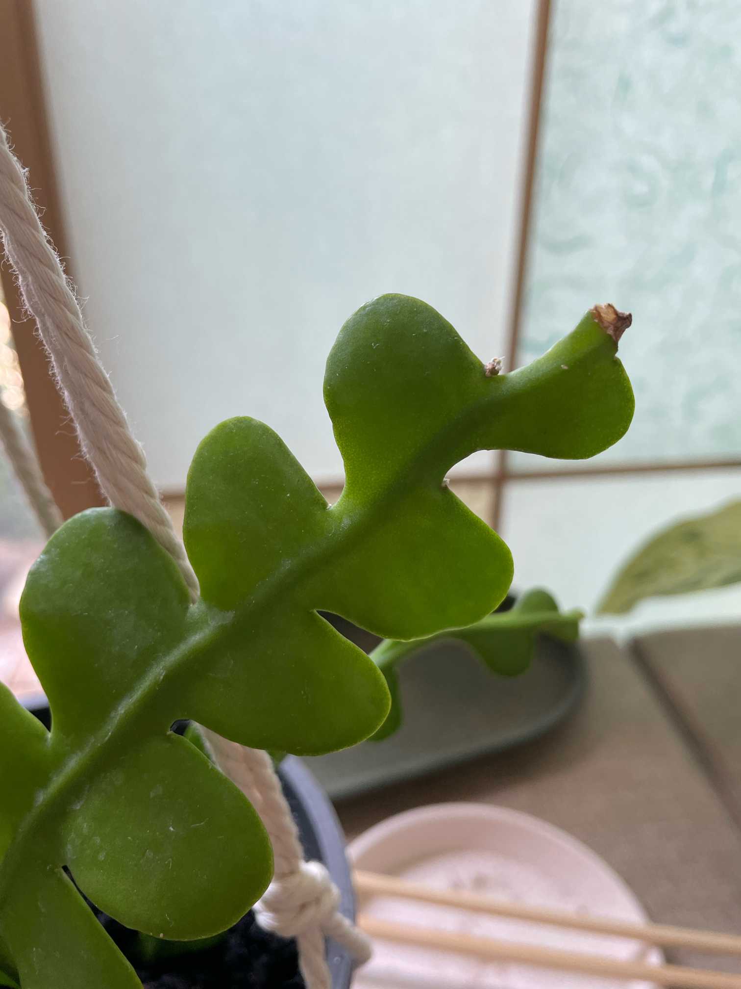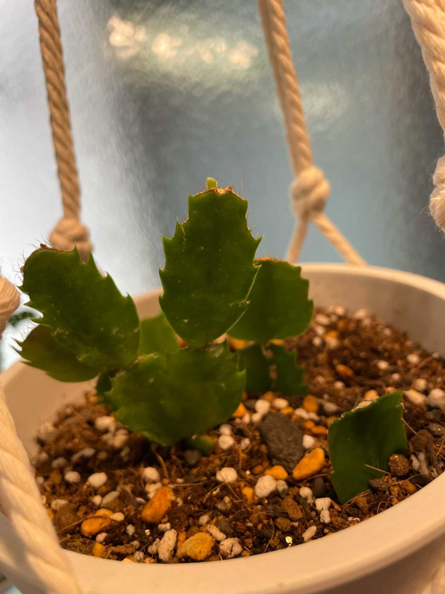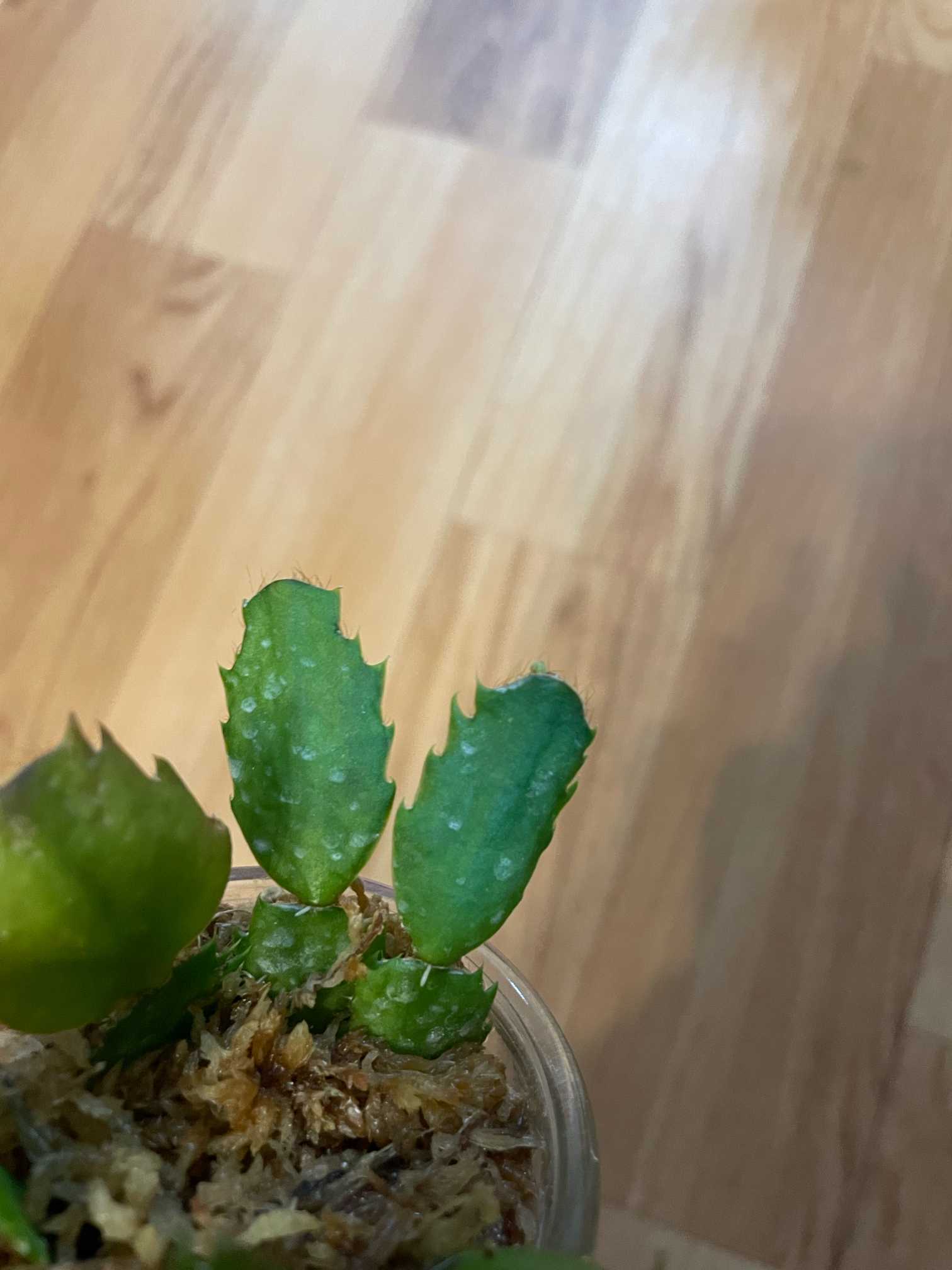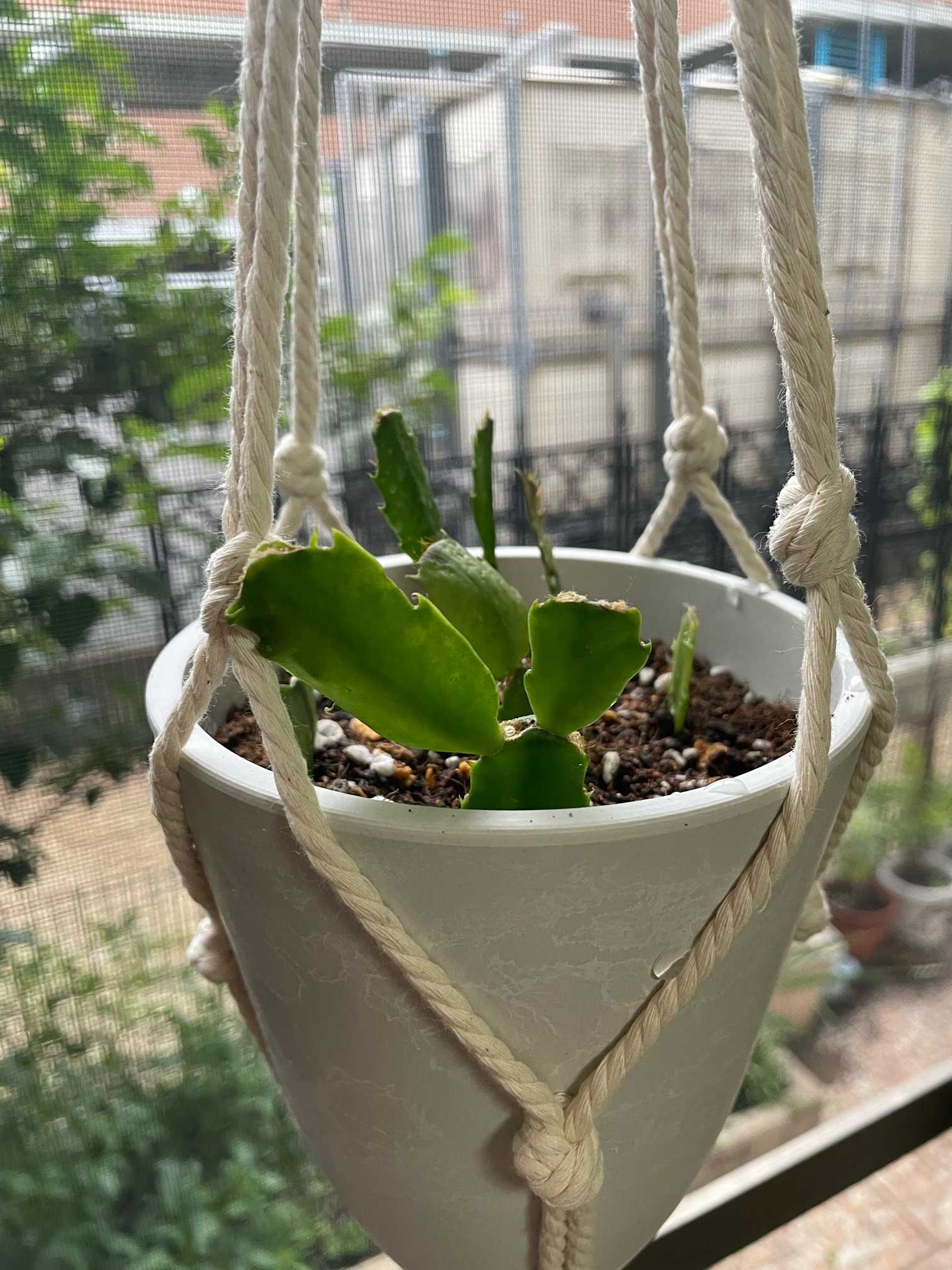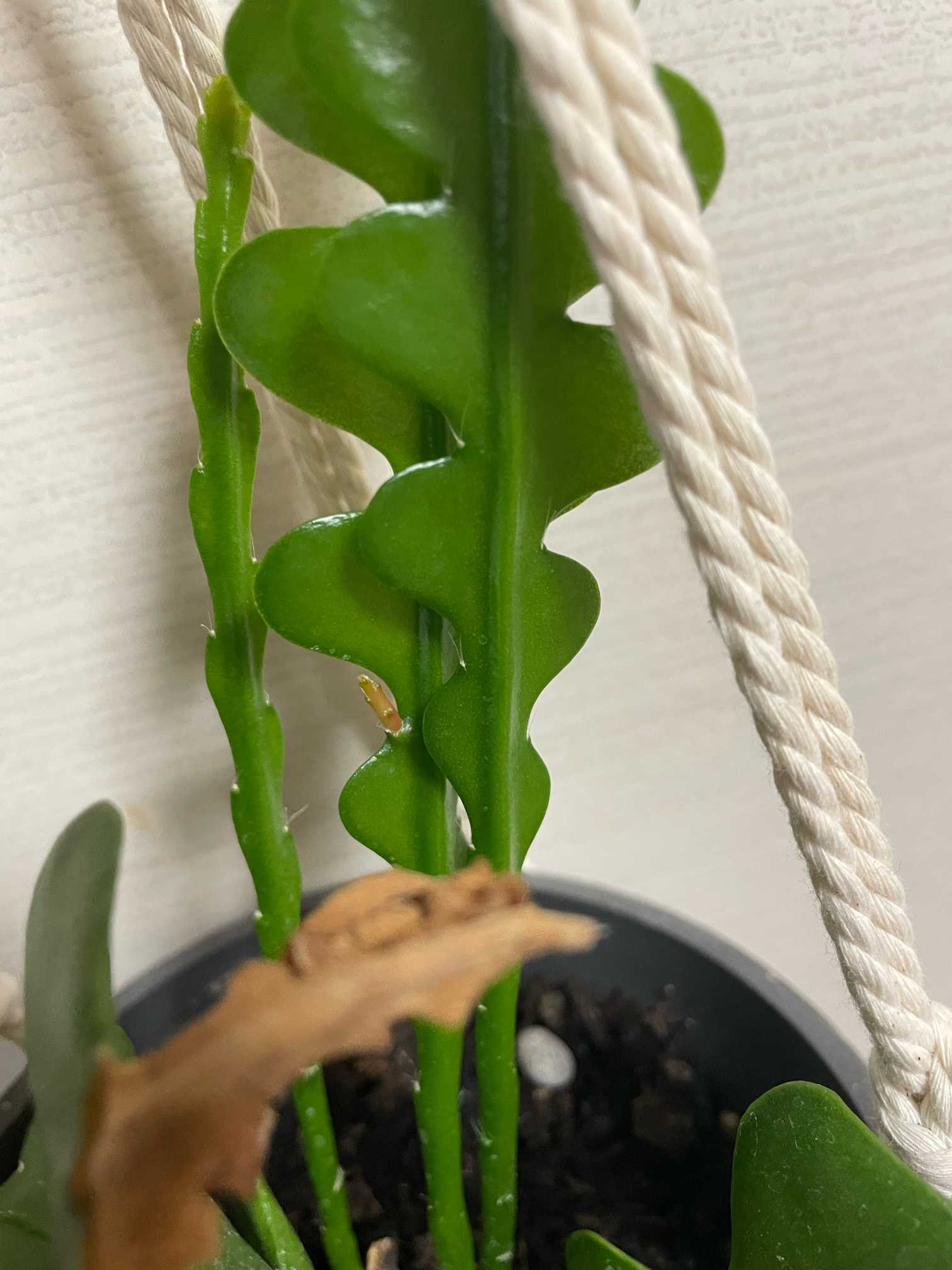 フィッシュボーンカクタスを某フリマサイトより購入して届きました。厚みもあって元気そう。一旦水にさして様子見しましたが、本日鉢に移しました。ハンギングにする予定。