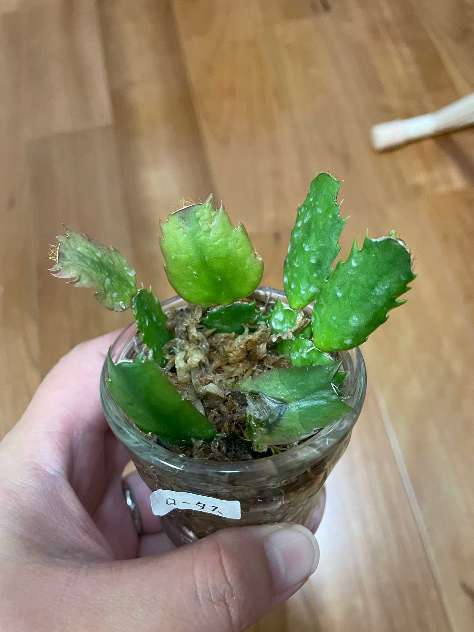 小さな葉がで初めて、消えてを繰り返していました。暑すぎるのかもと思いクーラーの部屋に移したところ、すぐに新しい芽が動き始め、葉も元気そうです。AN040は残念ながら枯れてしまいました。全く根が出ませんでした
