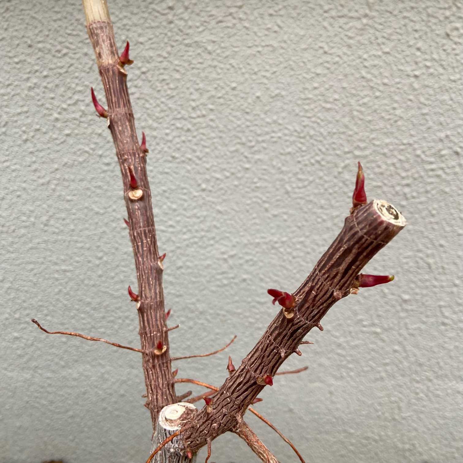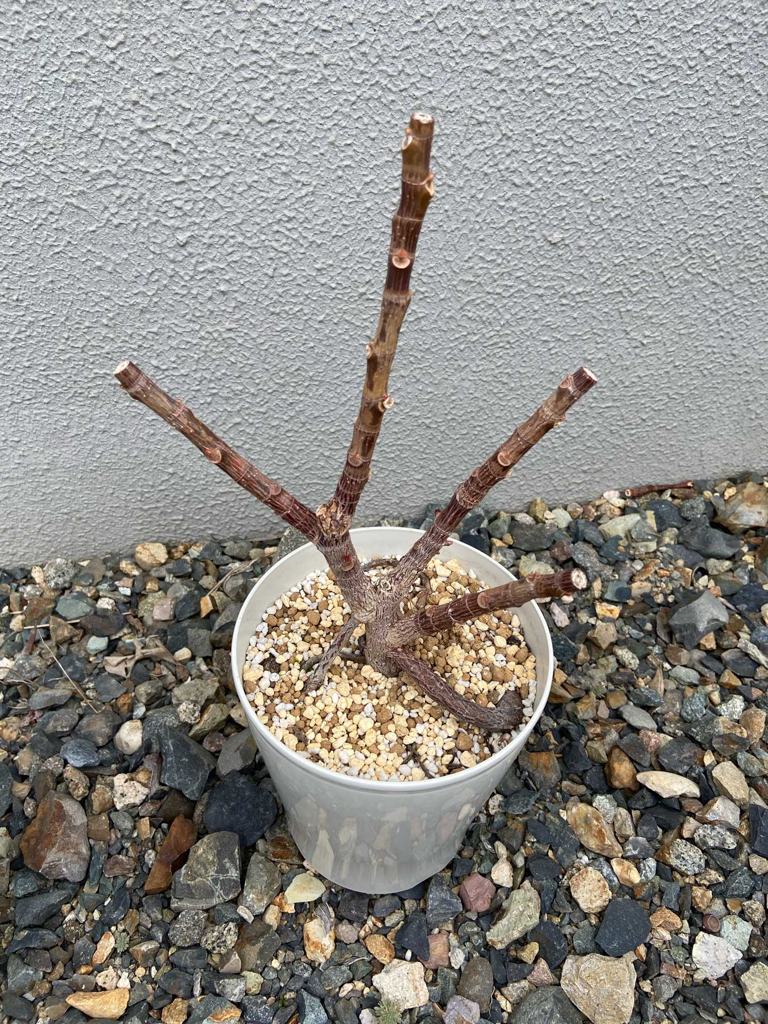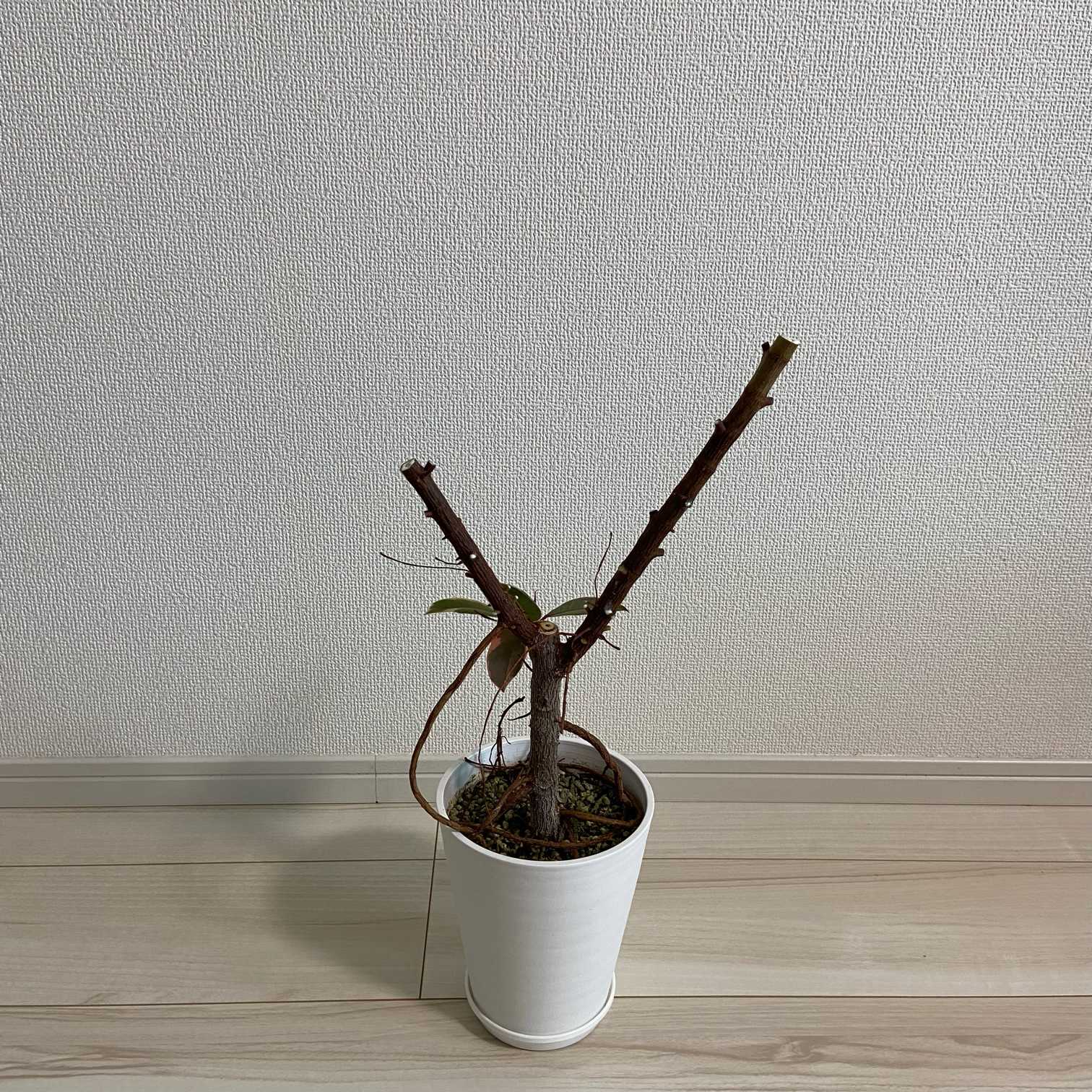 樹形を整えたくて強剪定し、葉も全部カット!丸坊主にしてベランダに出し、少し経過した頃