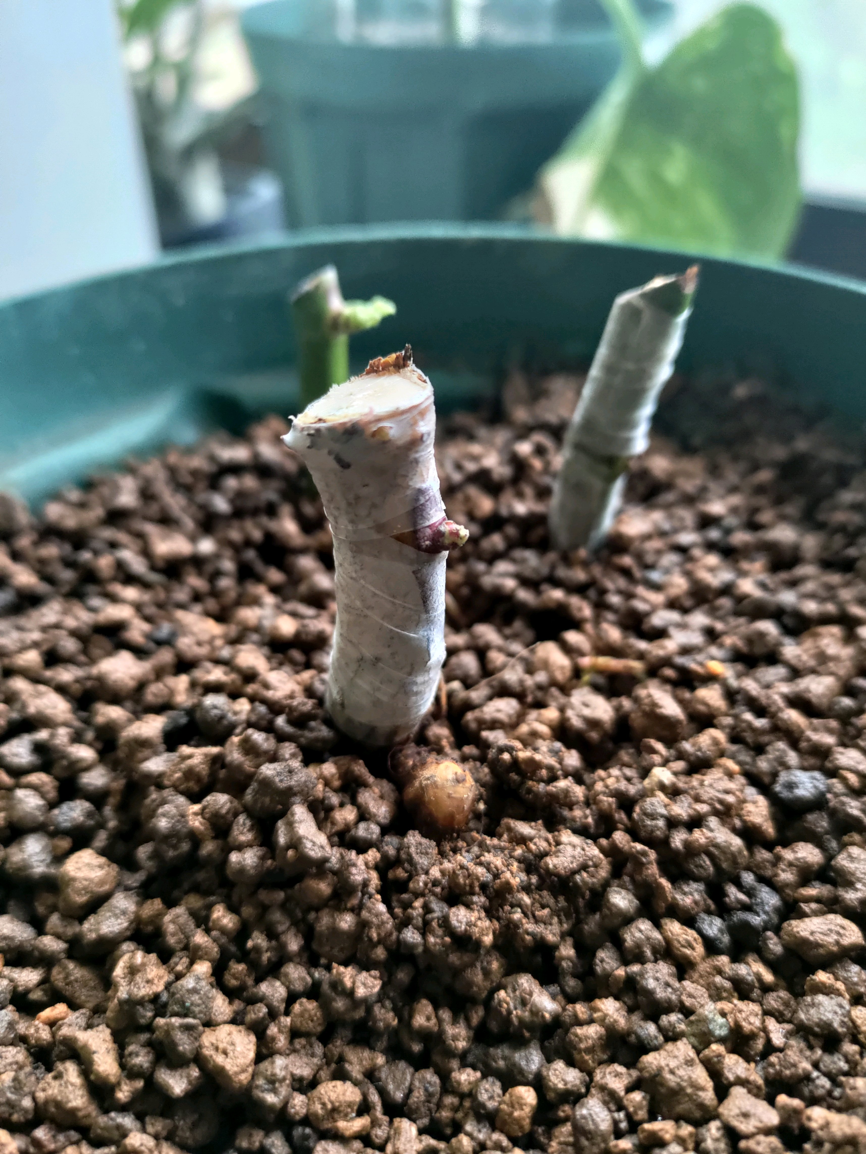 教えて頂いた先生も1週間位で芽の動き確認できたら切っていいよと仰ってたので思い切って切り落としました!