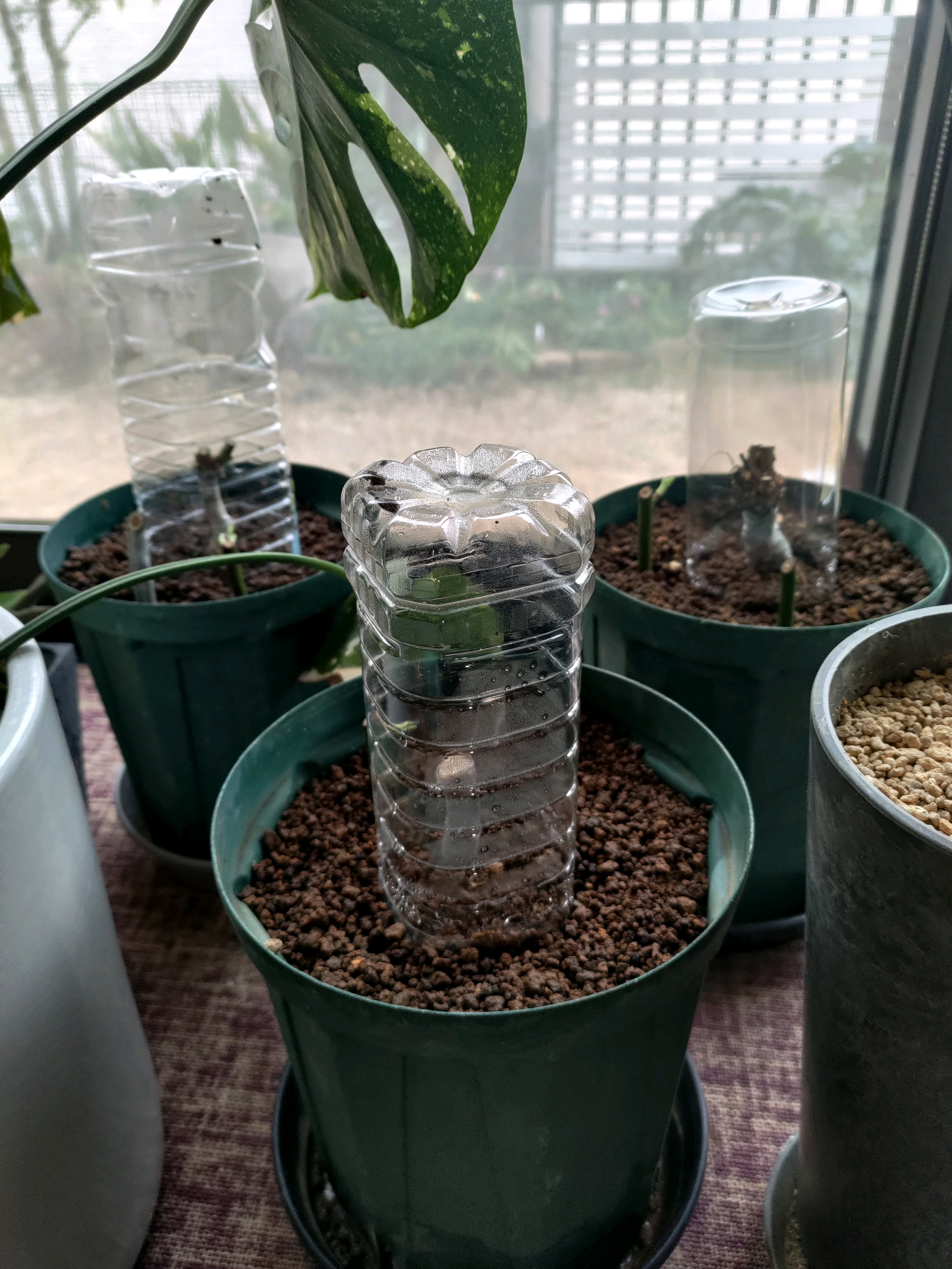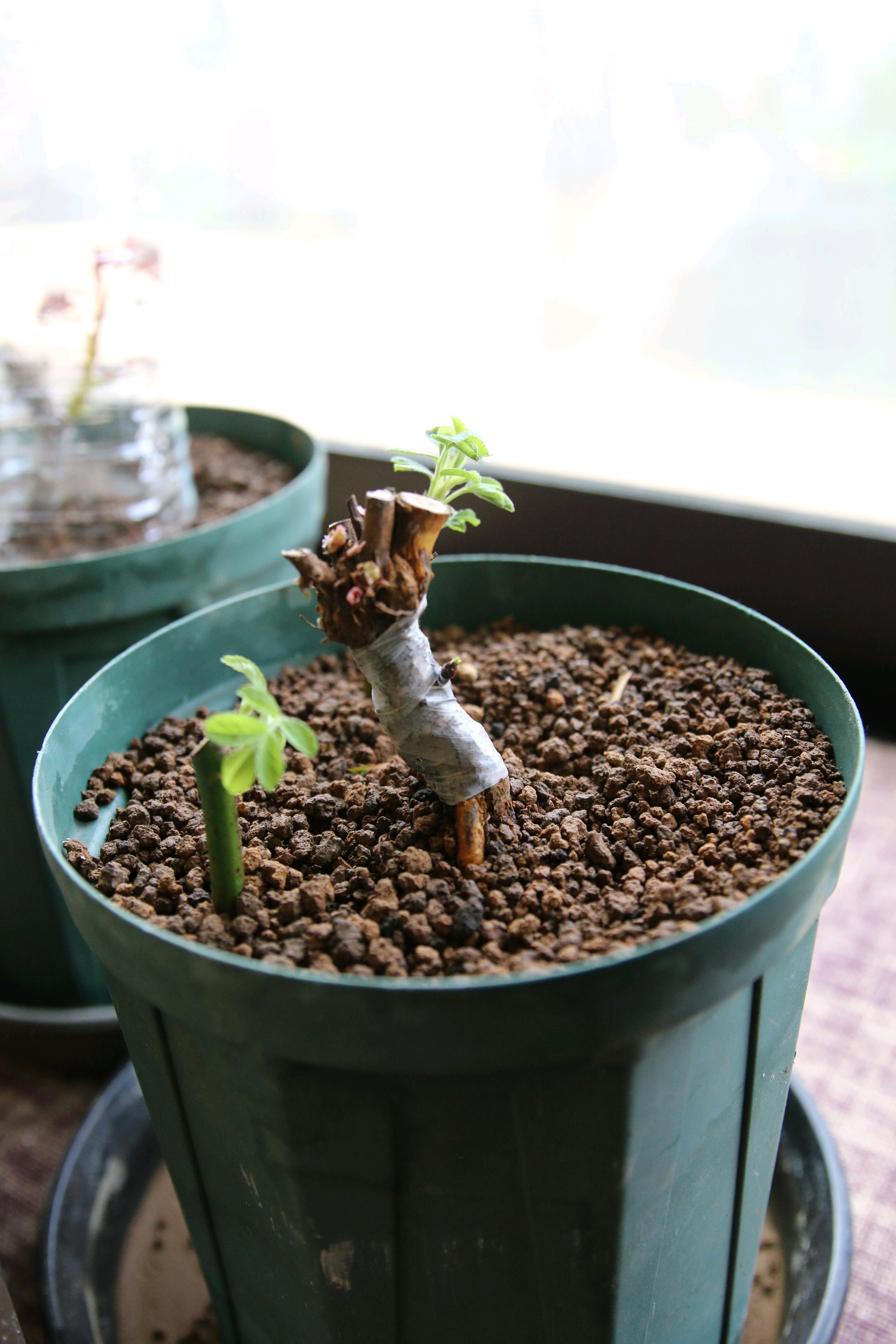 接木経験者の友達に写真送ったらビニール被せないの?って。そうだ!ペットボトル切って被せるように言われたのでした!