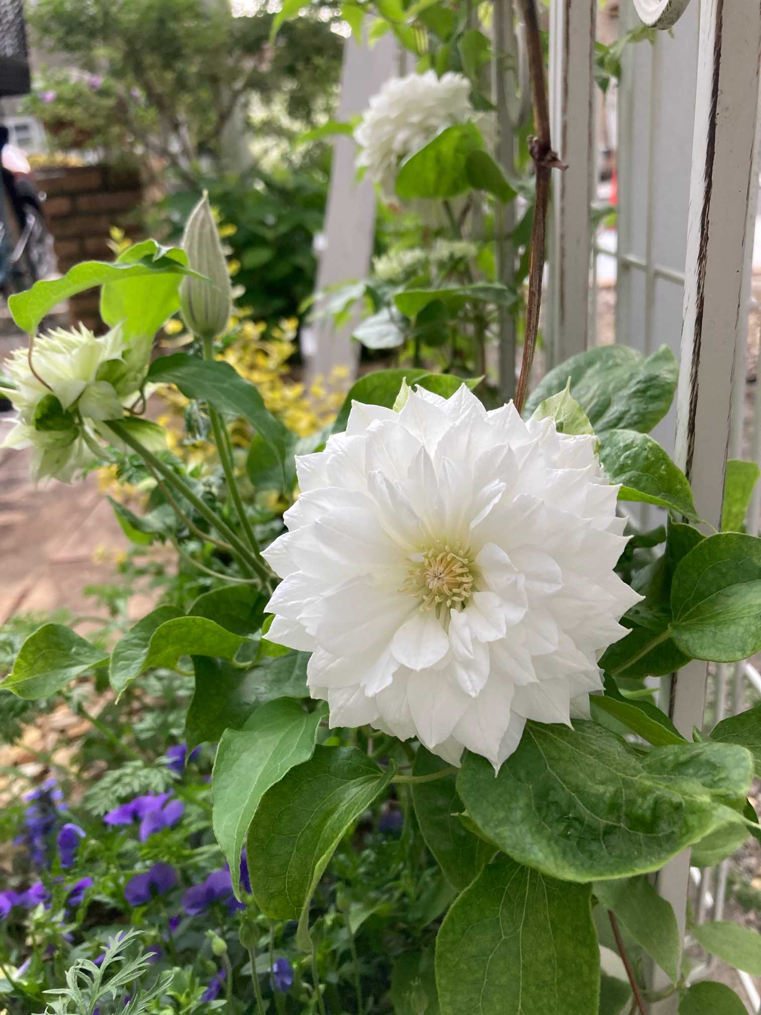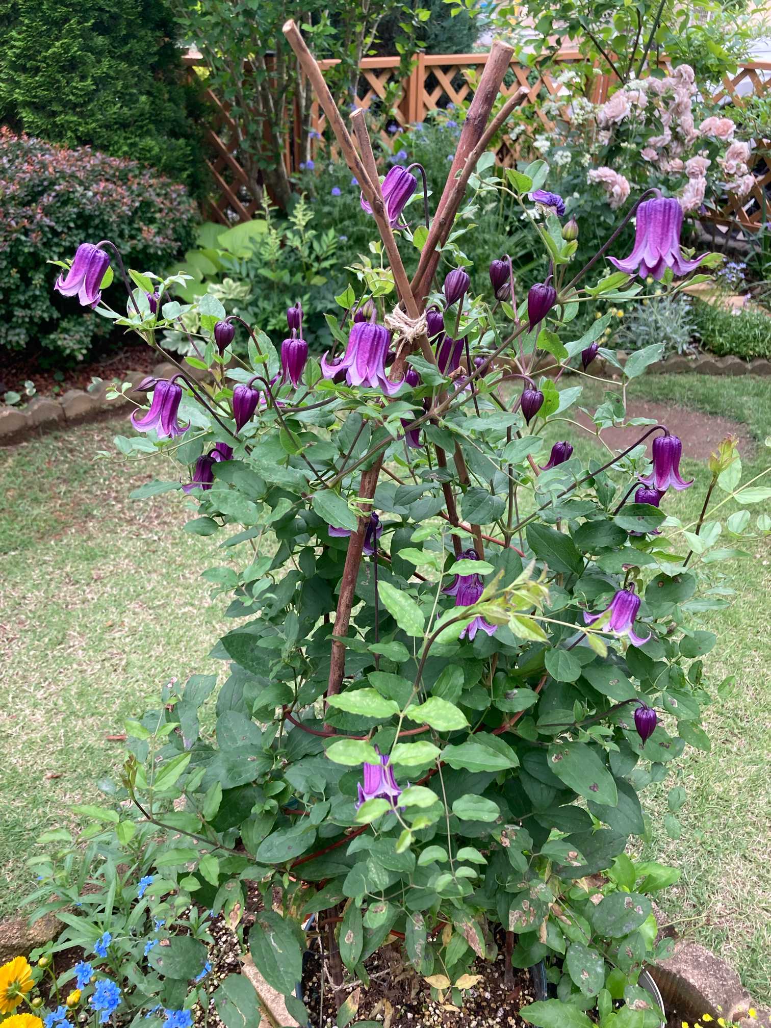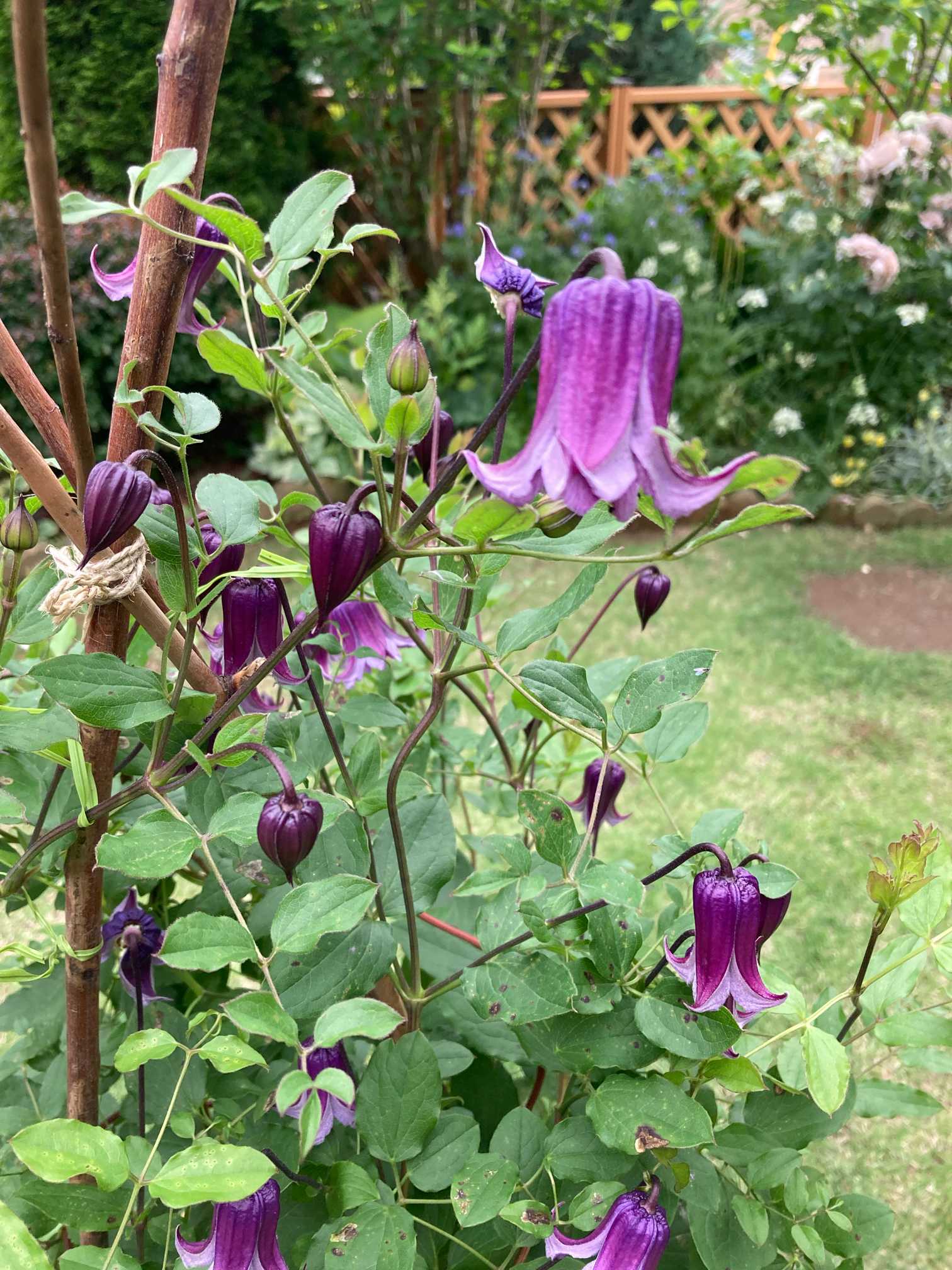 クリオネも旺盛にツルを伸ばしていたので、その都度支柱に巻きつけてお世話しました