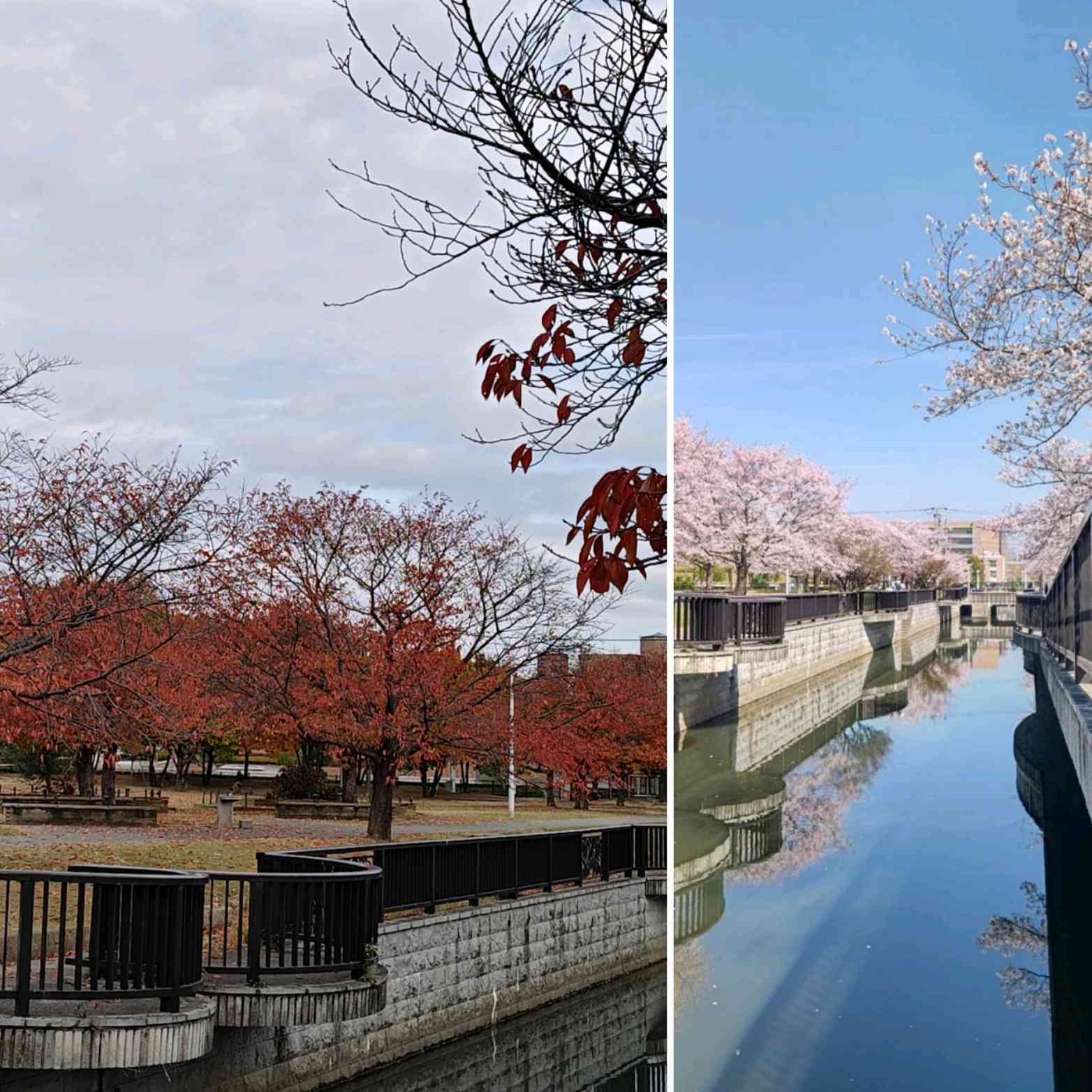 通勤路の春🌸と秋🍂。