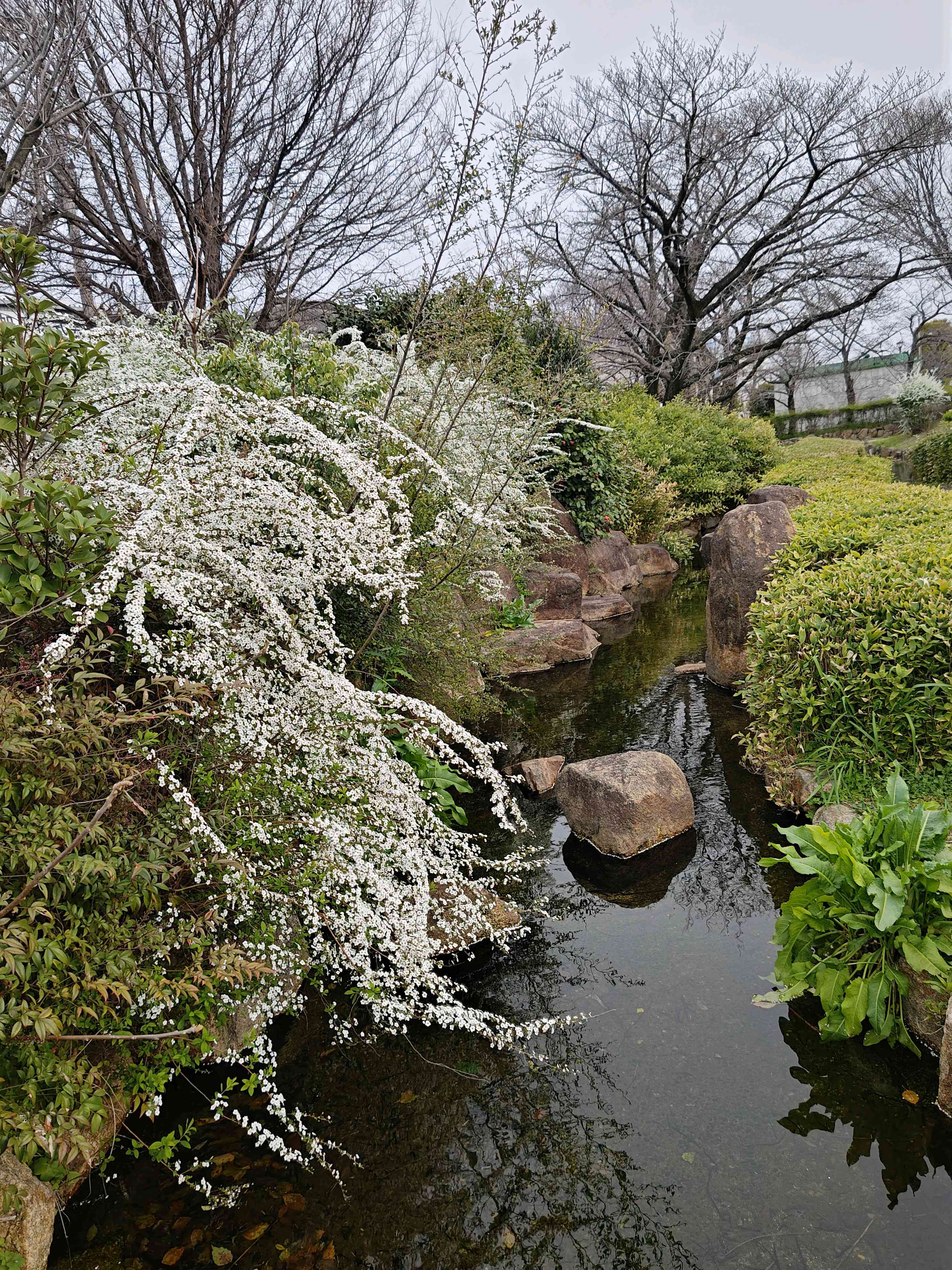 親水水路のユキヤナギ。