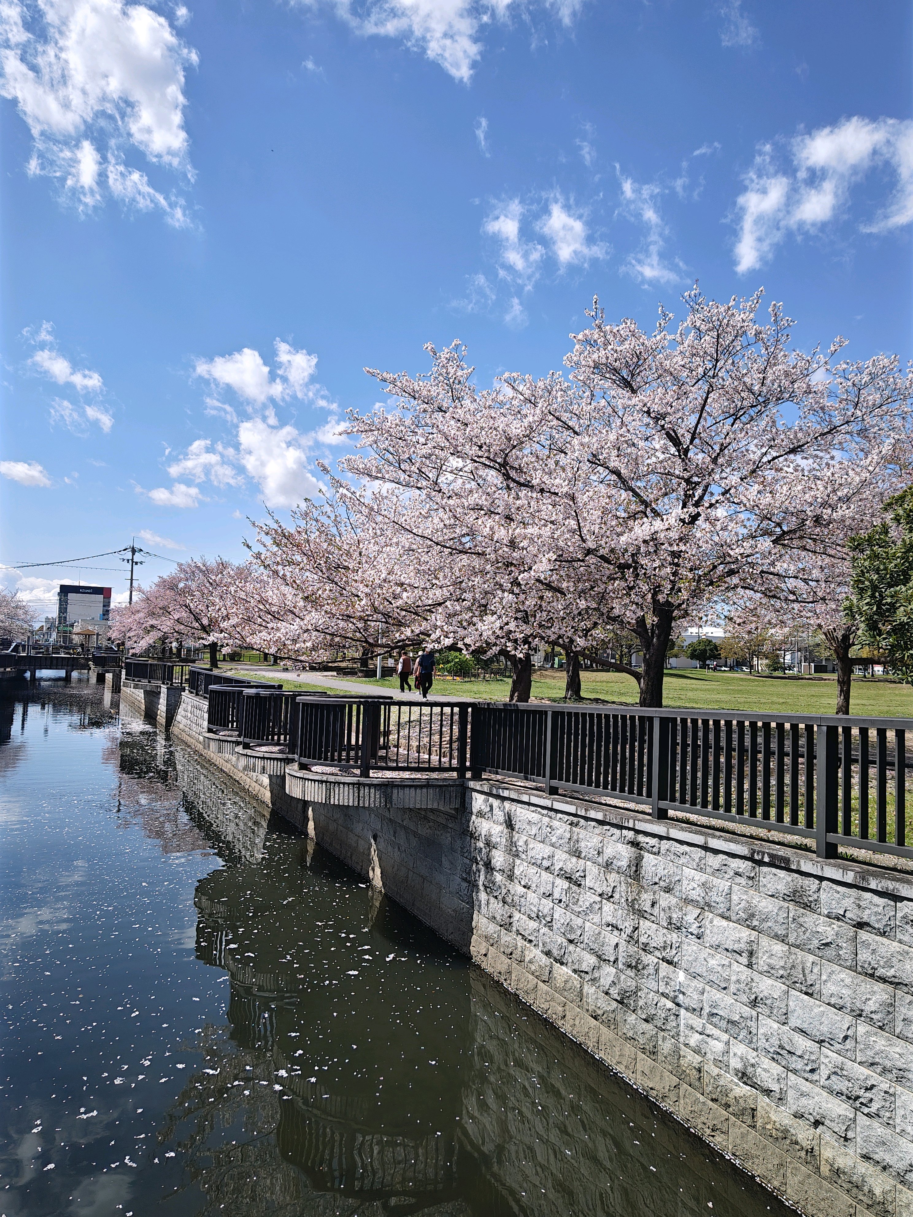 水路に花筏。チラホラ。