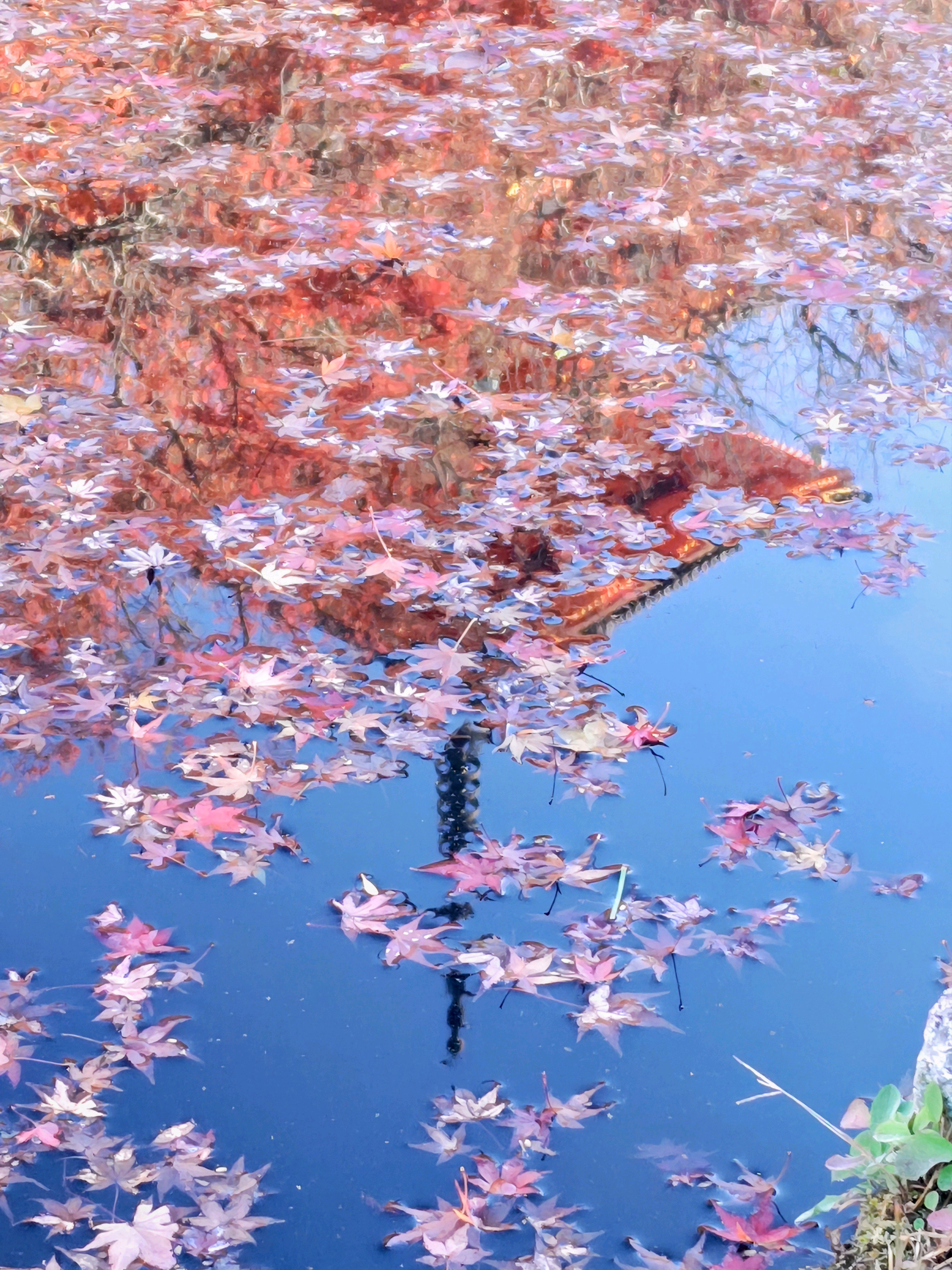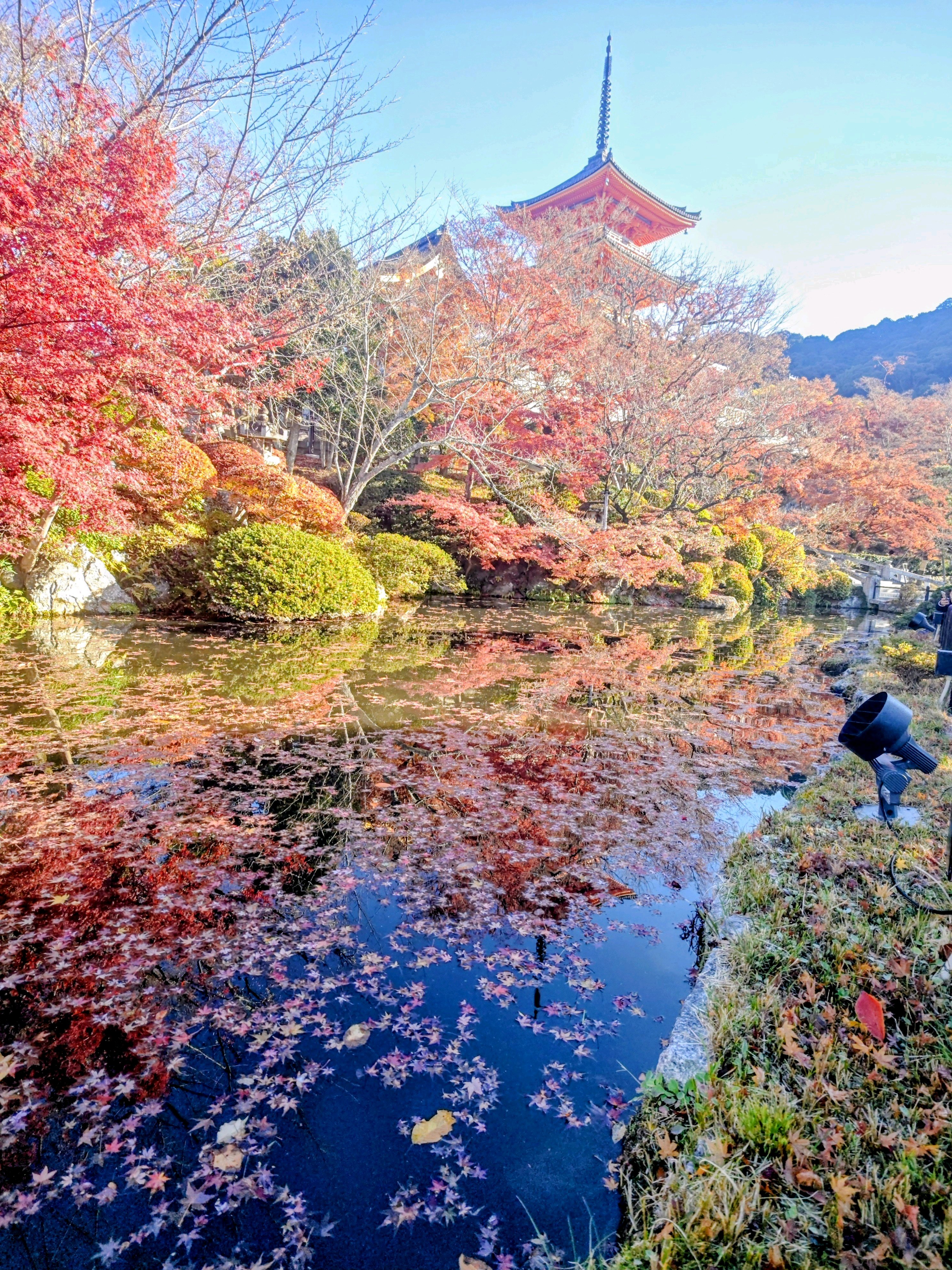 ②朱色の三重の塔と紅葉🍁が水鏡に映える✨️