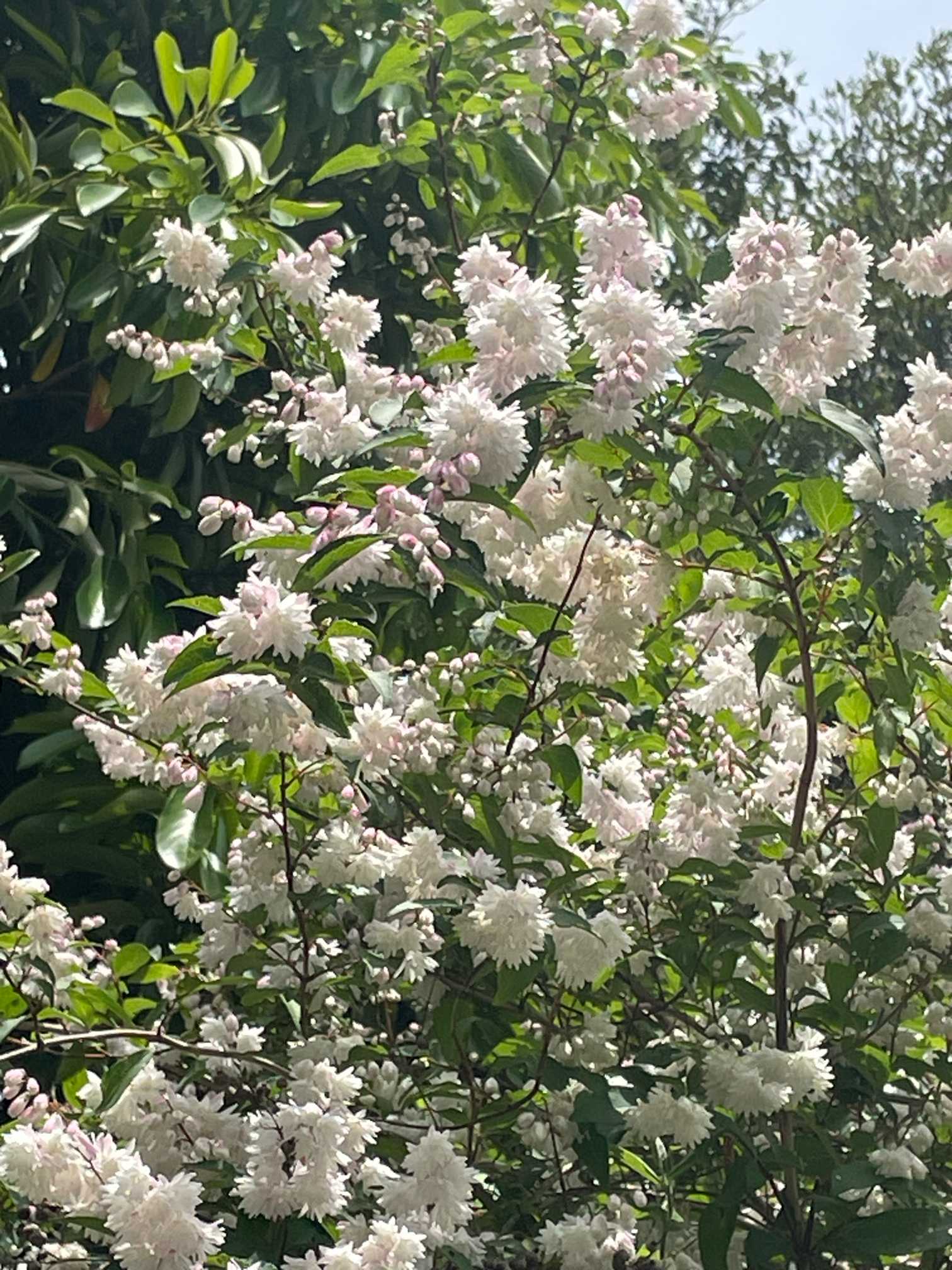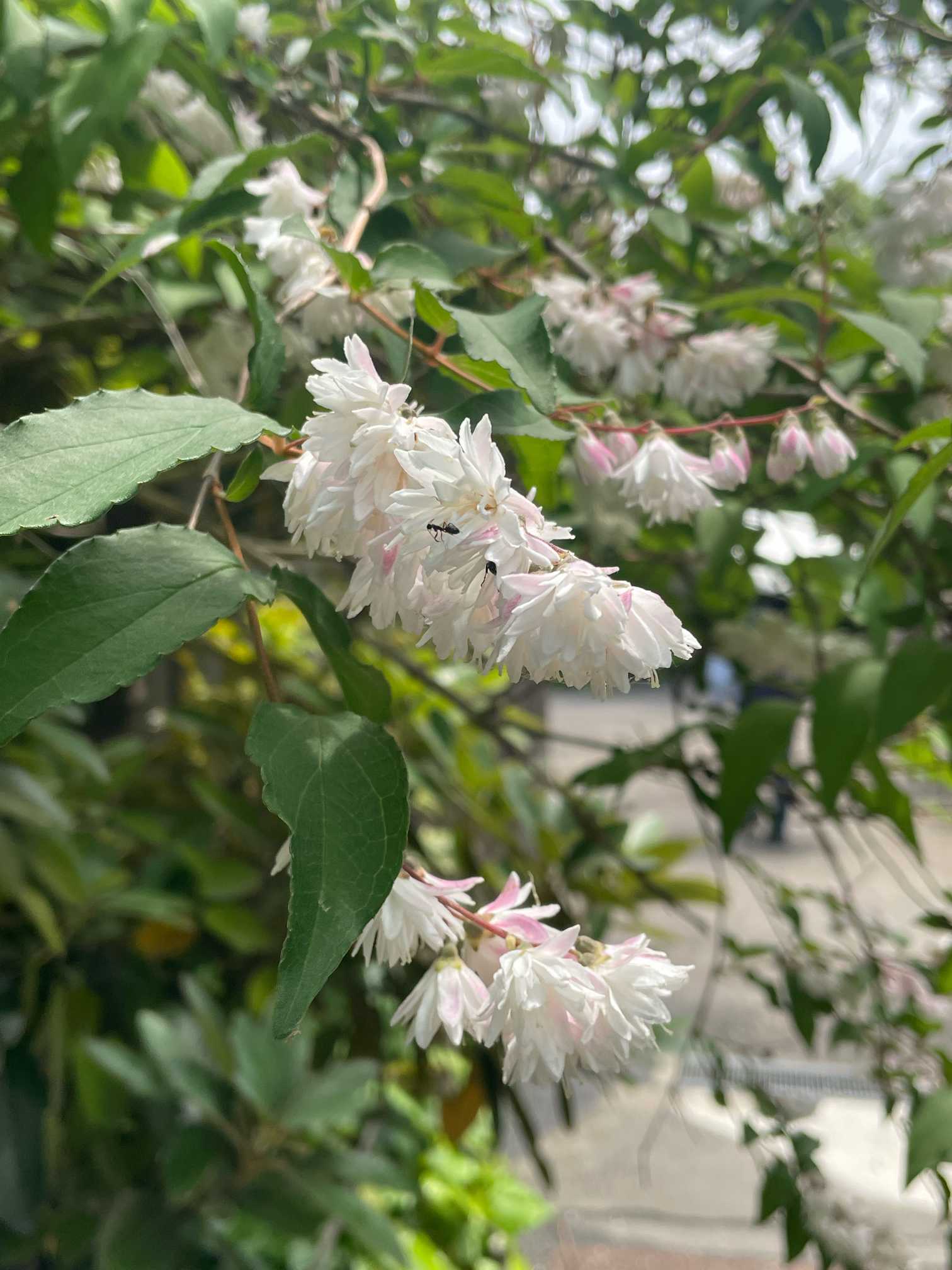 ふわふわなウツギのお花。サクラウツギかな、八重のお花が優雅です🌸