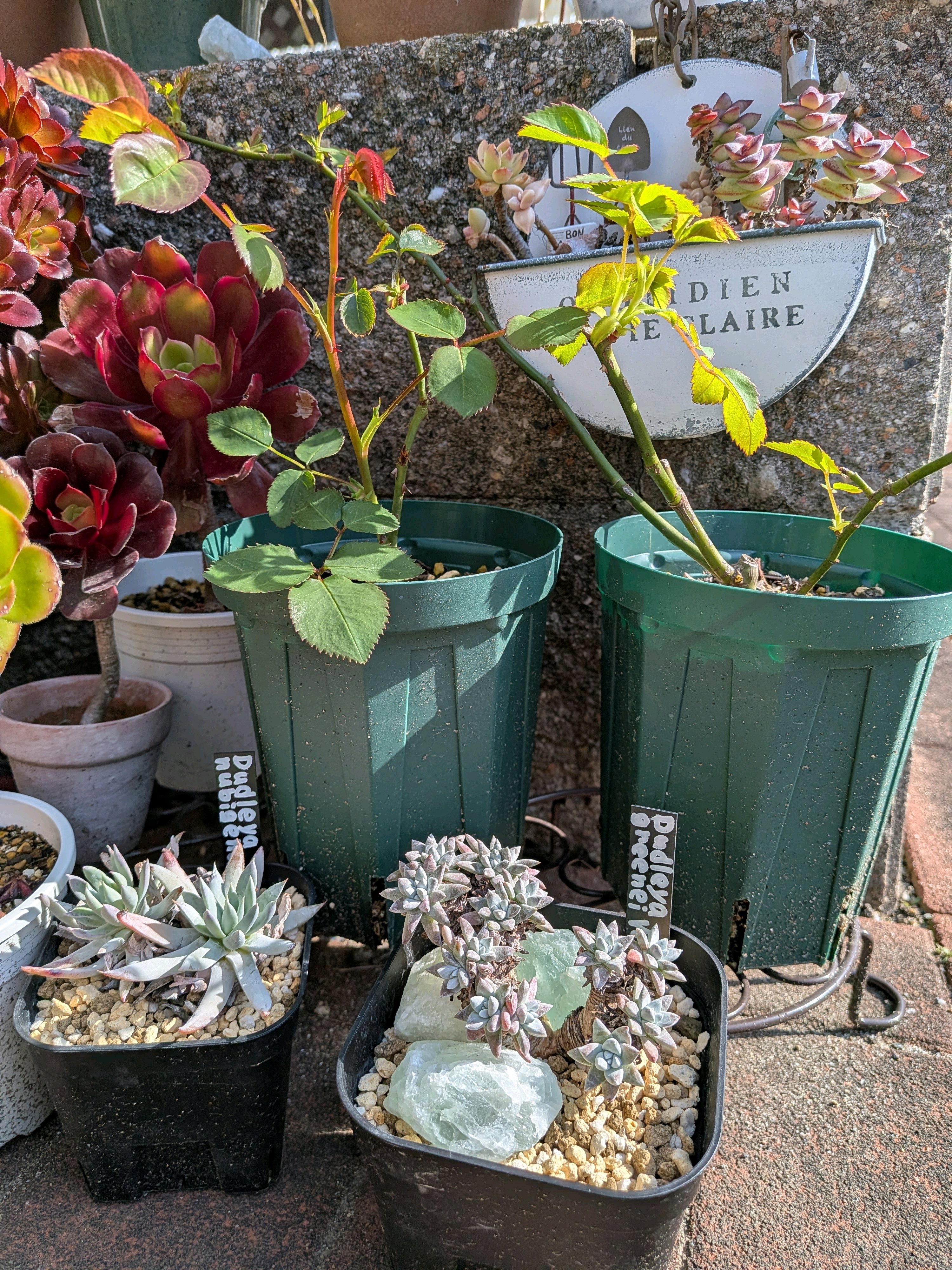 薔薇の鉢の間に