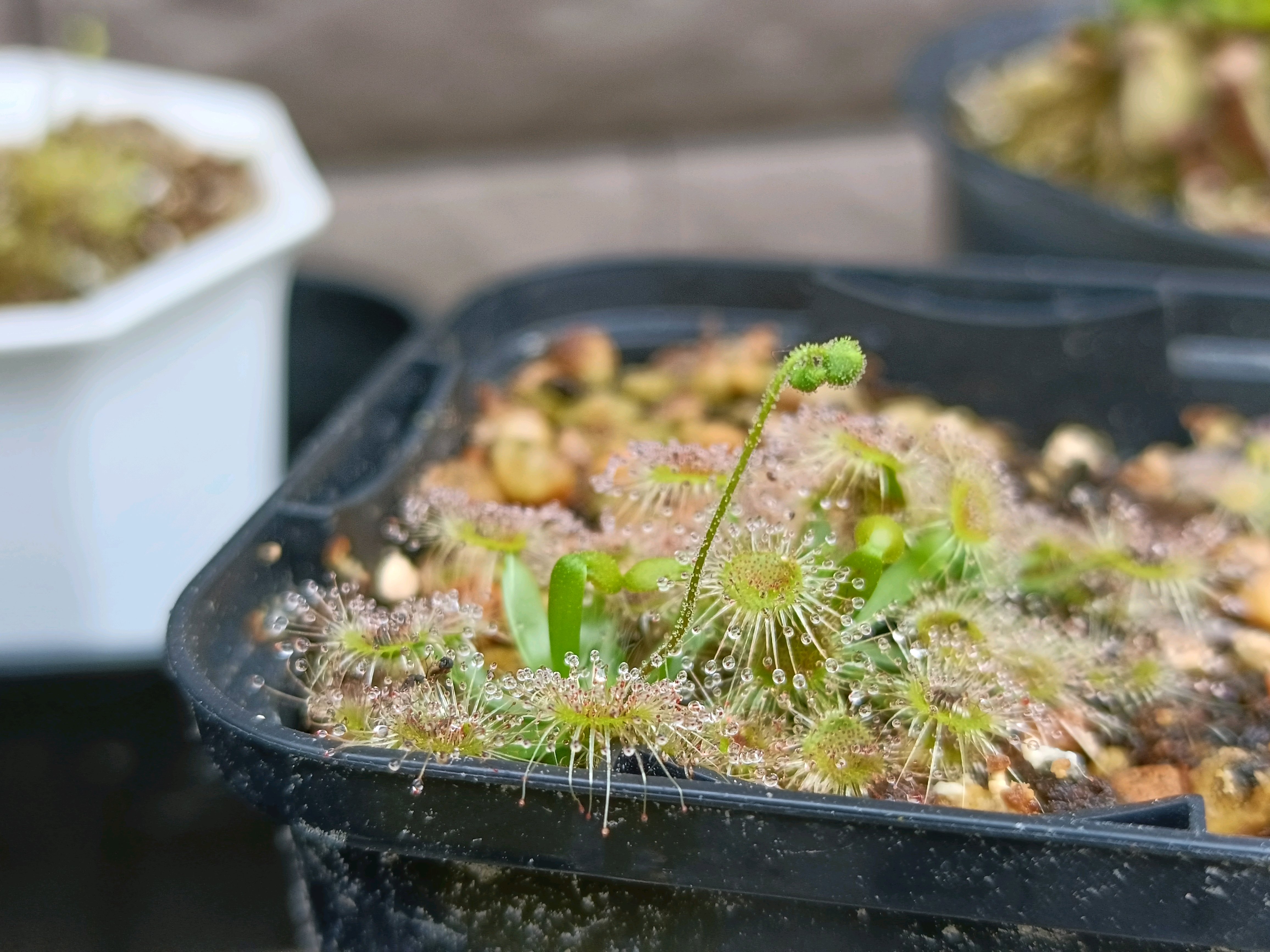 ピグミードロセラは根が真っ直ぐ伸びるから、鉢は深いのがいいらしい。