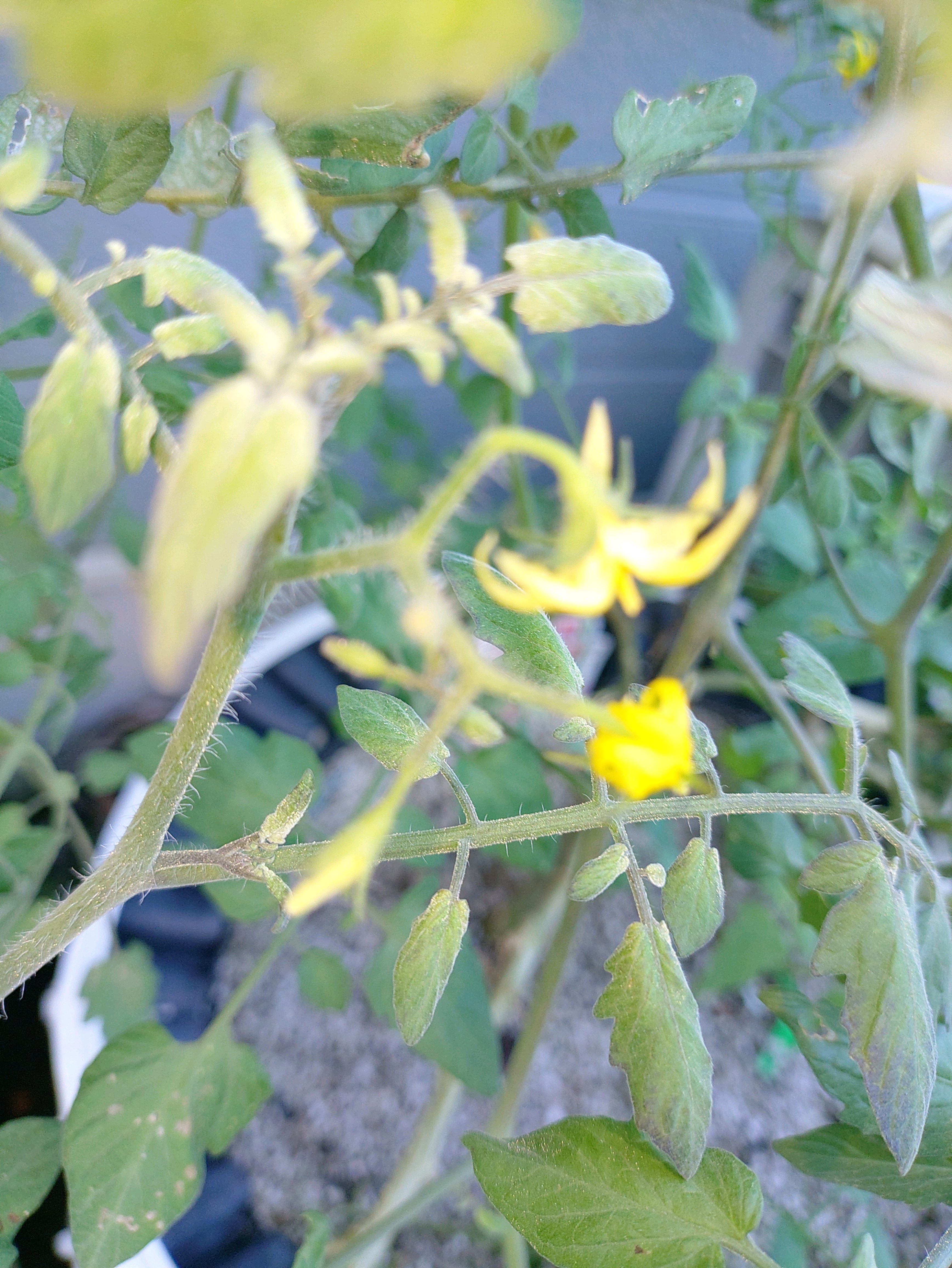 夏前から育ててるトマトのうち フルーツトマトだけ実らないので 強制的に実らせたい