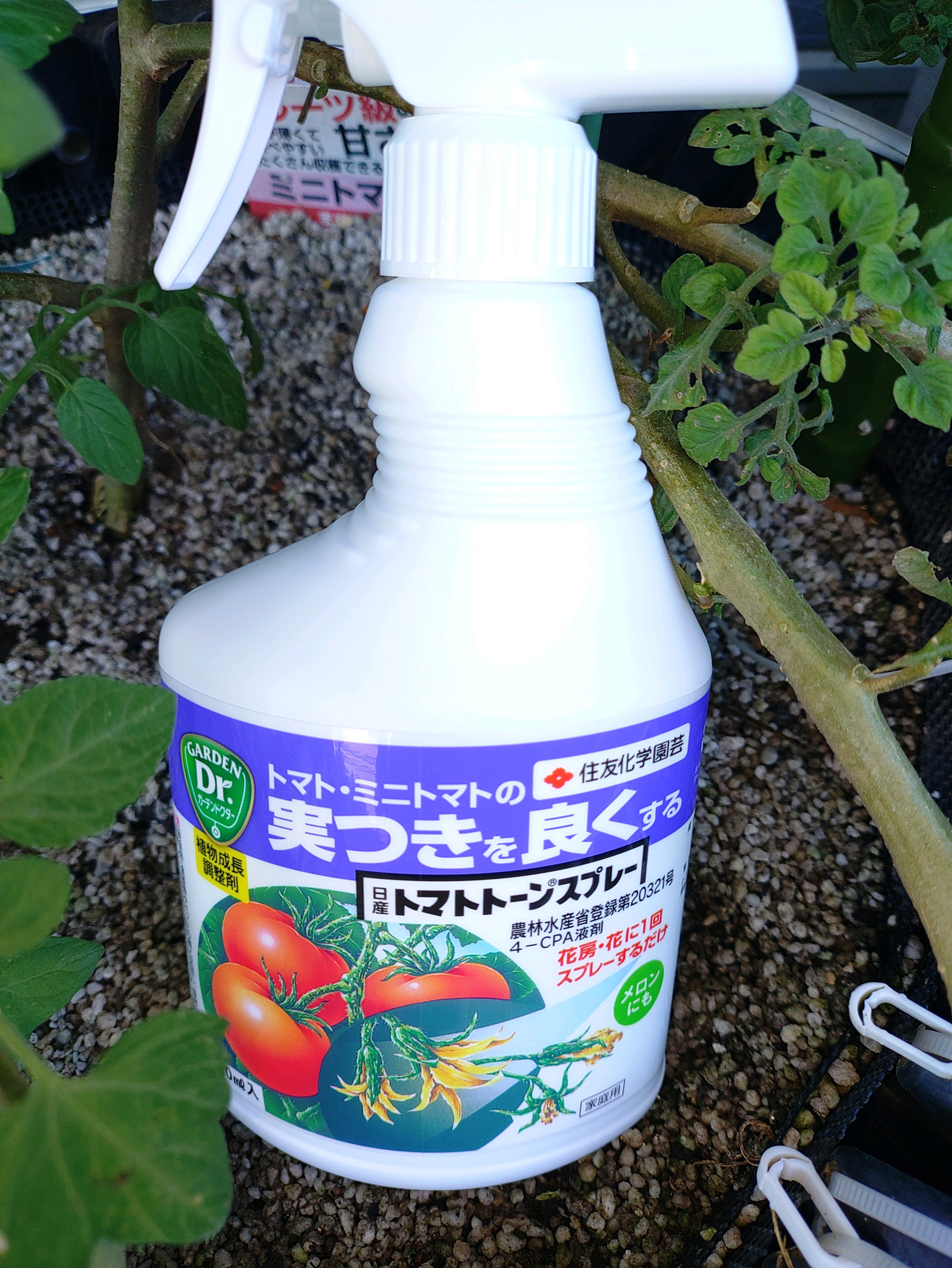 さてトマトの花弁にトマトトーンを霧吹きすると 実がなると言った優れ物なのですが