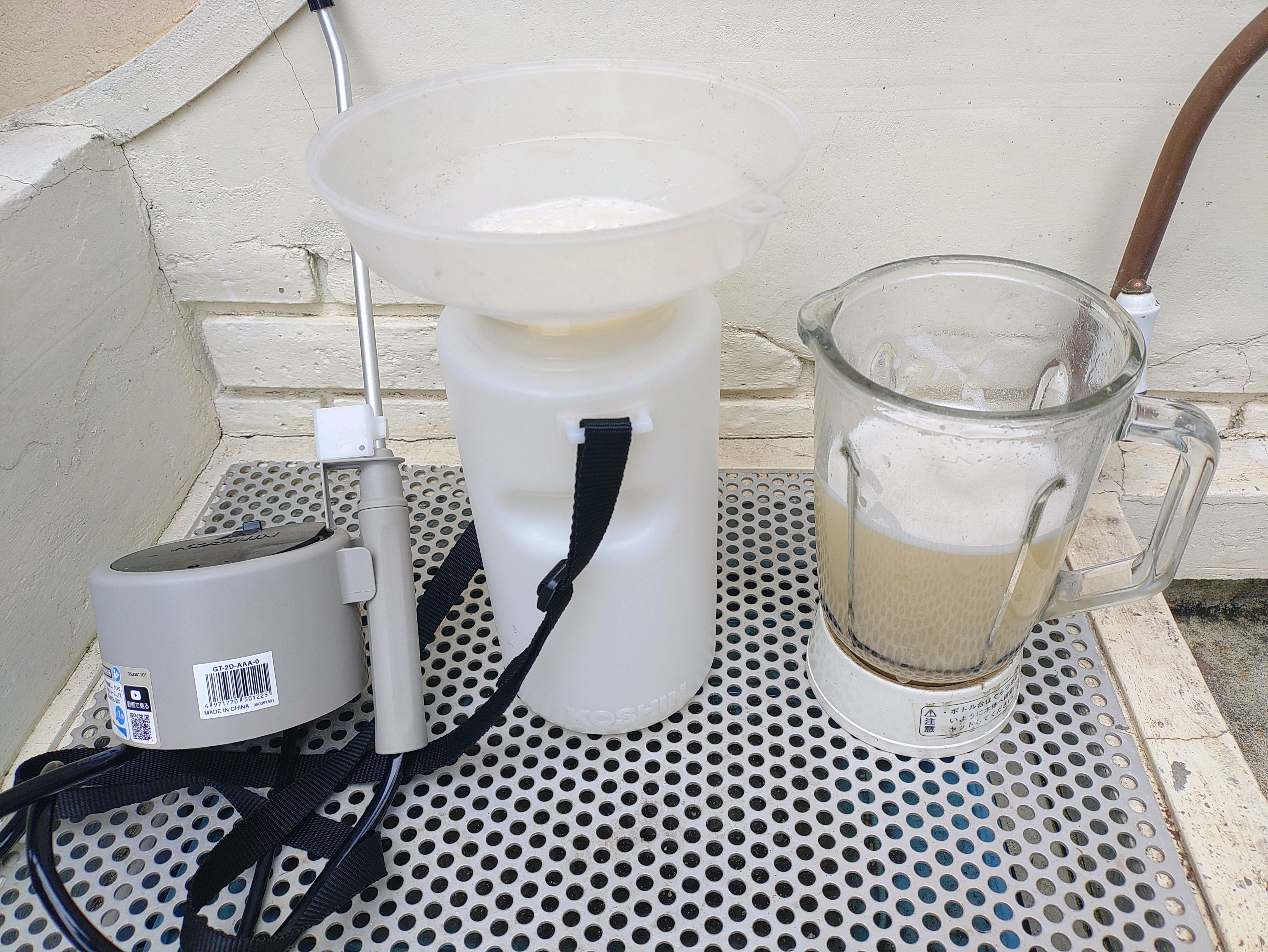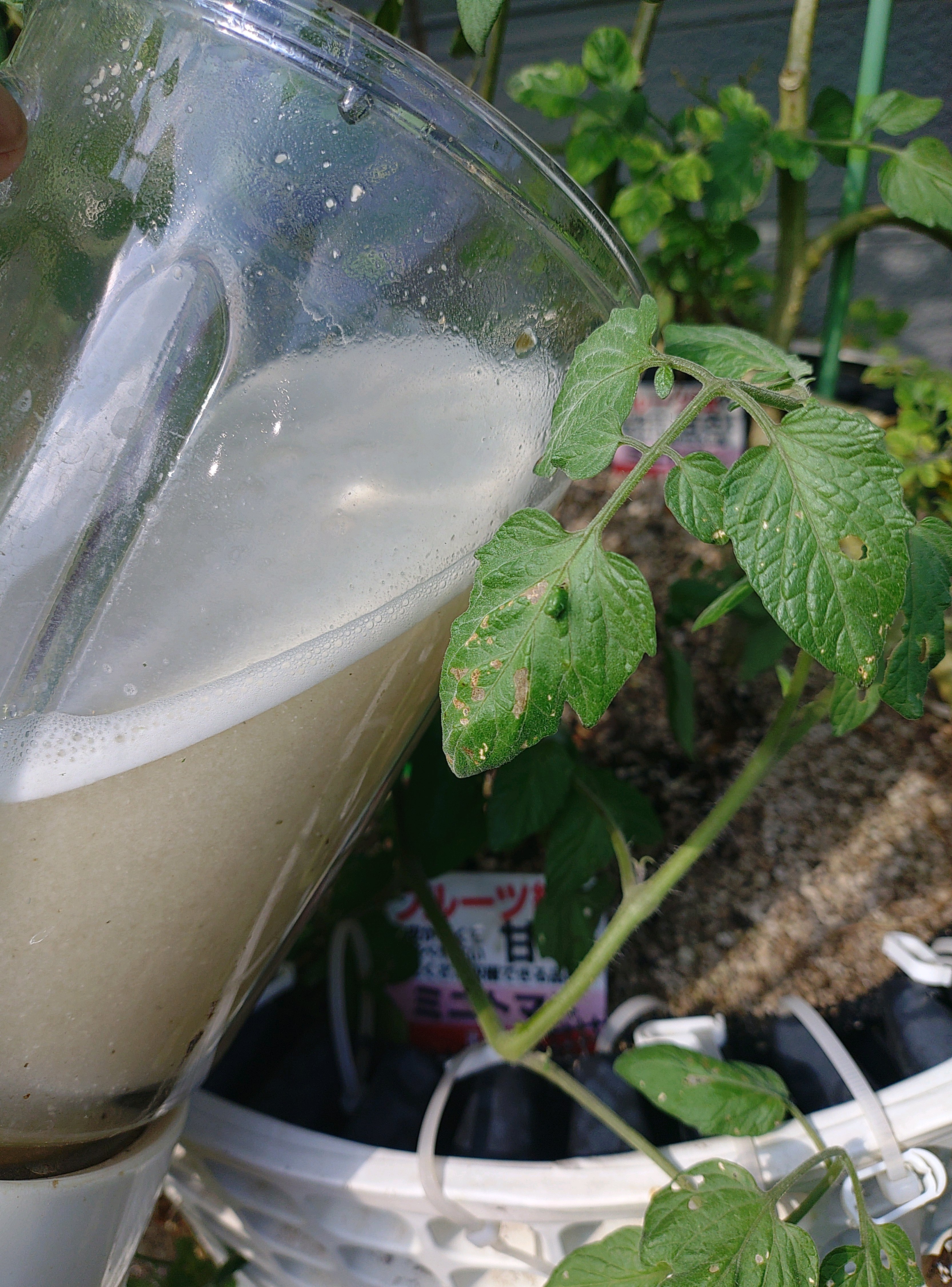 納豆に水を加え ミキサーにかけて水溶液施肥