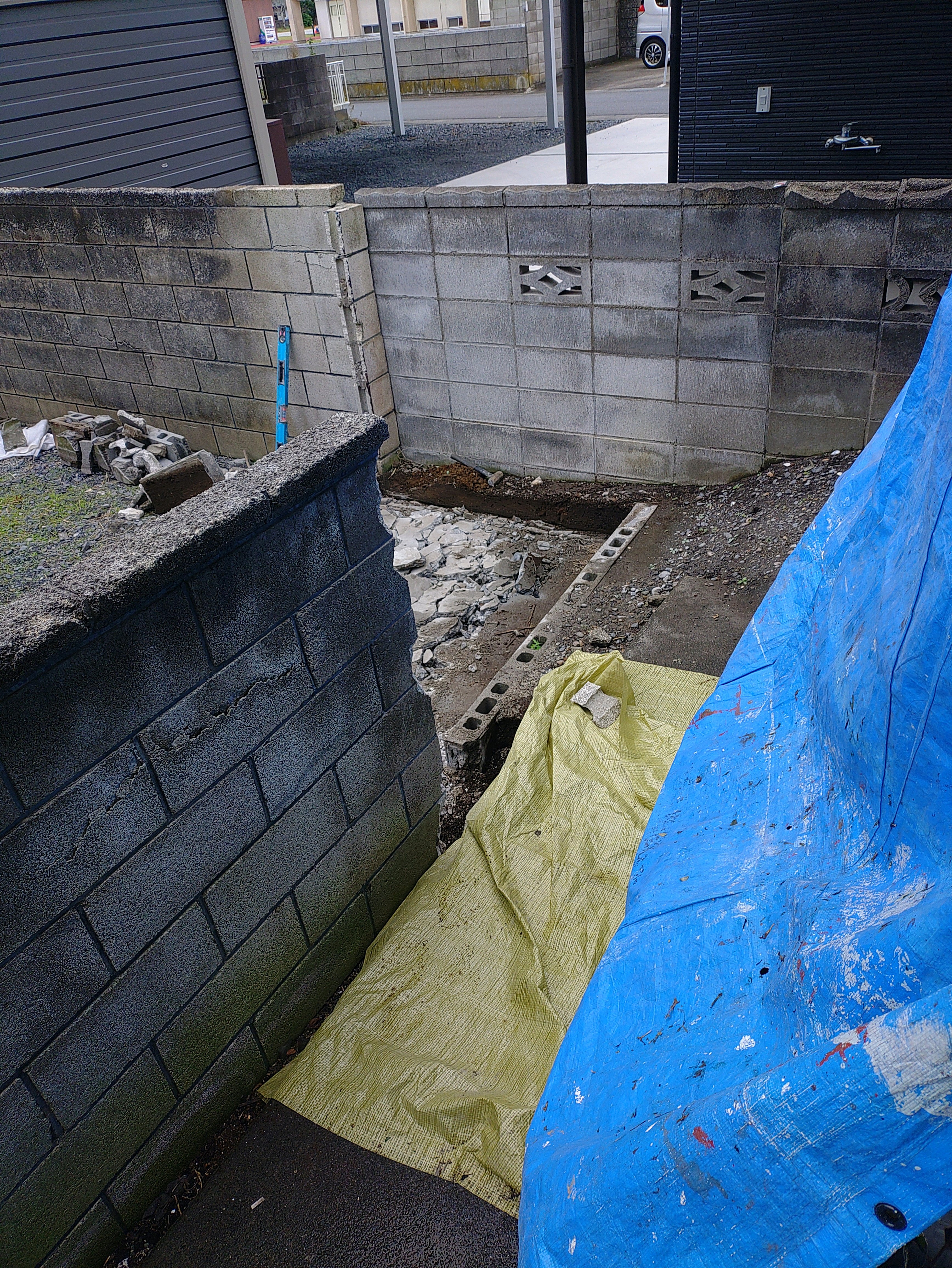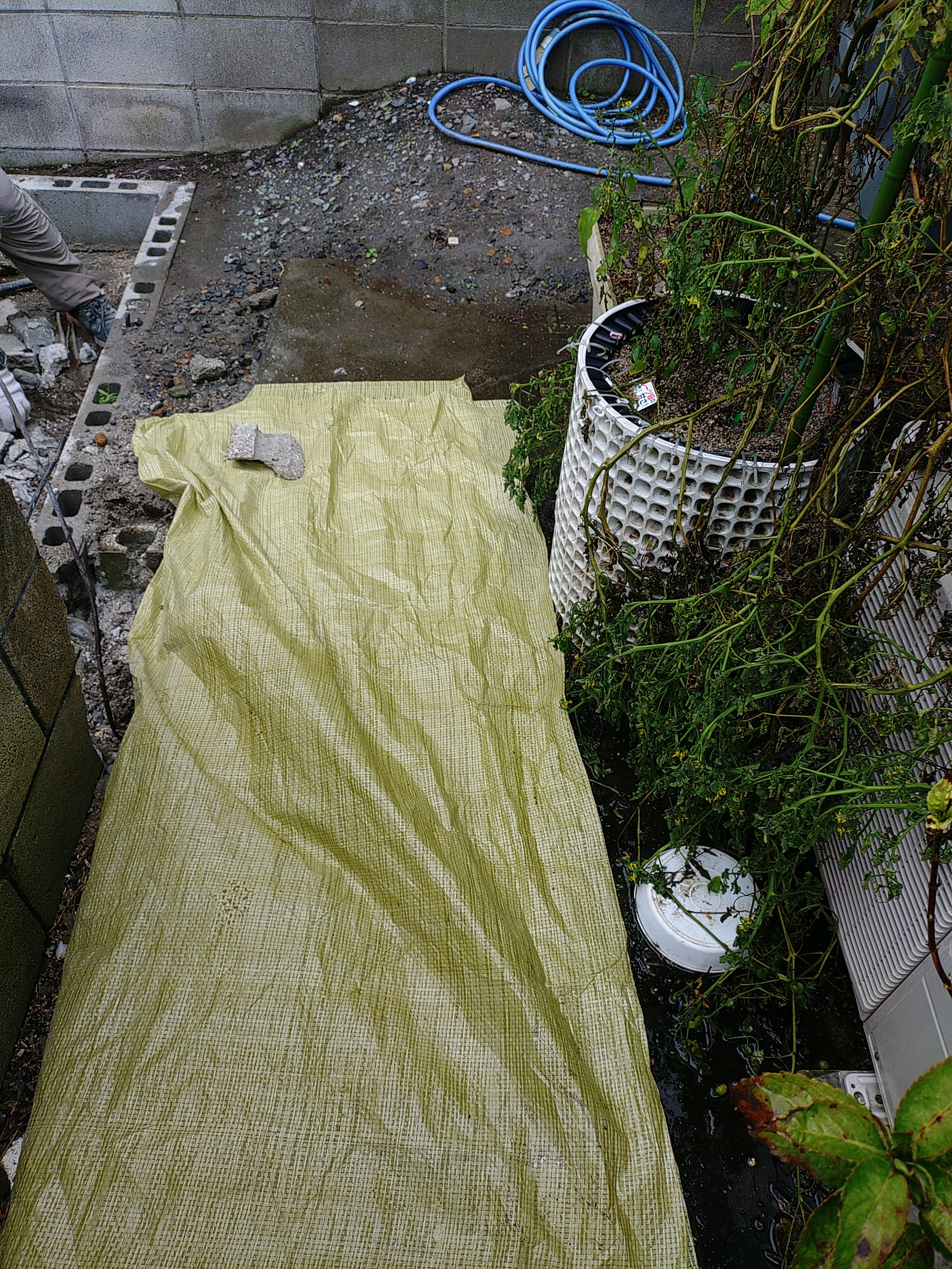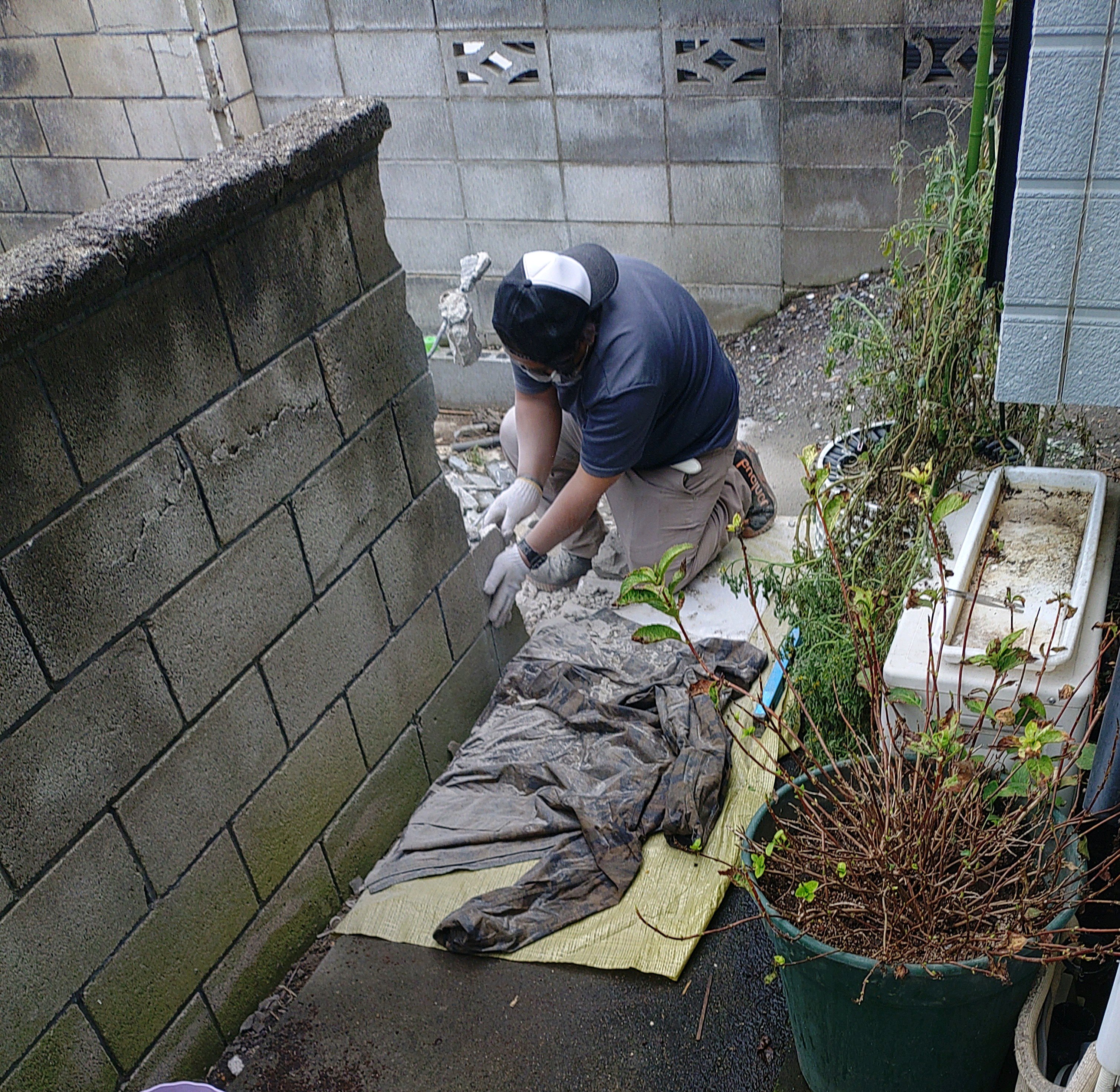 隣の空家の塀の修理に家の敷地内で無断で勝手に黄色いシート広げて仕事してる訳よ