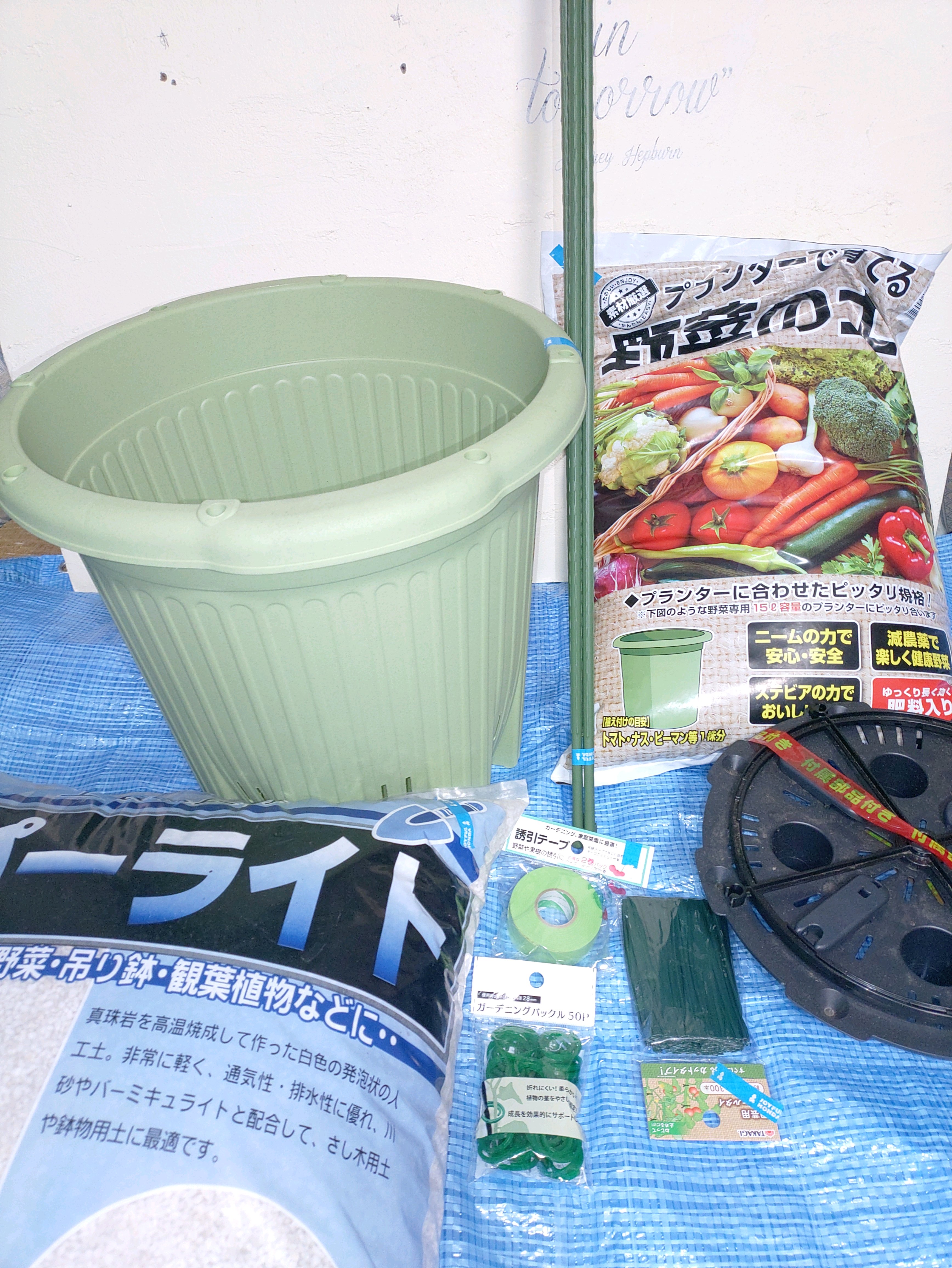 仕立てるのに 専用の鉢を購入 ついでに野菜培養土 パーライト 誘引一式もろもろ…