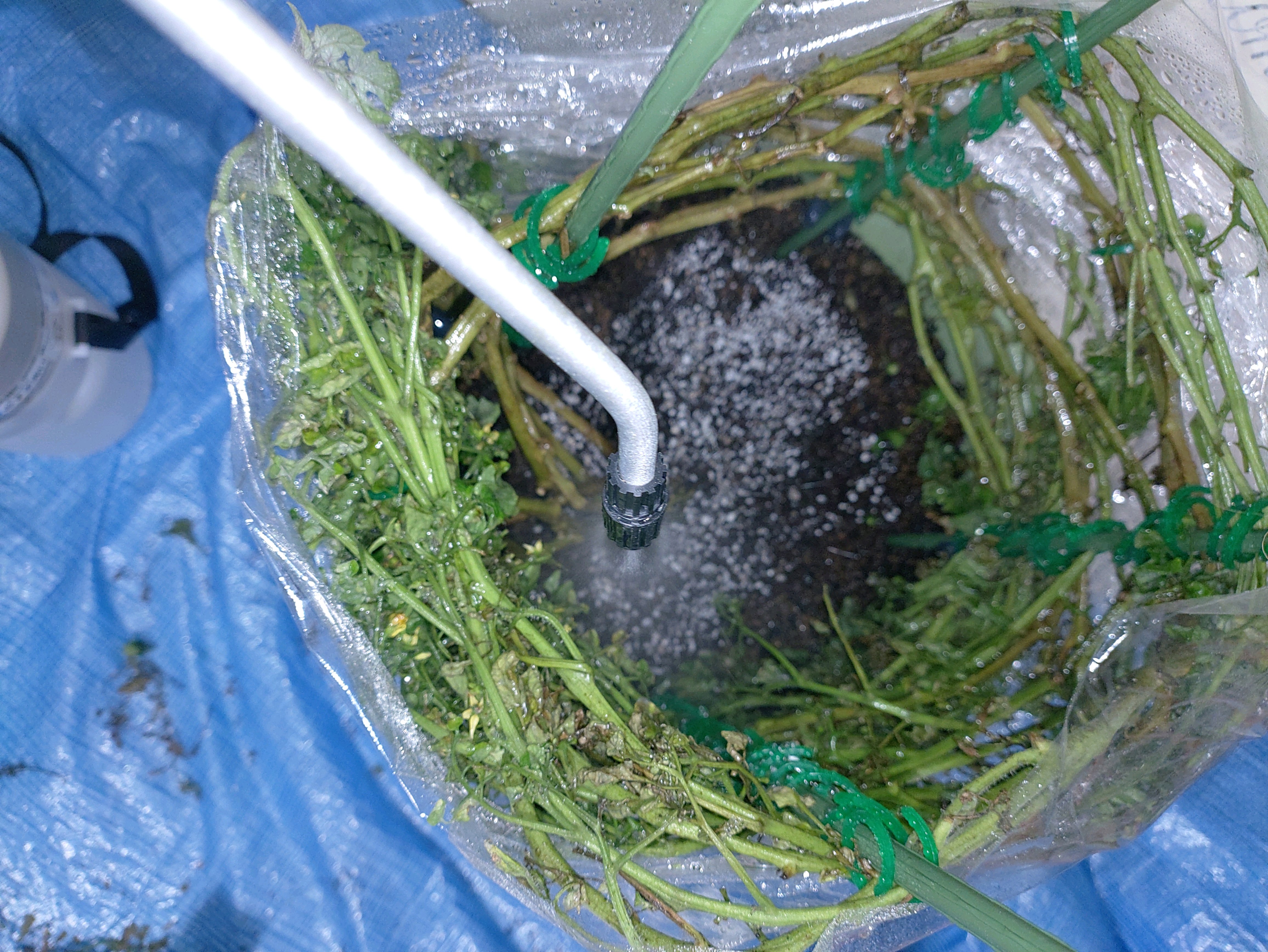 ラップでぐるぐるラッピングして 内側から ハイドレーション(葉面散布)