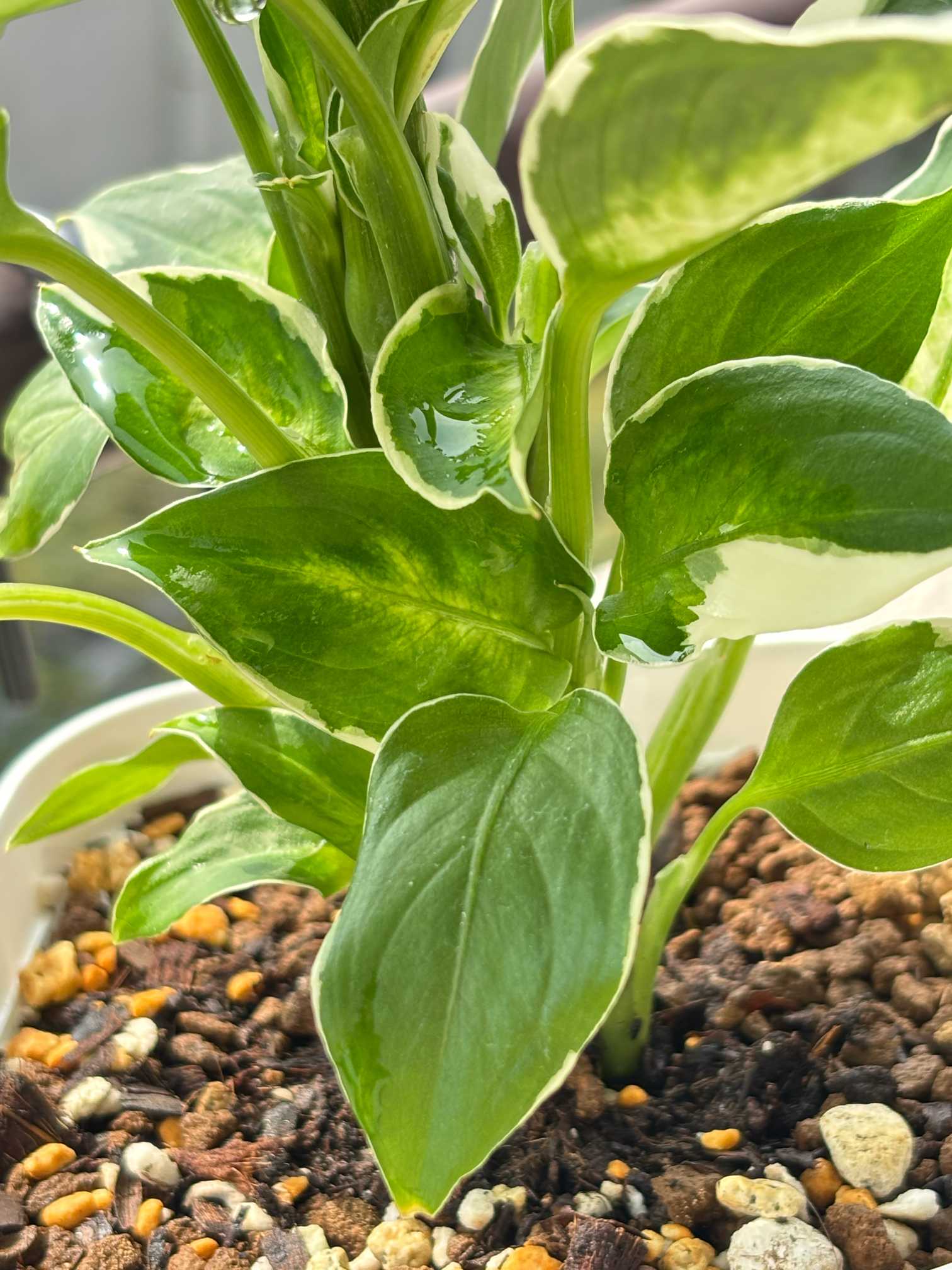 過湿はNGで、葉っぱに霧吹き