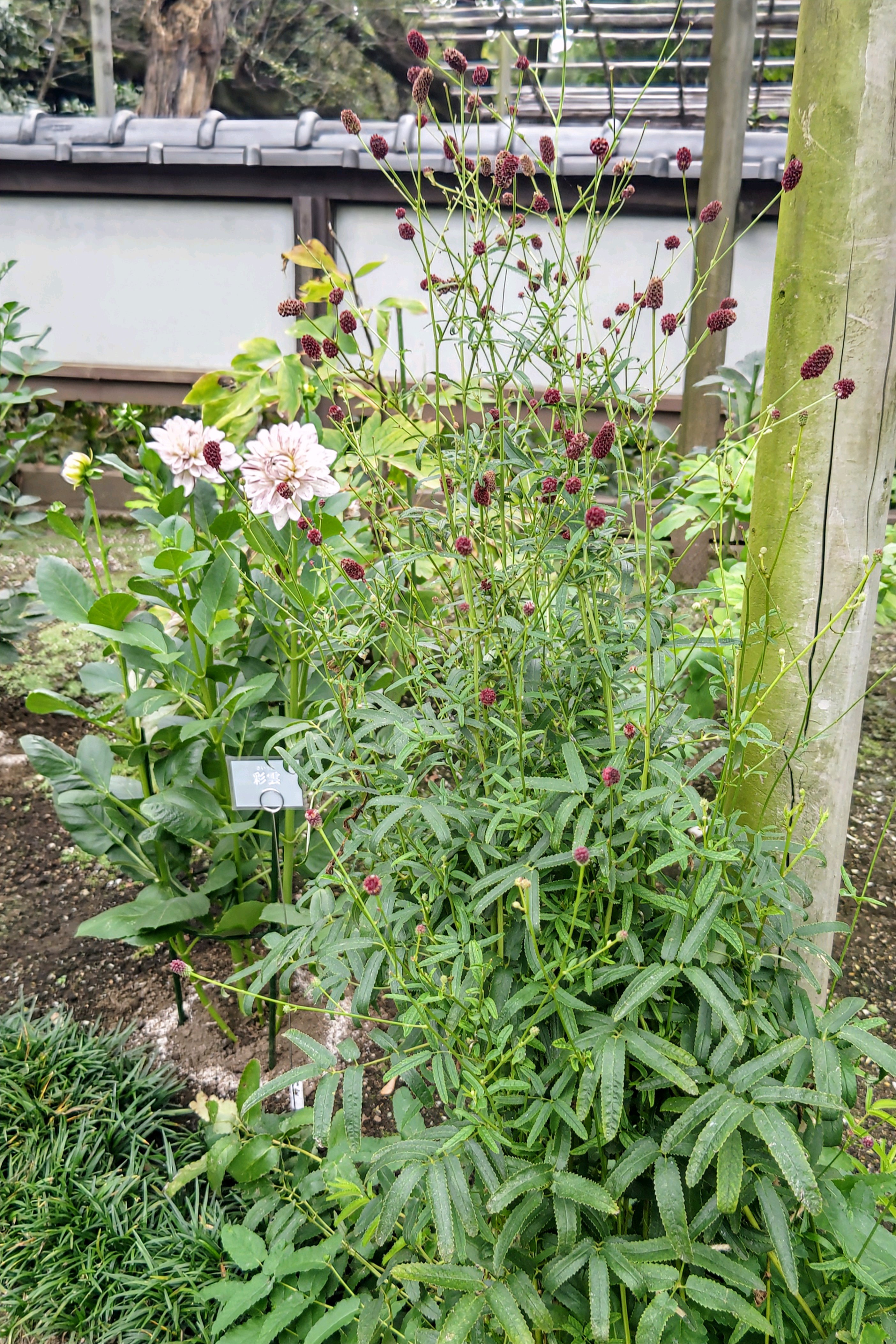 吾亦紅 後方のダリアは彩雲