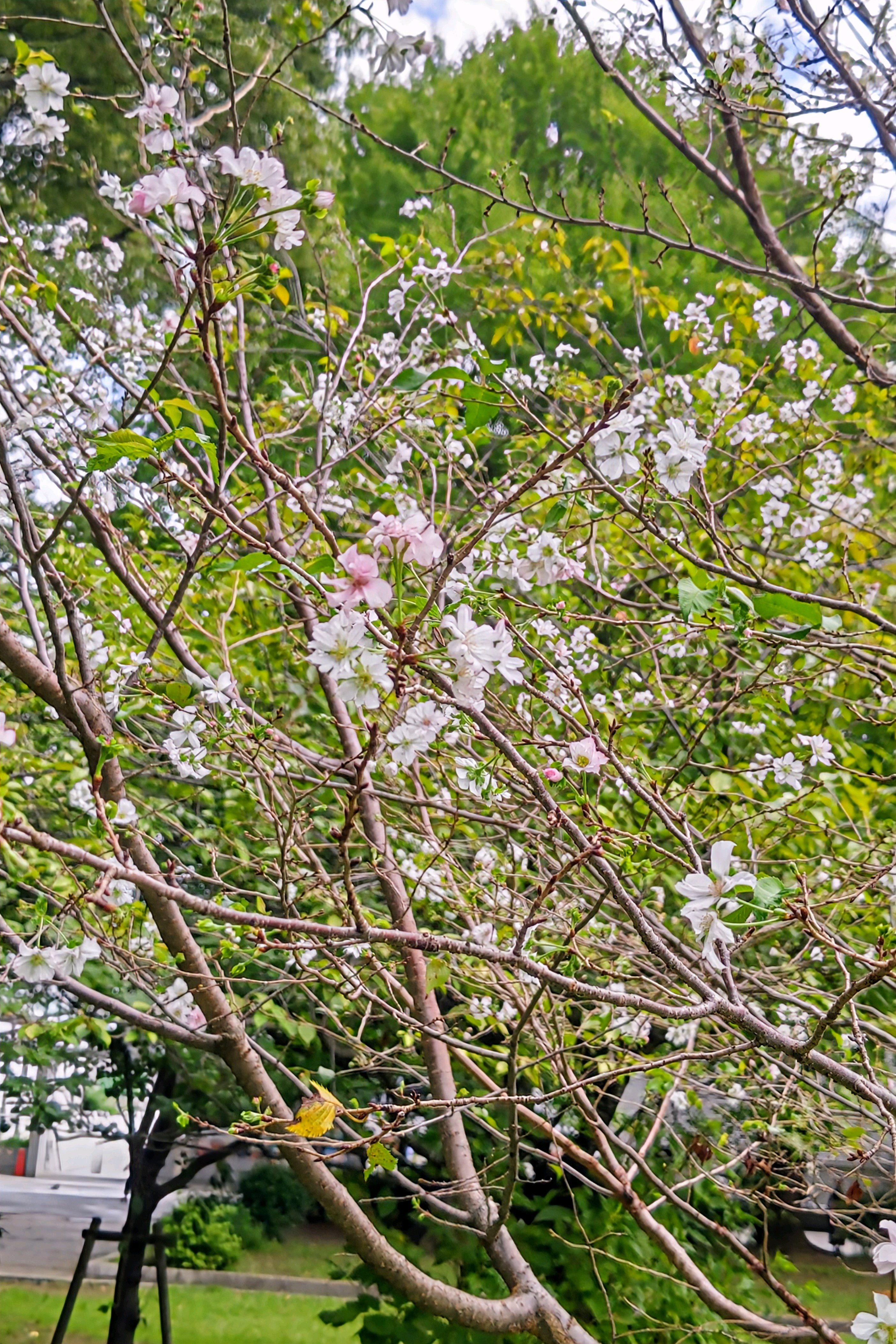 遠目に白い花