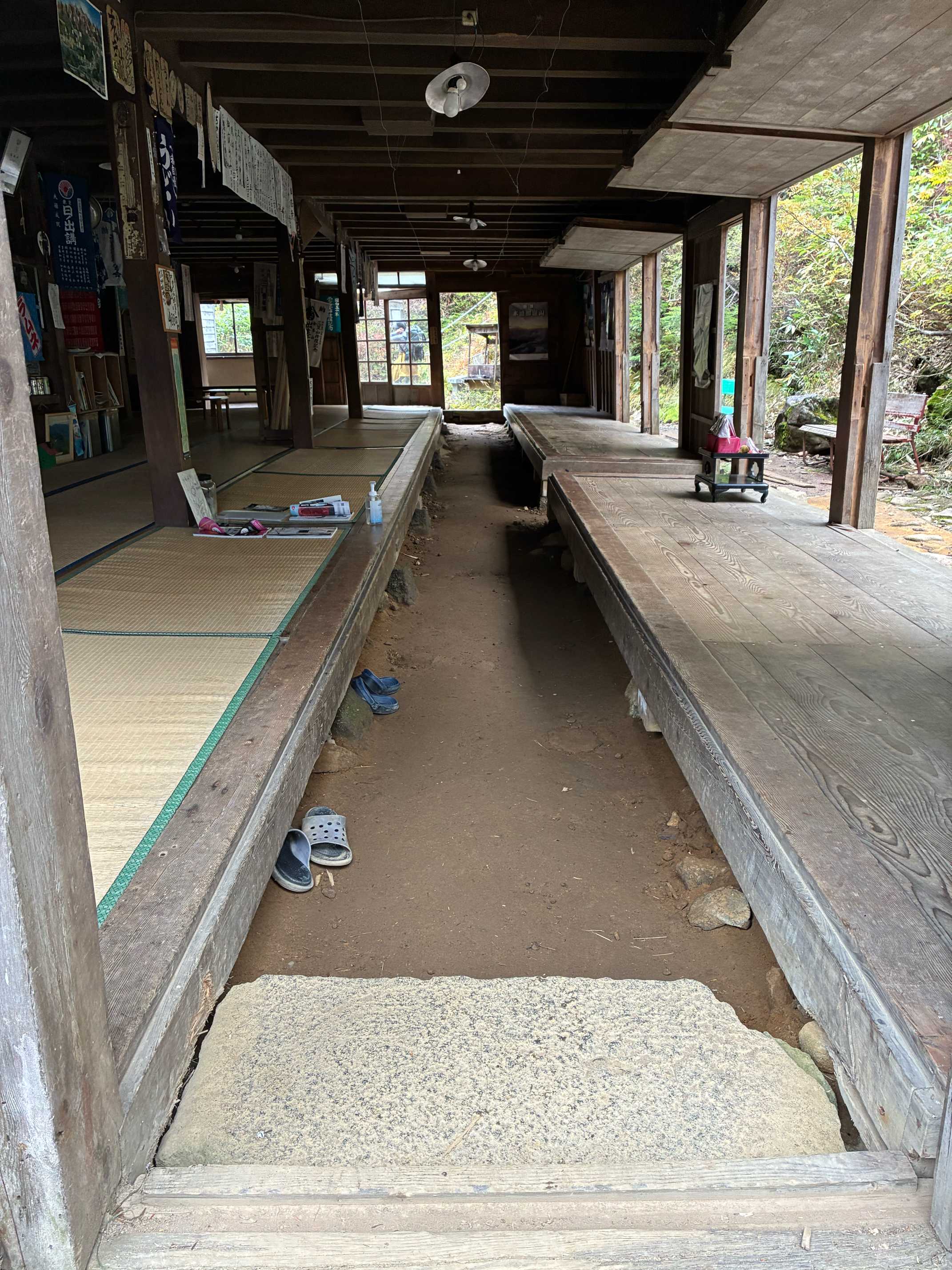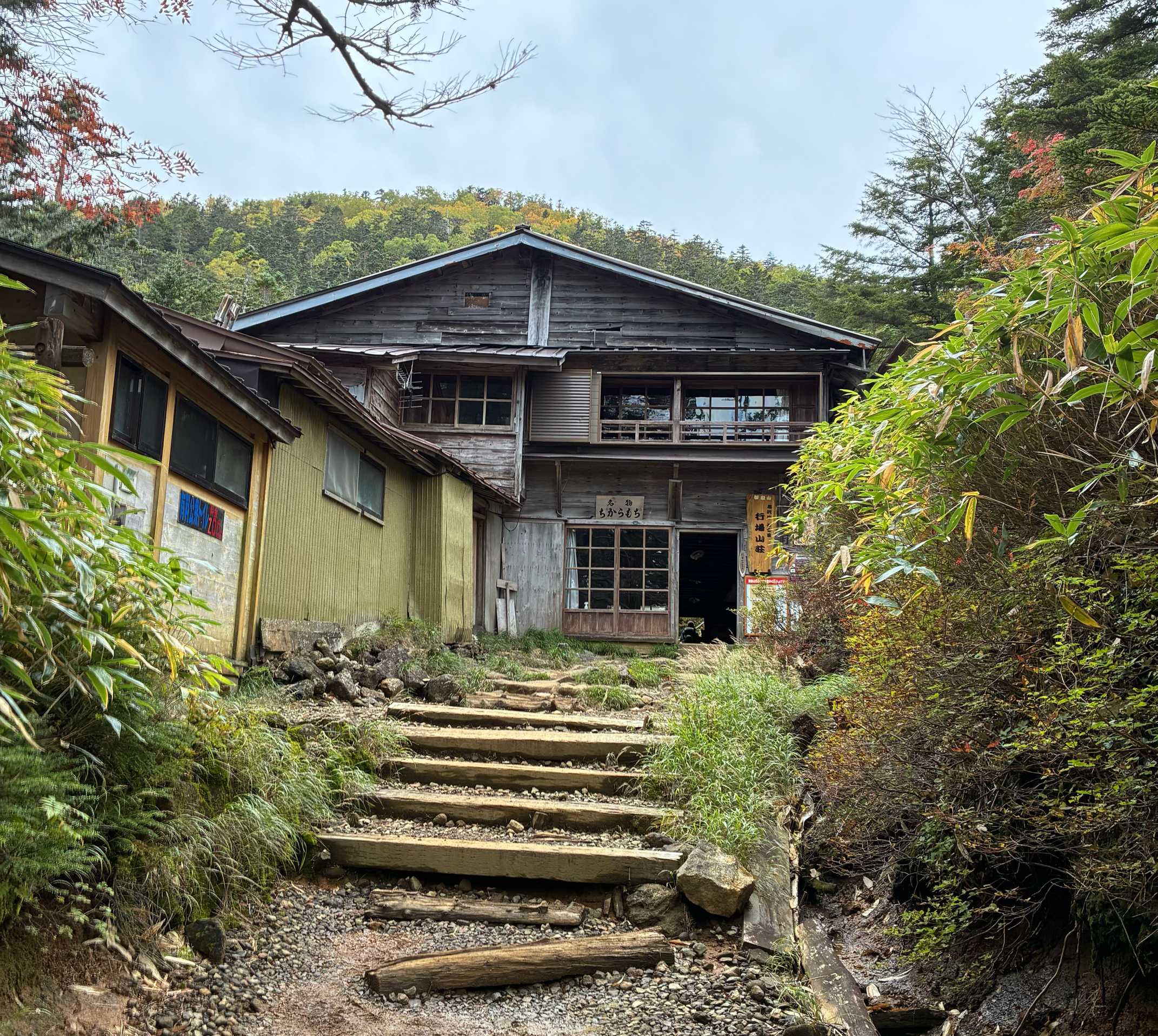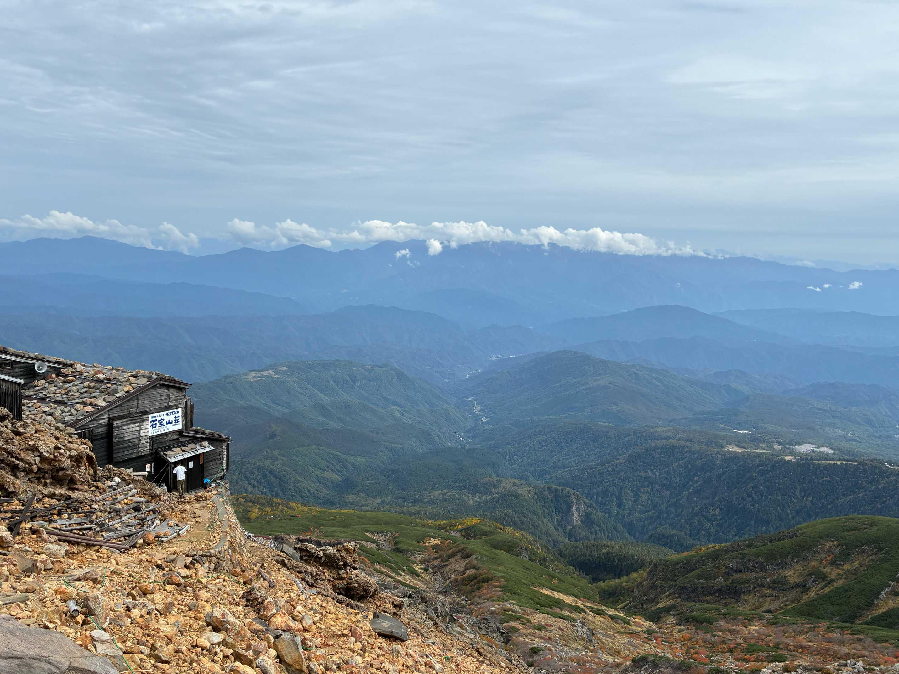 山荘が↙️に見え、いよいよ稜線に出ます。