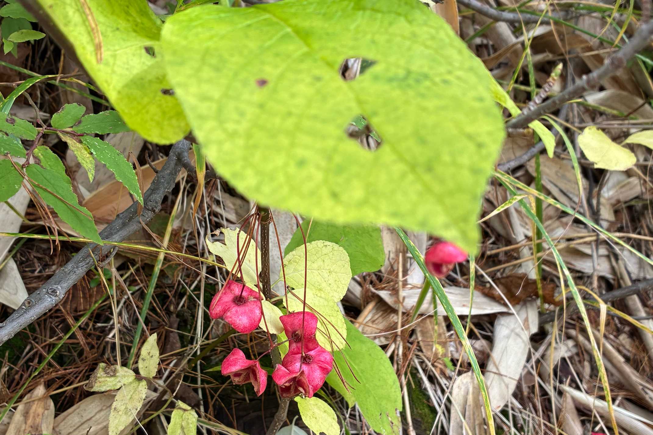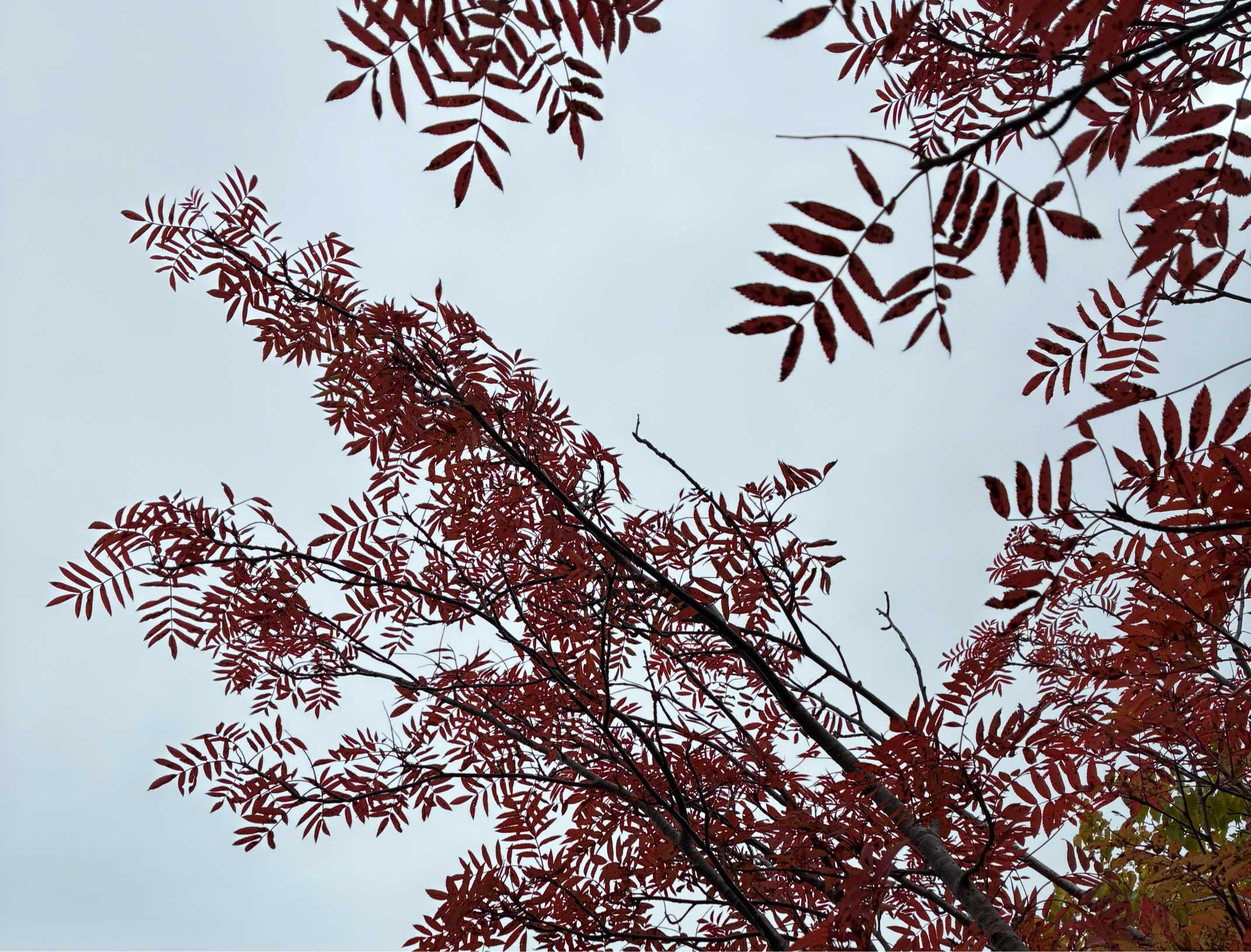 空を仰げばナナカマドの銅色の葉っぱだけ。