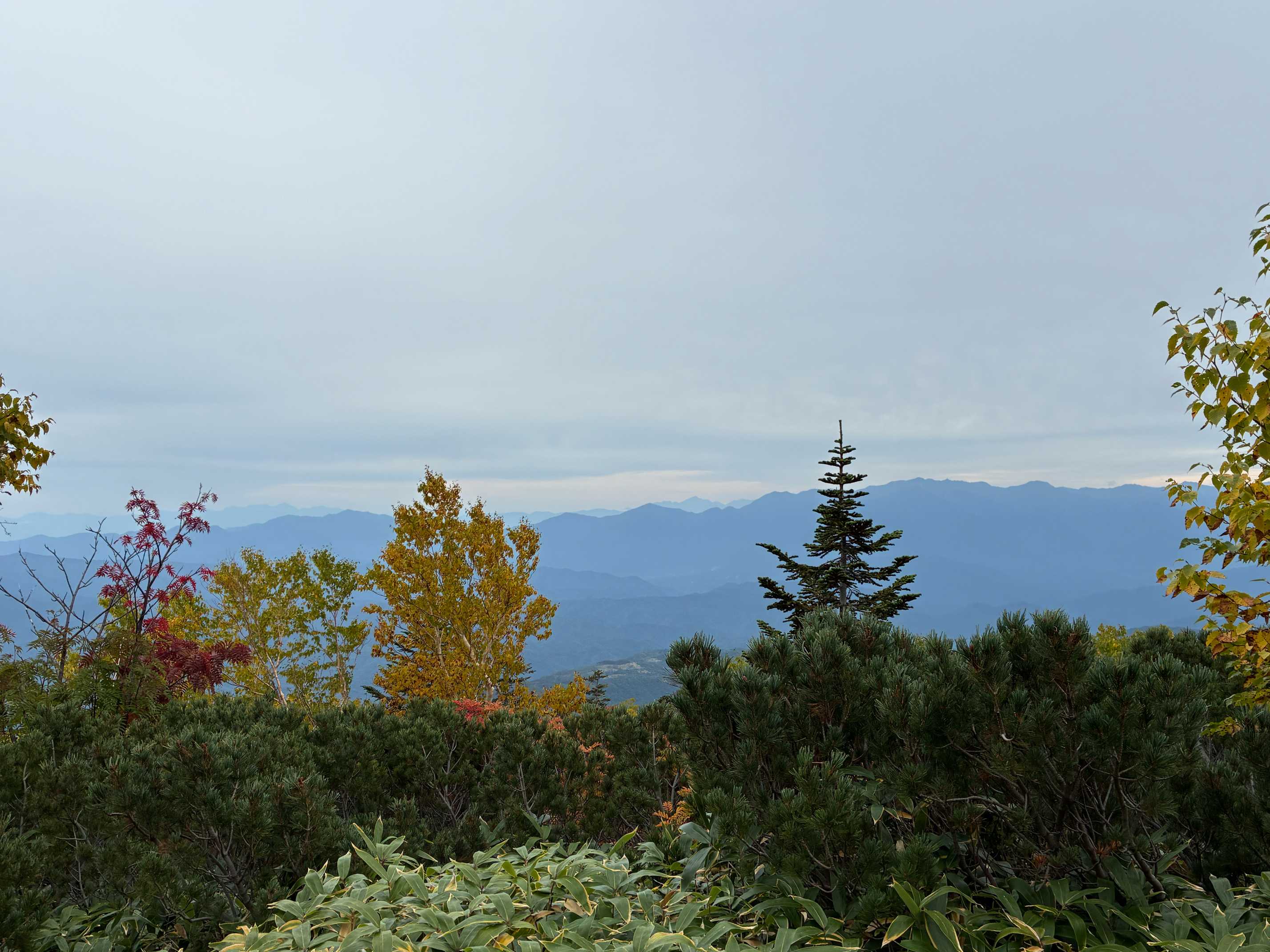 登ってきた道を振り返れば遠くに山の稜線が見えるようになった。