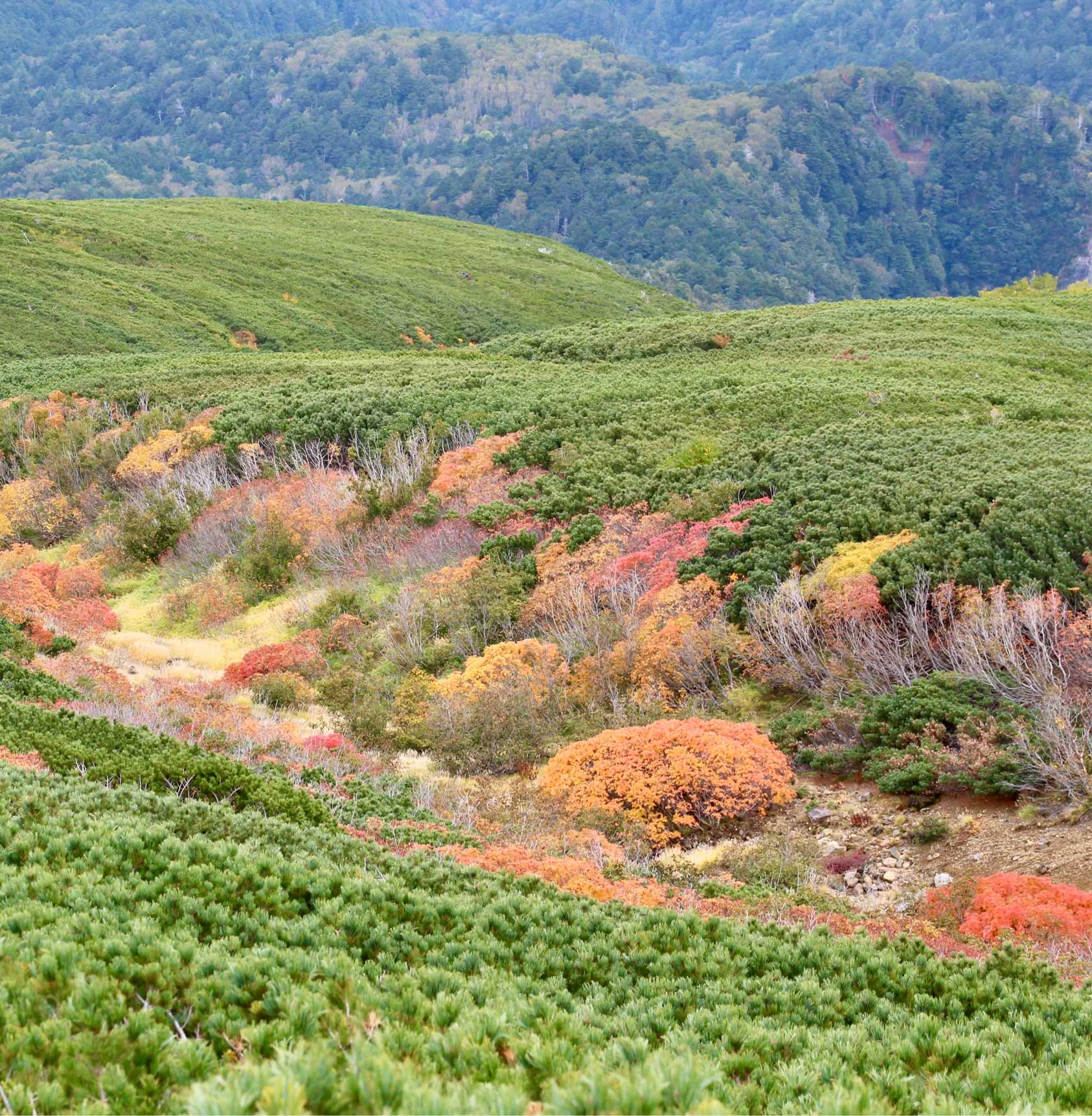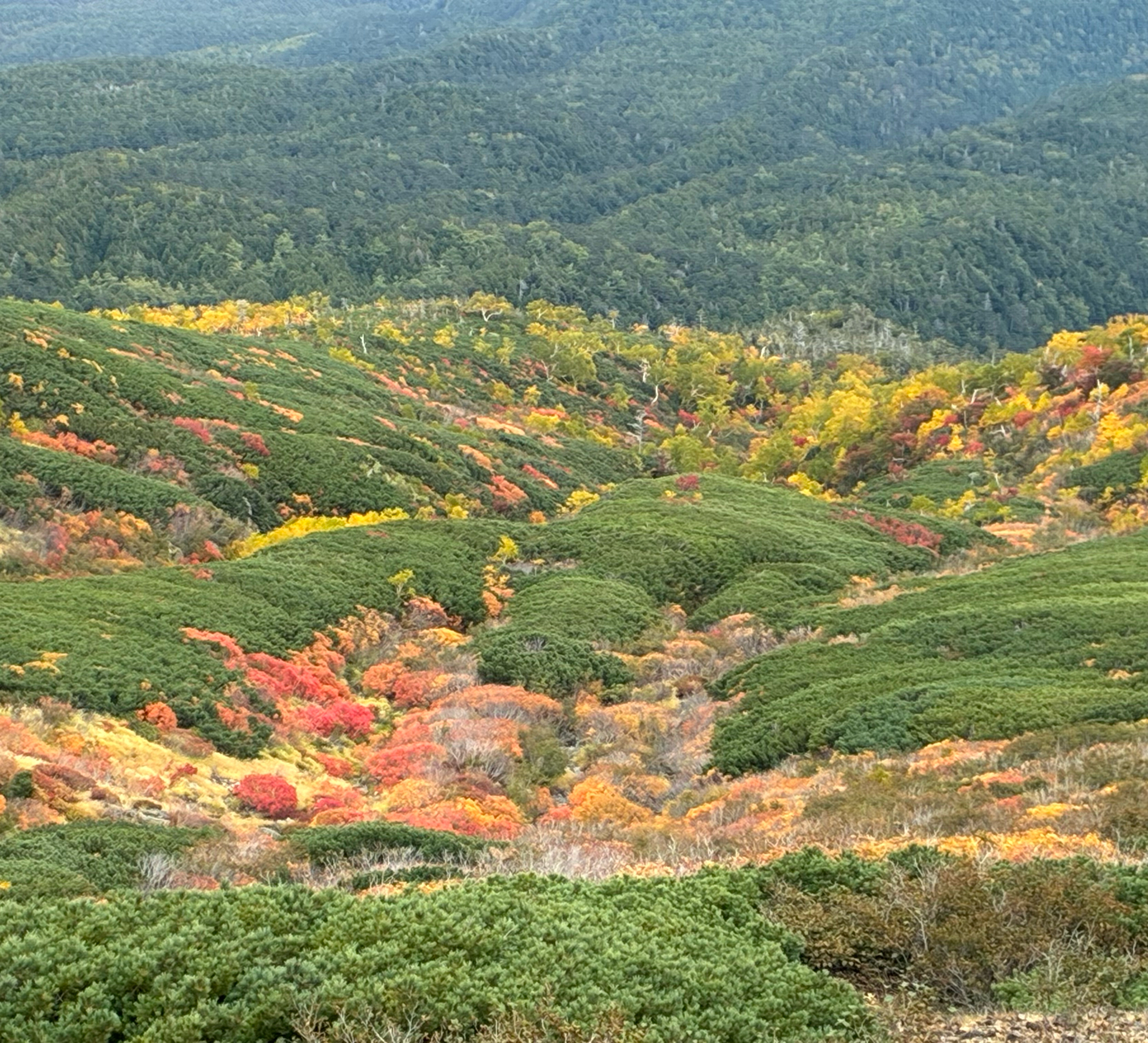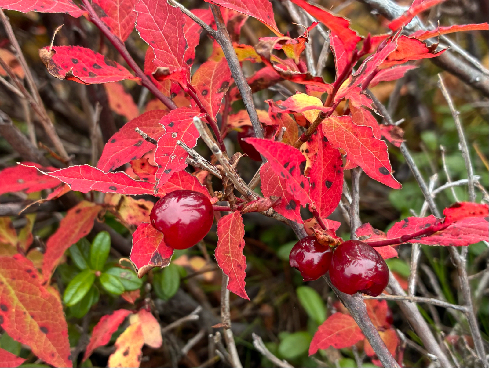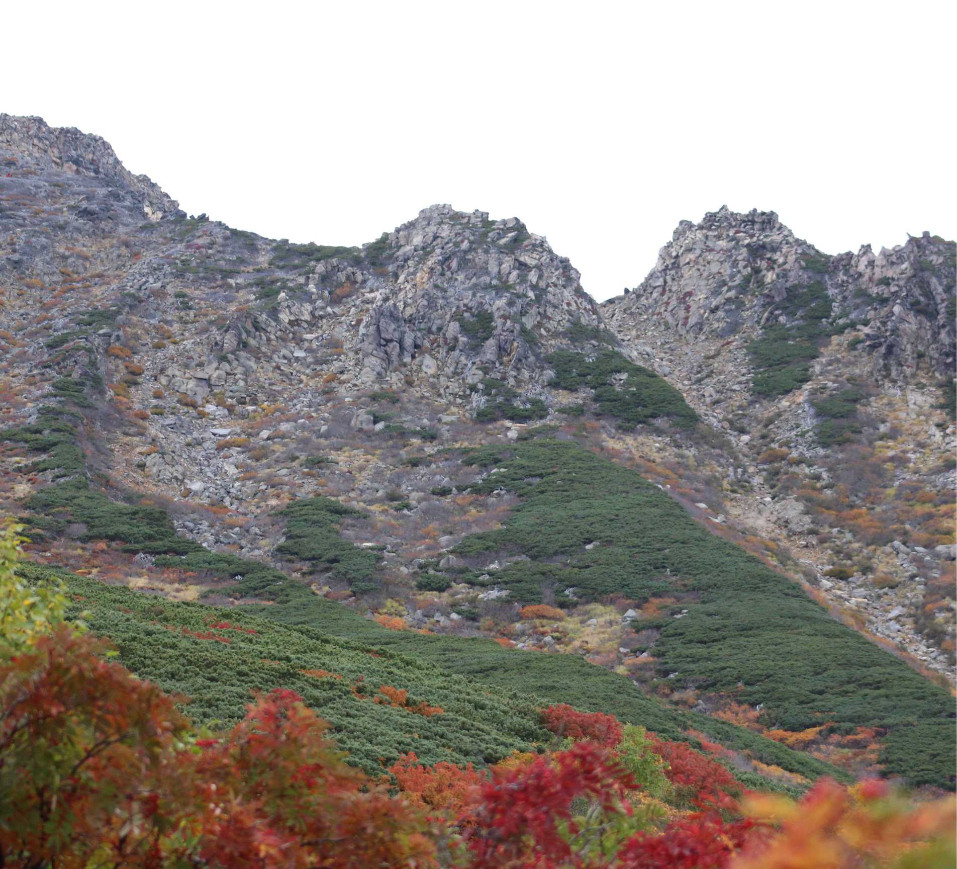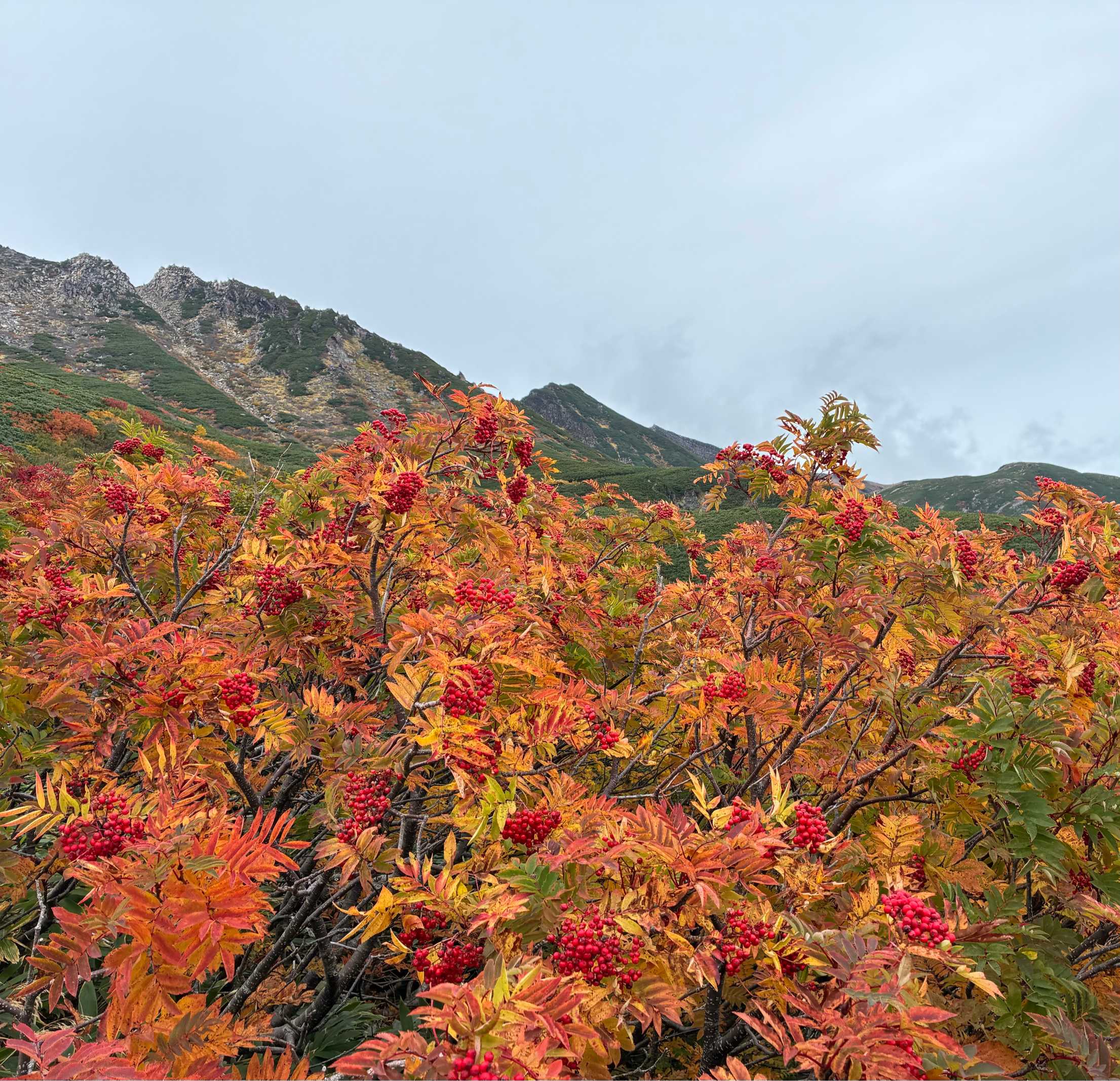 目にも鮮やかウラジロナナカマドとお山の景色。